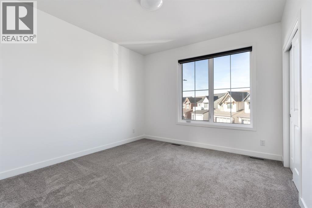 Open House February 22nd from 1pm-3pm. Welcome to Wildflower in Airdrie — a neighborhood where open skies, quiet streets, and thoughtfully designed homes create the perfect backdrop for everyday living.Set on a large pie-shaped lot, this modern farmhouse offers the space and flexibility to grow with you. As you step inside, a generous foyer greets you — bright, open, and practical, with room for busy mornings and welcoming guests with ease. Just off the entrance, a versatile flex room is ready to become your home office, reading lounge, or dedicated workspace for the way you live today.The main floor also features a full bedroom and bathroom, offering exceptional flexibility. Whether it’s for visiting parents, a live-in nanny, older children seeking privacy, or a comfortable guest suite, this space adapts beautifully to a variety of living situations.At the heart of the home, the kitchen is designed to bring people together. A large island anchors the space — perfect for casual breakfasts, entertaining friends, or gathering at the end of the day. The gas stove and statement range hood make cooking both functional and inspiring, while the dining area is surrounded by natural light, creating a warm and inviting setting for everyday meals or special occasions. The living room flows seamlessly alongside, offering a comfortable space to unwind, with access to the patio overlooking the expansive backyard — ideal for summer evenings and outdoor entertaining.Upstairs, the primary retreat provides a peaceful escape, complete with a four-piece ensuite and a spacious walk-in closet. Three additional well-sized bedrooms ensure everyone has their own space, complemented by another full bathroom and a conveniently located upper-level laundry room that simplifies daily routines.The unfinished walkout basement presents incredible future potential. Whether you envision a secondary suite (subject to approval), a home gym, media room, additional bedrooms, or a play area, thi s level offers the opportunity to customize the home to your evolving needs.This is more than just square footage — it’s a home designed for connection, comfort, and the next chapter of your story in Wildflower, named Best New Community in Canada by the Canadian Home Builders’ Association. (id:6769)