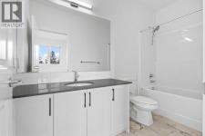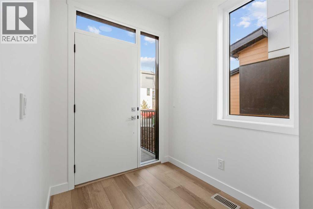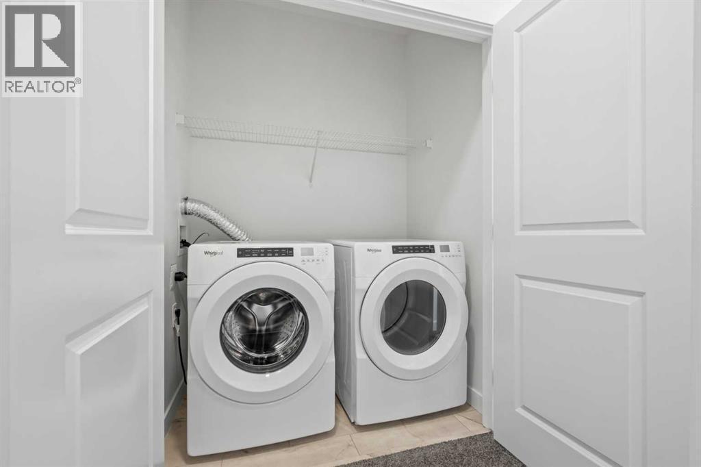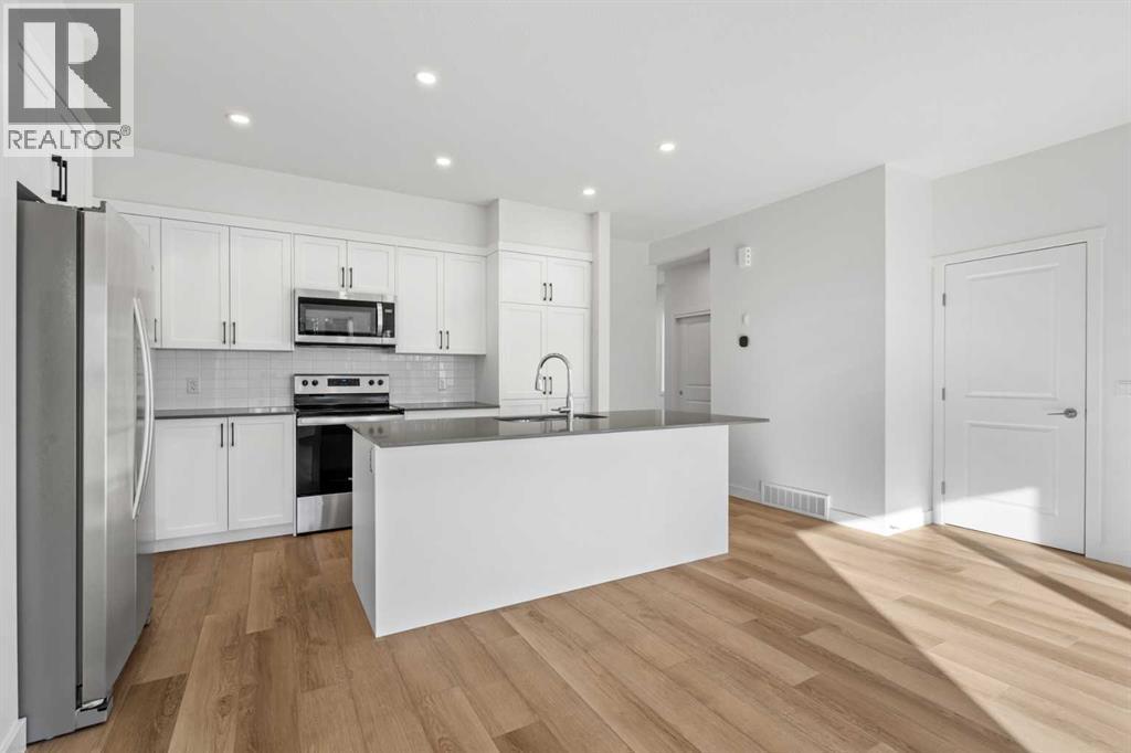 NEW BUILD TOWNHOME | NO CONDO FEES | 3 BED / 2.5 BATH / 1,519 SQ FT | DOUBLE ATTACHED GARAGE + DRIVEWAY | READY FOR POSSESSION – Welcome to the Thistle model by Minto Communities, an award-winning Canadian builder with over 70 years of experience, located in East Hills Crossing, one of southeast Calgary’s fastest-growing and most convenient communities. These thoughtfully designed townhomes feature modern finishes, functional layouts, and long-term value in a location that truly stands out. This lower-level unit offers a smart and efficient floor plan designed for everyday comfort.The main floor features a well-appointed kitchen complete with a central island, stainless steel appliances, and ample cabinetry and storage. The dining area is conveniently located beside the kitchen, flowing seamlessly into the spacious living room at the back of the home. From here, step out to your south-facing backyard and deck, ideal for relaxing or entertaining. A generous foyer provides access to the front entry and the double attached garage, while a 2-piece bathroom completes this level.Upstairs, the large primary bedroom easily accommodates a king-size bed and includes a bright 4-piece ensuite and a spacious walk-in closet. Two additional well-sized bedrooms, a full 4-piece bathroom, and convenient upper-level laundry round out the second floor.The basement offers ample storage and excellent potential for future development or customization to suit your needs.Ideally situated directly across from East Hills Crossing Shopping Centre and Costco, this location delivers unmatched convenience with shopping, dining, and everyday services just steps away. Public transit is nearby, offering a quick and easy commute to downtown Calgary. East Hills is a vibrant, well-connected southeast community known for its thoughtful planning, green spaces, pathways, and easy access to major roadways and 17 Avenue SE. Combining modern design, a functional layout, and an unbeatable location, this i s an excellent opportunity to secure a brand-new, move-in-ready home in East Hills. Don’t miss your chance to be part of this exciting community! Book your showing today! (id:6769)