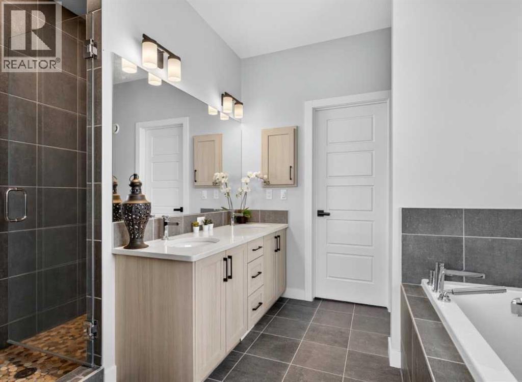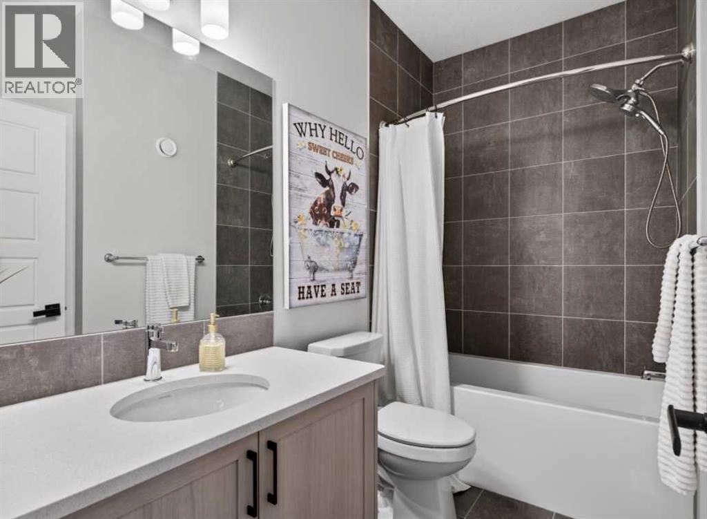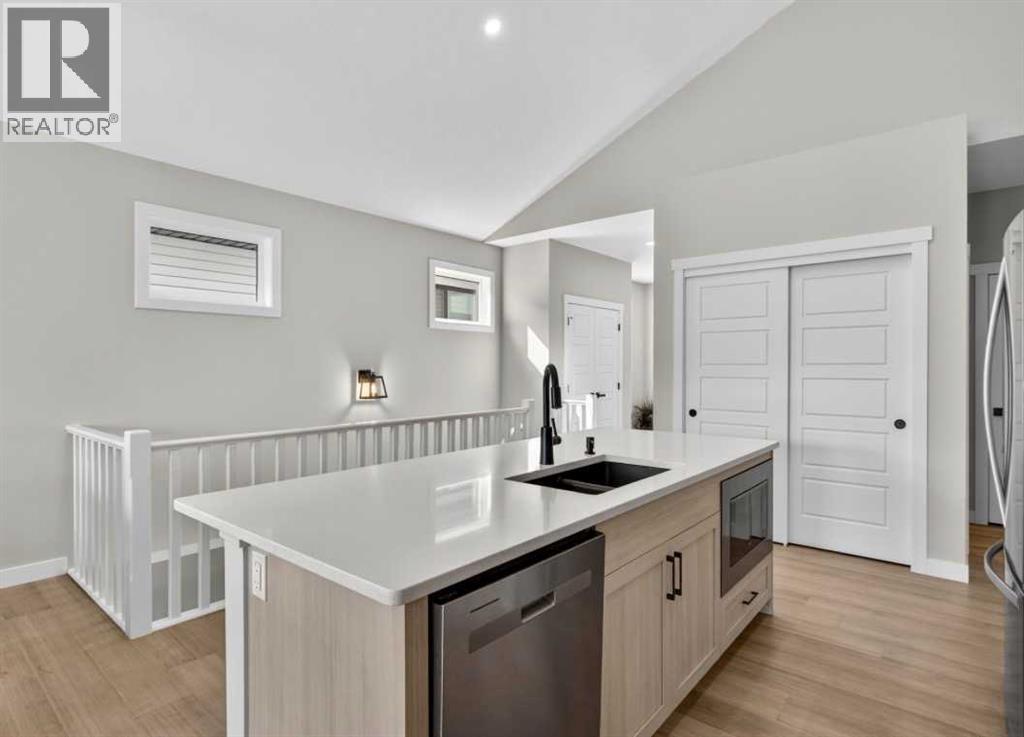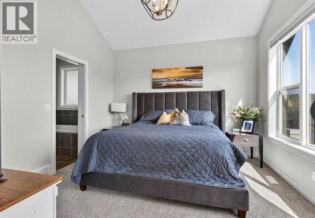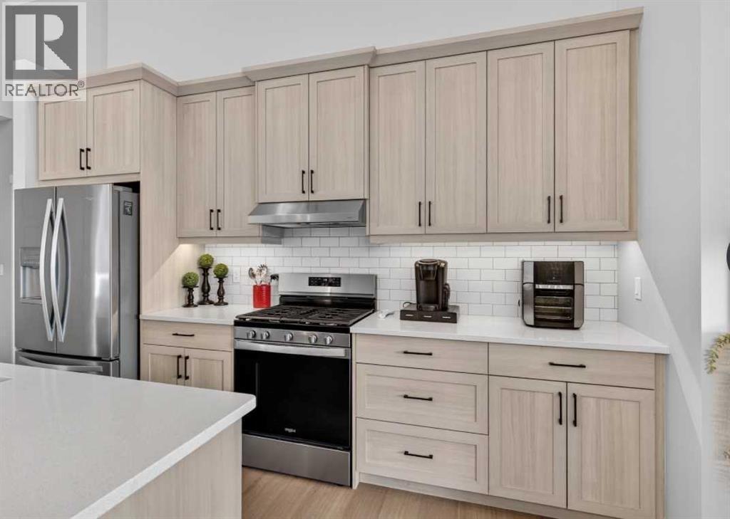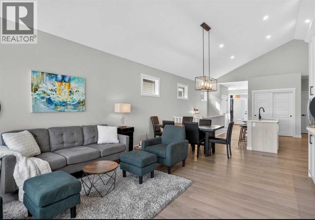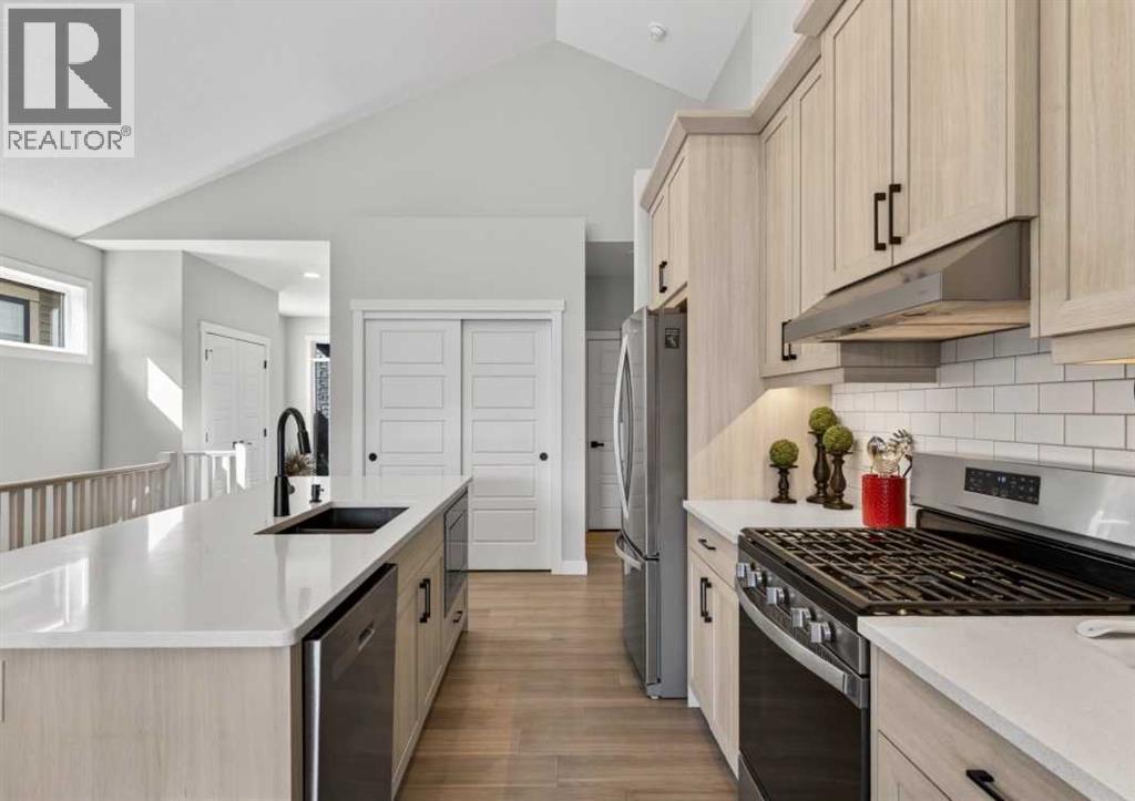 OPEN HOUSE Saturday Feb 14th 1-4pm ~Your NEW HOME awaits.... Stunning 2024 Trico Homes Wynwood 28 Vaulted Ceiling Bungalow with finished Walkout Basement Development by Basement Builders in Scenic Precedence area. This beautifully designed bungalow combines comfort, style, and breathtaking views in one exceptional package. As you step through the front door, you are WELCOMED into the heart of the HOME greeted by soaring VAULTED CEILINGS and an open, light-filled floor plan. The kitchen is a delight to cook in with a large island, gas range, and tall cabinetry with quartz countertops, and pantry. Continuing on the main level is the dining area, and living room with electric fireplace and flatscreen TV making this the perfect space for both everyday living and entertaining. Finishing off this level is the Vaulted Primary Bedroom with 5 piece ensuite with SPECTACULAR walk in shower, walk in closet, second bedroom/office, main bathroom, and laundry room. Another added bonus off the living room is the 10 by 14 deck with gas BBQ hook-up which overlooks the landscaped backyard and North East views of the Cochrane Hills, PLUS a double attached garage with high ceilings.....add more storage. Head downstairs to the beautifully fully finished walkout basement offering even more living space that has been thoughtfully designed for relaxation, entertainment or a man cave. A massive family room centres around a striking floor-to-ceiling stone gas fireplace with mantle, and 75 inch big screen TV with SURROUND SOUND. There are so many added BONUSES including a large BAR area making this level perfect for hosting gatherings. Finishing off the basement you will find two additional bedrooms and 4 piece bathroom plus utility room. The walkout door leads to a covered patio with beautifully landscaped yard, extending the living space outdoors, plus electric hook up for a future hot tub area. This HOME BLENDS a thoughtful layout with high-end finishes and stunning surroundings, making thi s bungalow the best of both worlds! A retreat like setting with easy access to Cochrane’s amenities, schools, and scenic trails. Whether you are entertaining friends or enjoying quiet evenings on the deck, this home truly has it all. DO NOT WAIT... make this HOME yours TODAY! (id:6769)