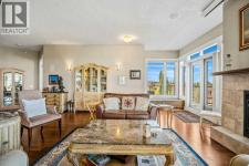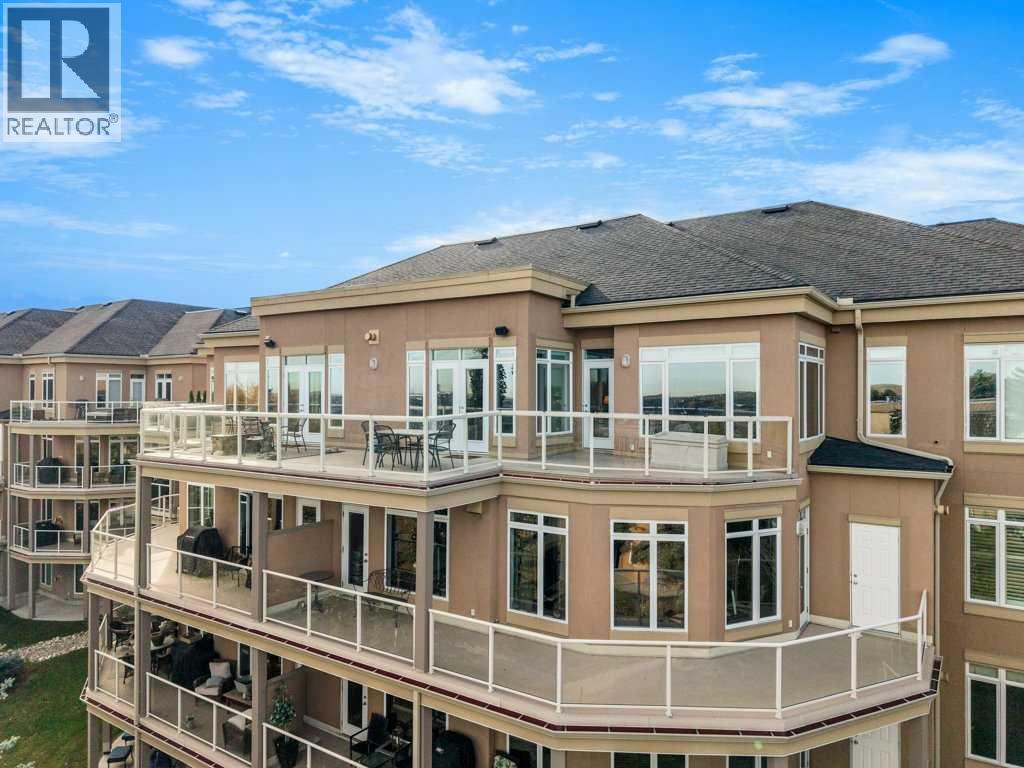 The top of the building is a small club. And membership is limited. Perched above the walking paths, stretching over the golf course and into the city skyline beyond, this 2,084 sqft penthouse isn’t just space — it’s presence. The sheer size checks the boxes and the 3 bedroom layout seals the deal. Transition from a life of cutting grass + shovelling snow to a lifestyle of sitting back + enjoying the ease of condo living. Over $100,000 has been invested with intention and refinement. Every upgrade curated - every finish deliberate. Step foot into a gourmet kitchen dressed in quartz, anchored by a gas range, stainless steel appliances, wine fridge, full pantry and customized pull-out drawers throughout. The heart of the home boasts seamless sight lines across the open-concept layout will be the desired spot for many gatherings in the years to come. The connected living + dining spaces invite celebration — whether it’s dinner for twelve or a quiet glass of wine by the gas fireplace. This is where new memories with those closest to you commence. From 10-foot ceilings to immersive built-in audio and your own projection theatre, every detail was designed for effortless living — complete with a full Hunter Douglas blinds package and phantom screens for year-round comfort. Retreat to your nearly 300 sqft primary suite, wrapped in a wall of windows. The ensuite elevates daily ritual with dual sinks and a steam shower with bench, while a fully built-out walk-in closet keeps life organized. With three rooms on hand, it provides flexibility for guests and potential for a den, lounge or library. Let's move on to the statement piece - your 600 sqft outdoor terrace. Morning coffee above the fairways - sunset cocktails over the city lights. This exterior haven provides you the space to entertain + exhale. The purchase will come with two underground, side by side parking stalls and a separate storage locker for seasonal goods. You will also find a car wash bay + bike storage onsite . The community amenities include a large fitness facility along with recreation room which hosts several resident meet ups + gatherings throughout the year. A location close to all your daily requirements, mere blocks to the c-train, walkable to the golf course and minutes into the downtown office core. This Penthouse more than an address - it's a statement piece, a vantage point and a lifestyle reserved for those who prefer privacy. Your opportunity to live where others look up. (id:6769)