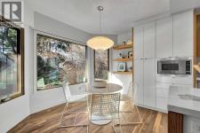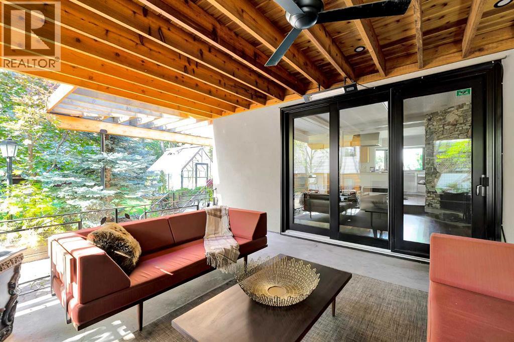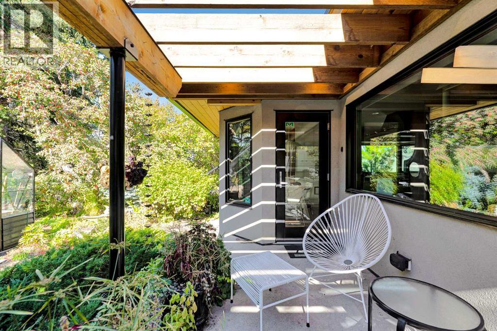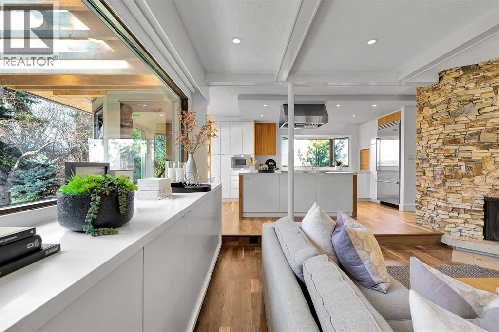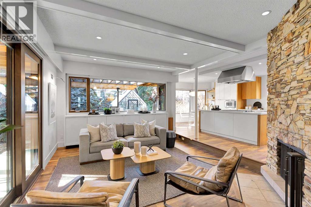Some homes are renovated. Others are cared for, respected, and thoughtfully evolved. In the heart of Upper Scarboro, this updated mid-century bungalow offers approximately 2,650 sq ft of developed living space across both levels — where original architectural character meets modern-day comfort. Lovingly maintained by owners who appreciated its design, the home has been enhanced over the years without losing its soul. At the centre of the main living space, a natural stone wood-burning fireplace rises like a sculptural column — an authentic mid-century feature that brings warmth, texture, and quiet drama to the room. Light pours in through wide windows, reflecting off warm, freshly refinished walnut hardwood floors and clean architectural lines. The kitchen and bathrooms have been tastefully updated, complementing the home's original character rather than competing with it. The main level includes a peaceful primary suite with a spa-style bathroom with a deep soaker tub and spacious shower. A bright front den offers flexible space for work-from-home or a guest room, and a convenient 2-piece bathroom provides access from the den or hallway for guests. A sunlit breakfast nook opens to a comfortable family room, while seasonal outdoor living is extended with a covered outdoor area — creating a natural extension of the interior and offering an electric fireplace to take off the chill. Beyond, the private backyard offers mature trees, perennials, shrubs and an inviting greenhouse — a lovely space for gardening and quiet mornings with a cup of coffee. Downstairs, the finished basement provides additional living space with potential for guests, teens, or a workout area, along with a 3-piece bathroom and storage. The under-house oversized double garage is heated and has 30 amp service for convenience. Situated just minutes from downtown and offering a large west-exposed yard for evening gatherings, this is a rare opportunity to own a thoughtfully updated mid-century ho me in one of Calgary’s most sought-after inner city neighbourhoods. (id:6769)