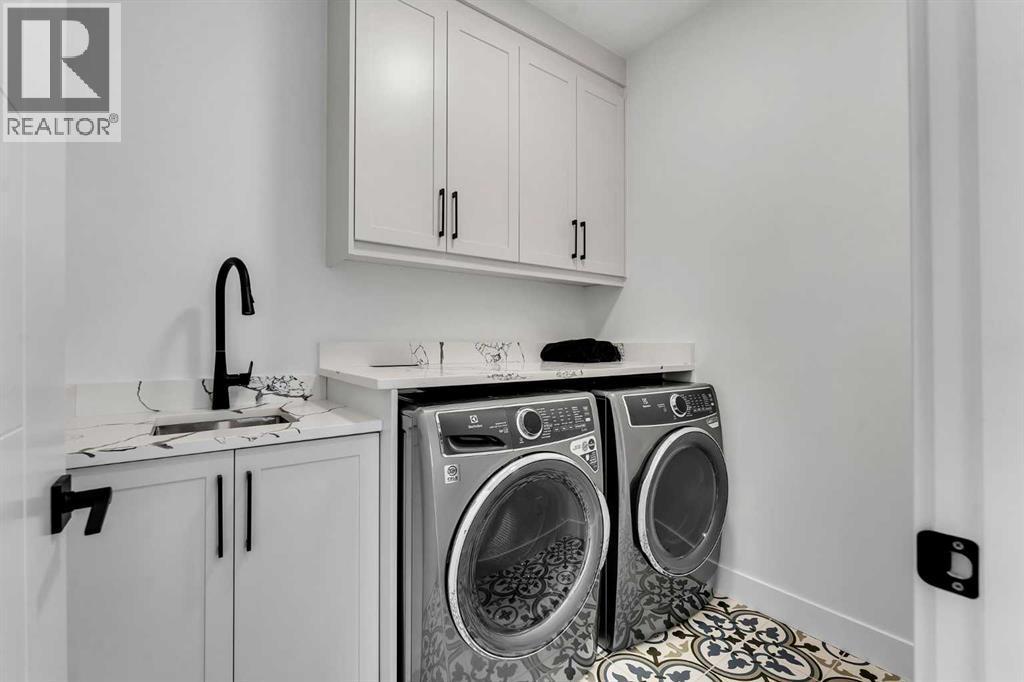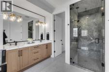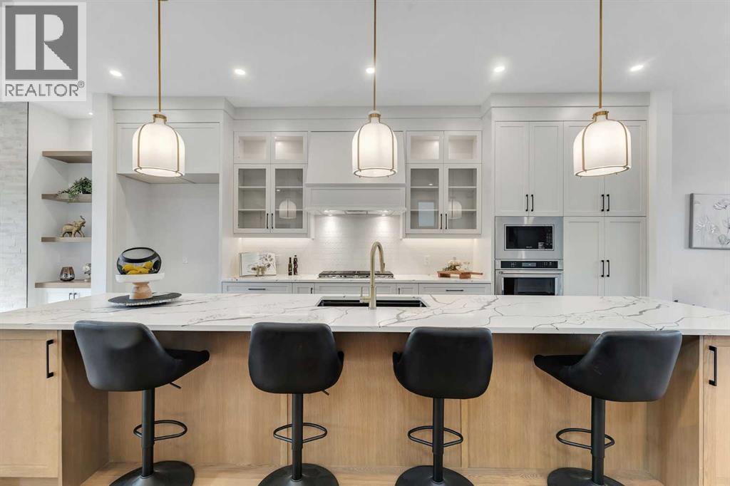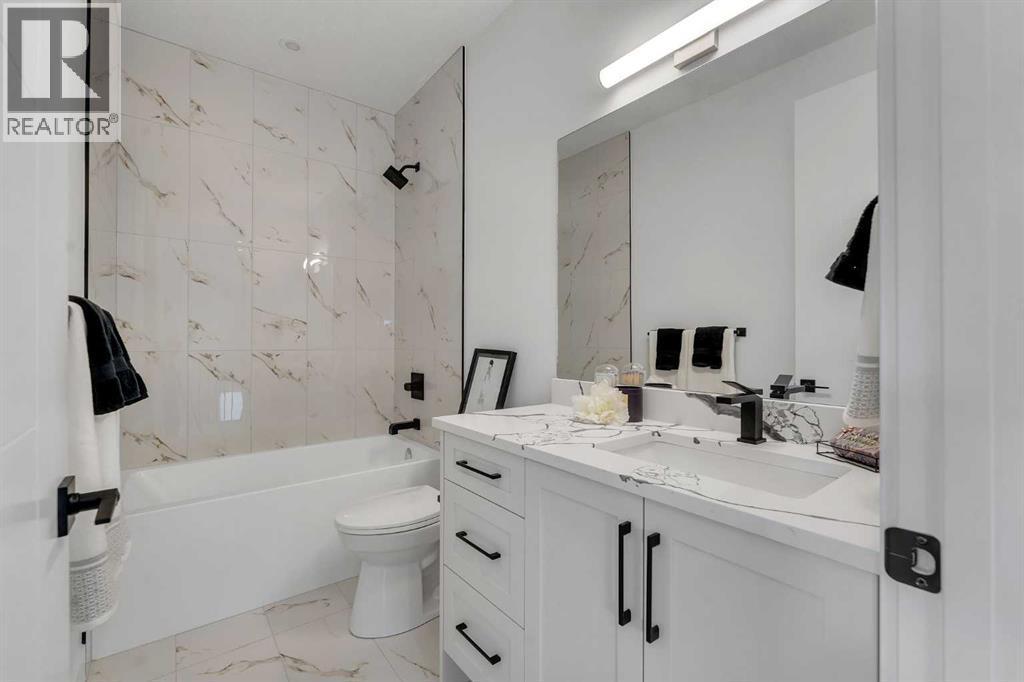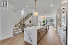 Welcome to this stunning brand-new home that offers refined modern living in a highly sought-after location. Featuring 3 spacious bedrooms and 2 full bathrooms upstairs with convenient upper-floor laundry, the luxurious primary suite impresses with vaulted ceilings and a spa-inspired ensuite complete with a soaker tub, separate glass shower, and heated floors for year-round comfort. The main level showcases soaring 10-foot ceilings and a bright open-concept design, centered around a beautifully appointed chef’s kitchen with built-in appliances, sleek quartz countertops, and a dramatic quartz waterfall island — perfect for entertaining. Elegant hardwood flooring, designer tile, plush carpeting, and a sophisticated oak railing along the staircase add warmth and architectural detail throughout, while large patio doors flood the space with natural light. The fully finished basement provides exceptional additional living space with a bedroom, full bathroom, wet bar, and spacious recreation room — ideal for guests or extended family. Located just minutes from the University, Foothills Hospital, Alberta Children’s Hospital, Market Mall, downtown, Bow River pathways, and all essential amenities, this home combines luxury, convenience, and lifestyle. Complete with a double detached garage and situated in a desirable neighborhood, this is an exceptional opportunity — book your private showing today. Both sides are available (id:6769)