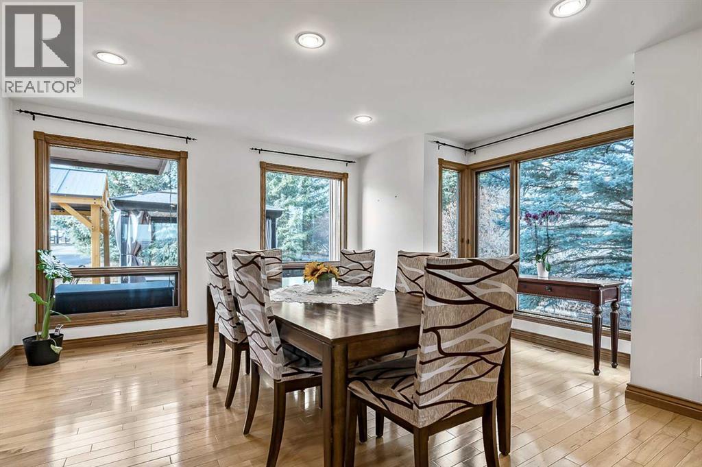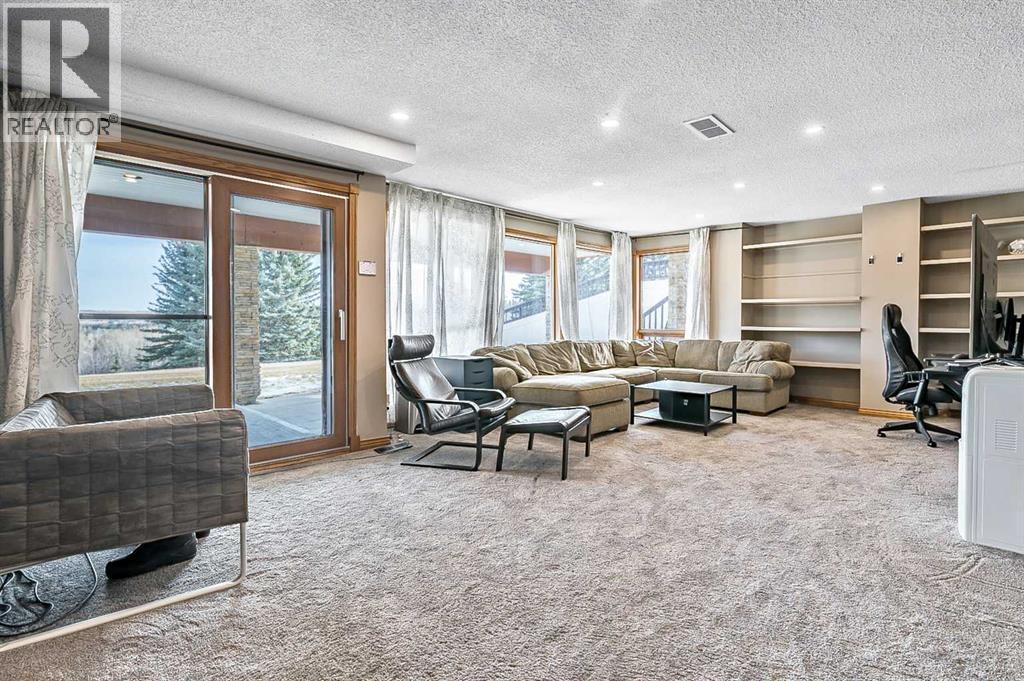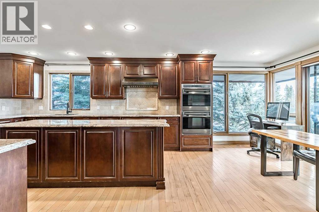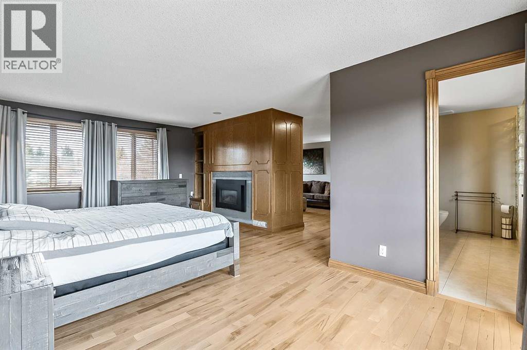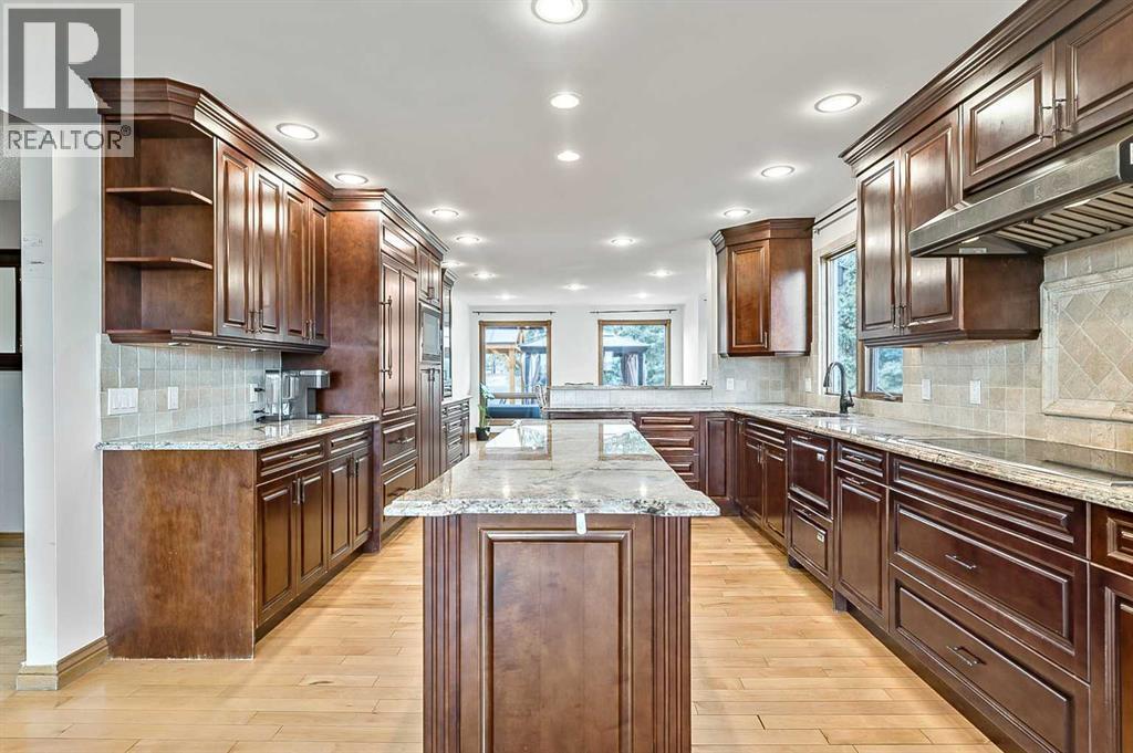 VIEWS VIEWS VIEWS! Welcome to this exceptional seven-bedroom, three-and-a-half-bathroom estate home in the prestigious Elbow River Estates community. Offering over 3,700 square feet of thoughtfully designed living space, this impressive two-storey residence is perfectly positioned on a premium lot capturing fantastic mountain views from the front and sweeping, unobstructed panoramas over the Glencoe Golf Course from the rear. A grand two-storey foyer with a graceful, curved staircase sets an elegant tone upon arrival. The main level is designed to highlight the scenery, featuring a warm and inviting living room with a wood-burning fireplace and large windows that frame the picturesque surroundings. The formal dining room, highlighted by a charming bump-out, provides an ideal setting for hosting. The beautifully updated kitchen is appointed with granite countertops, oak cabinetry, stainless steel appliances, and a built-in desk, all while enjoying serene backyard views. The adjoining family room, centered around a cozy gas fireplace, opens through sliding doors to a spacious deck—an outstanding vantage point to take in the spectacular golf course vistas and unforgettable sunsets. Upstairs, the primary suite offers a luxurious private retreat enhanced by beautiful views and a two-sided gas fireplace that separates the sleeping area from a tranquil sitting space. Four additional generously sized bedrooms and a full bathroom complete the upper level, offering comfort and flexibility for family or guests. The fully developed walkout lower level continues to impress with stunning, uninterrupted views of the golf course, along with an additional bedroom, recreation room, den, wine room, and abundant storage and utility areas. Step outside to enjoy the peaceful setting and expansive open landscape beyond. A triple attached garage and a well-designed mudroom with laundry and built-in storage add everyday convenience. Residents of Elbow River Estates enjoy access to exception al community amenities including a playground, tennis and basketball courts, a seasonal outdoor rink, and a community horse arena—all just minutes from Calgary. Nearby Clearwater Park and Calgary Academy further enhance this highly desirable location. This is a rare opportunity to own a remarkable home defined by space and truly fantastic views in one of the area’s most sought-after communities! (id:6769)