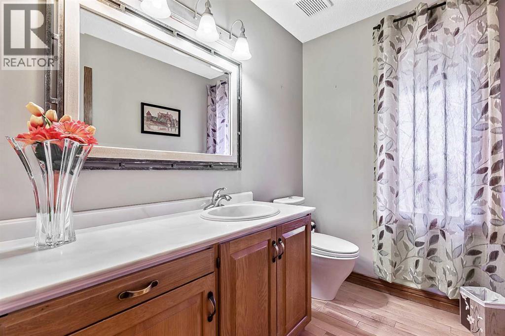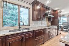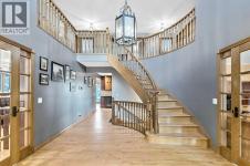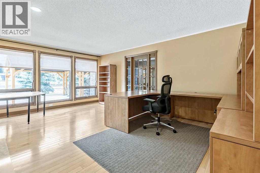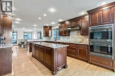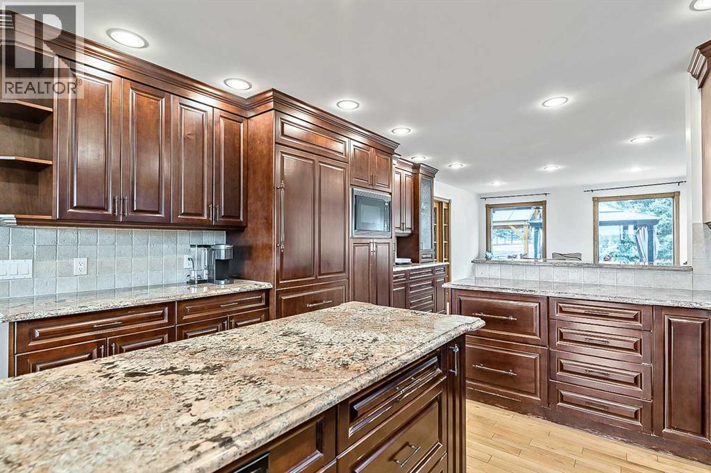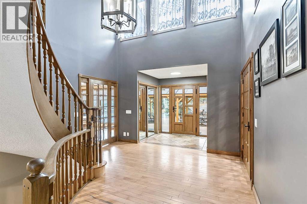 VIEWS VIEWS VIEWS! Welcome to this exceptional seven-bedroom, three-and-a-half-bathroom estate home in the prestigious Elbow River Estates community. Offering over 3,700 square feet of thoughtfully designed living space, this impressive two-storey residence is perfectly positioned on a premium lot capturing fantastic mountain views from the front and sweeping, unobstructed panoramas over the Glencoe Golf Course from the rear. A grand two-storey foyer with a graceful, curved staircase sets an elegant tone upon arrival. The main level is designed to highlight the scenery, featuring a warm and inviting living room with a wood-burning fireplace and large windows that frame the picturesque surroundings. The formal dining room, highlighted by a charming bump-out, provides an ideal setting for hosting. The beautifully updated kitchen is appointed with granite countertops, oak cabinetry, stainless steel appliances, and a built-in desk, all while enjoying serene backyard views. The adjoining family room, centered around a cozy gas fireplace, opens through sliding doors to a spacious deck—an outstanding vantage point to take in the spectacular golf course vistas and unforgettable sunsets. Upstairs, the primary suite offers a luxurious private retreat enhanced by beautiful views and a two-sided gas fireplace that separates the sleeping area from a tranquil sitting space. Four additional generously sized bedrooms and a full bathroom complete the upper level, offering comfort and flexibility for family or guests. The fully developed walkout lower level continues to impress with stunning, uninterrupted views of the golf course, along with an additional bedroom, recreation room, den, wine room, and abundant storage and utility areas. Step outside to enjoy the peaceful setting and expansive open landscape beyond. A triple attached garage and a well-designed mudroom with laundry and built-in storage add everyday convenience. Residents of Elbow River Estates enjoy access to exception al community amenities including a playground, tennis and basketball courts, a seasonal outdoor rink, and a community horse arena—all just minutes from Calgary. Nearby Clearwater Park and Calgary Academy further enhance this highly desirable location. This is a rare opportunity to own a remarkable home defined by space and truly fantastic views in one of the area’s most sought-after communities! (id:6769)