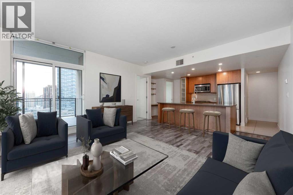 Welcome to the Nova, one of Calgary’s premier high-rise residences in the heart of the Beltline. This exceptional 824 sq ft corner unit offers 2 bedrooms and 2 bathrooms, elevated by luxury finishes, captivating design, and sweeping panoramic views.Expansive floor-to-ceiling windows in every room showcase breathtaking vistas of the Rocky Mountains, Bow River, and downtown skyline, while the desirable west and north exposures fill the space with natural light from midday to sunset. The open-concept layout features high-end fit and finish, premium appliances, central air conditioning, and has been freshly painted for a crisp, move-in-ready feel.The primary suite includes a walk-through closet and a beautifully appointed 4-piece ensuite, while the second bedroom features stunning views. This residence also comes with a heated, underground titled parking stall conveniently located just a few steps away from the elevators, offering unmatched ease and comfort year-round.Residents of Nova enjoy exceptional amenities, including a security/concierge desk, a fully equipped fitness centre, and an elegant event/amenity room.Perfectly located just steps from public transportation, the downtown core, shopping, restaurants, and the vibrant Beltline lifestyle, this luxurious home delivers an exceptional blend of comfort, convenience, and sophistication. (id:6769)