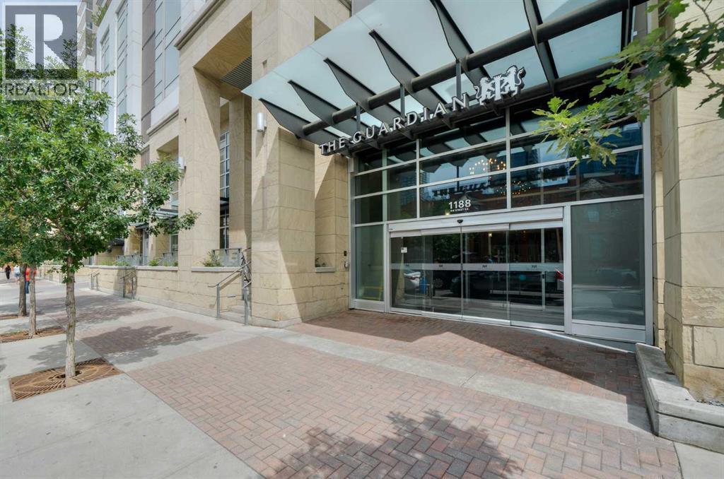 Experience elevated urban living in The Guardian South Tower. Perched on the 19th floor, this stunning single-level condo captures sweeping views of downtown Calgary and the Bow River through expansive FLOOR-TO-CEILING WINDOWS and from your PRIVATE BALCONY.This bright and modern one-bedroom, one-bathroom home is thoughtfully designed with sleek flooring and an abundance of natural light throughout. The contemporary kitchen features integrated cabinetry that seamlessly conceals the refrigerator and dishwasher, an INDUCTION COOKTOP, and a BUILT-IN MICROWAVE. The OPEN-CONCEPT layout flows effortlessly into the living area—ideal for both relaxing evenings and entertaining guests.The spacious bedroom is filled with natural light and showcases incredible views, along with a BUILT-IN CLOSET SYSTEM complete with drawers, eliminating the need for additional furniture. A well-appointed four-piece bathroom is conveniently located just across the hall. In-suite laundry with a stacked washer and dryer adds everyday ease.Residents enjoy 24-hour front door security, secure floor access, a titled underground parking stall ($62.72/month), and a separate assigned storage unit. The Guardian offers exceptional amenities, including a FULLY EQUIPPED FITNESS CENTRE with SHOWERS, a ROOFTOP TERRACE with BBQs, a stylish RESIDENTS’ LOUNGE with kitchen, a GAMES AREA, and flexible spaces for relaxing or working. There’s even a dedicated WORKSHOP for CRAFTS or woodworking projects.Located in the heart of Calgary’s vibrant Beltline, you’re just steps from the Stampede grounds, LRT stations, and an array of downtown shopping, dining, and entertainment. This is an outstanding opportunity to own a sophisticated condo in a secure, amenity-rich building in one of the city’s most dynamic neighbourhoods. (id:6769)