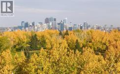 PANORAMIC unobstructed views of the city while overlooking treetops of the Shaganappi Golf Course from this stunning condo. +1462 SQ FT of versatile space. Only 8 units comprise the 8th floor. Unit features 2 large Bedrooms, 2 full Bathrooms, built in desk, chef inspired kitchen, granite counters, full ceiling height cabinetry, a breakfast bar, high-end stainless steel appliances, gas stove top and a new range hood fan. Owners upgraded washer/dryer machine to a more efficient combination unit. Accentuated by large surrounding windows at every step add tons of natural light to provide an awe inspiring view from every direction throughout entire property. Primary has a luxurious 5pc en-suite with a large glass enclosed shower, corner soaker tub and 2 lovely granite vanities. Entertainers delight, huge patio (~13' x 14') with a natural gas hook up for the BBQ. Further features include knockdown ceilings, upgraded lighting, built in speaker system, upgraded underlay and ceramic tile. TWO titled underground heated parking stalls, storage in parkade and comfortable central A/C. Building amenities include a fitness facility, guest suite, party room, recreation area, bike storage, car wash & craft/wood working area in the parkade. Turn key condo is located close to numerous amenities, shopping, parks, schools, easy access to downtown via Bow Trail or a few blocks to the C-train or public golf course! Don't miss this one. Rarely do these sub-penthouses become available. Call to see today! (id:6769)