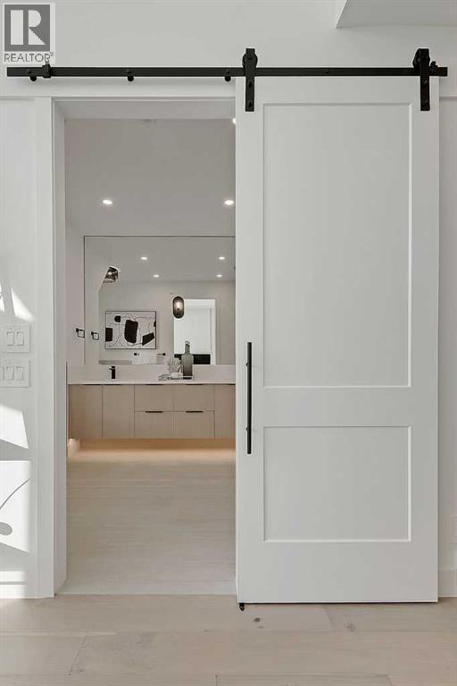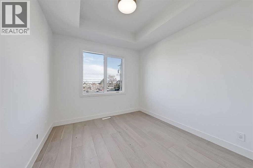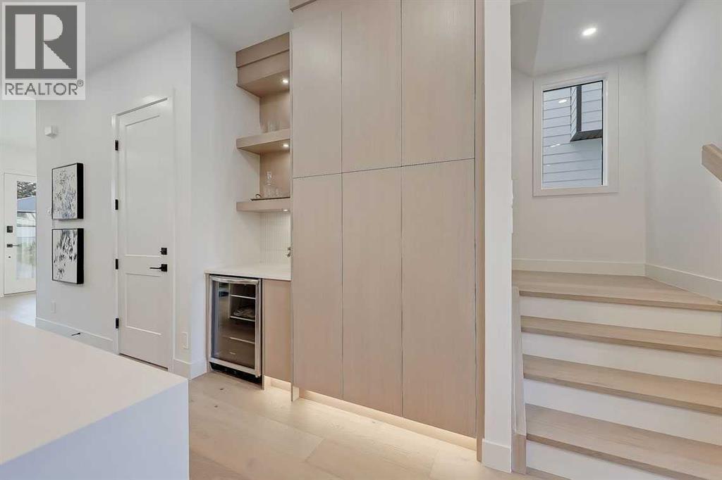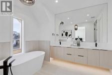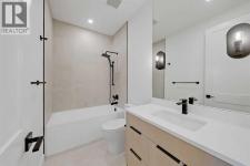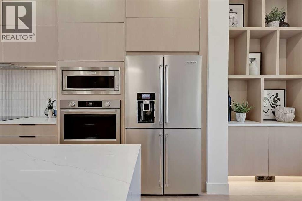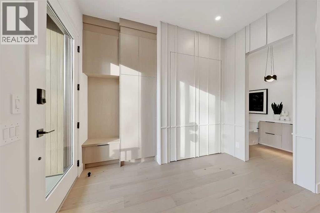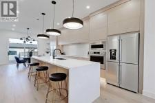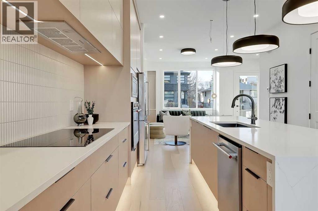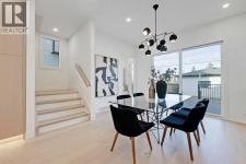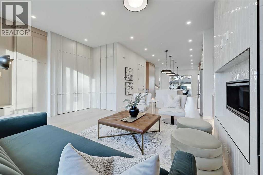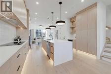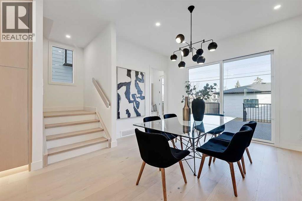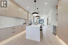 This architecturally striking semi-detached infill in Killarney is a refined expression of modern Scandinavian design, thoughtfully layered with mid-century modern elements. Clean lines, warm wood tones, minimalist detailing, and intentional functionality come together in a home that feels both sophisticated and welcoming. With three fully finished levels and an RARE EXTENDED BASEMENT featuring a legal 2-bedroom suite, this residence offers elevated design, smart versatility, and exceptional income potential in one of Calgary’s most desirable inner-city communities.Step inside to a bright, airy foyer where clean millwork and a built-in bench create an organized and understated welcome. A discreet, hidden door conceals the powder room, maintaining the seamless, minimalist aesthetic that defines the main floor. The open-concept layout is enhanced by 10-foot ceilings, oversized windows, and warm natural finishes that reflect Scandinavian simplicity while mid-century inspired lighting and architectural detailing add depth and character.The living room is anchored by a sleek fireplace and flows effortlessly into the kitchen — a space designed as beautifully as it performs. Quartz countertops, full-height custom cabinetry, a built-in pantry & coffee station, and stainless steel appliances offer both style and functionality. The oversized island invites gathering & connection.The dining area is a standout architectural feature, complete with a built-in decorative buffet showcasing full-length shelving with integrated lighting & elegant fluted glass cabinetry. This thoughtfully designed focal point adds warmth, texture, and curated display space while enhancing the home’s cohesive Scandinavian aesthetic. Expansive sliding doors open from the dining space, seamlessly extending the living area onto the rear deck and backyard — creating effortless indoor-outdoor flow ideal for entertaining and everyday living.At the back of the home, a mudroom with sleek built-in stora ge & bench seating adds everyday convenience without compromising the streamlined design.Upstairs, the primary retreat offers a vaulted ceiling, private WEST facing balcony, and a spa-inspired ensuite with dual vanities, a soaker tub, and glass-enclosed tiled shower with body jets. Two additional bedrooms, a full bath, and upper laundry complete the level.The extended basement is fully developed into a self-contained legal 2-bedroom suite featuring HERRINGBONE floors, a full kitchen with quartz counters, island with seating, separate laundry, a 4-piece bath, and an oversized living & dining area that create a space that feels open, comfortable, and far above typical lower-level living.Walking distance to Shaganappi LRT, local amenities, schools, parks, and the Killarney Aquatic Centre — with quick access to downtown & major routes — this home offers the perfect balance of timeless design and everyday functionality. Experience elevated inner-city living in Killarney — book your private showing today. (id:6769)