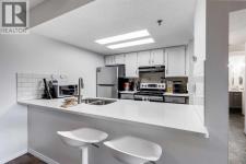 Welcome to this beautiful, light, bright and spacious two-bedroom apartment on the 4th floor of Laureate Place. Located within a walking distance of the University of Calgary, Foothills Hospital, Children's Hospital, and C-Train, this prime location provides unparalleled convenience and ample services. From your private balcony you can enjoy spectacular views of Calgary’s downtown skyline, beautiful sunrises and sunsets. Enter this immaculate unit and you will find fresh paint and newer vinyl flooring throughout. This unit features two full size bedrooms, two 4-piece bathrooms with quartz counter tops, spacious kitchen with upgraded quartz countertop and a big central island, an open concept dining and living room. A generous size laundry room provides a good space for your storage needs, plus one heated underground parking is included. Refrigerator, washer and dryer 2022, paint and lights 2023. This apartment is the perfect choice for students, professionals, investors, and those seeking to be part of Calgary's finest community! (id:6769)