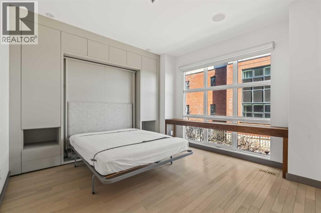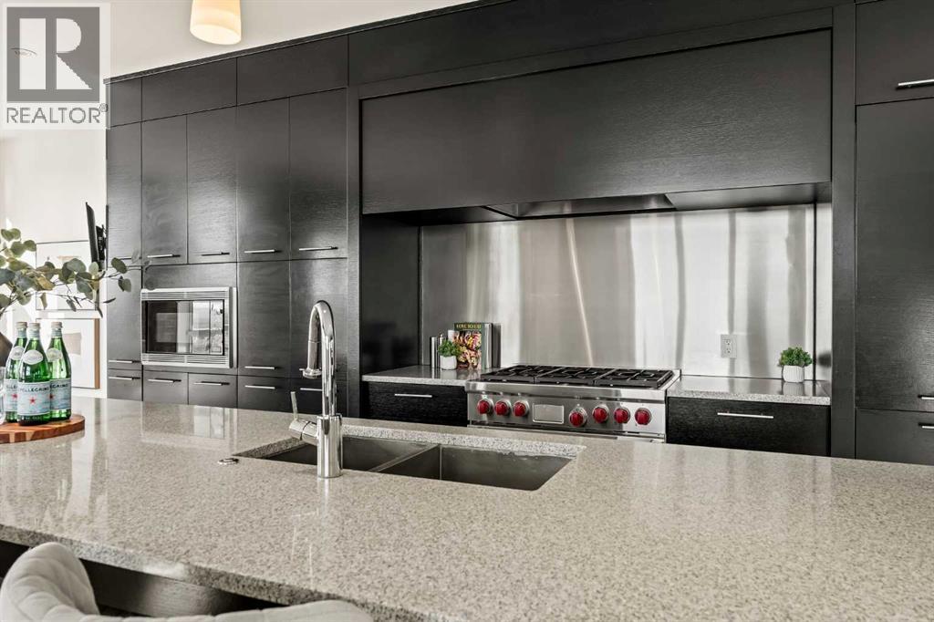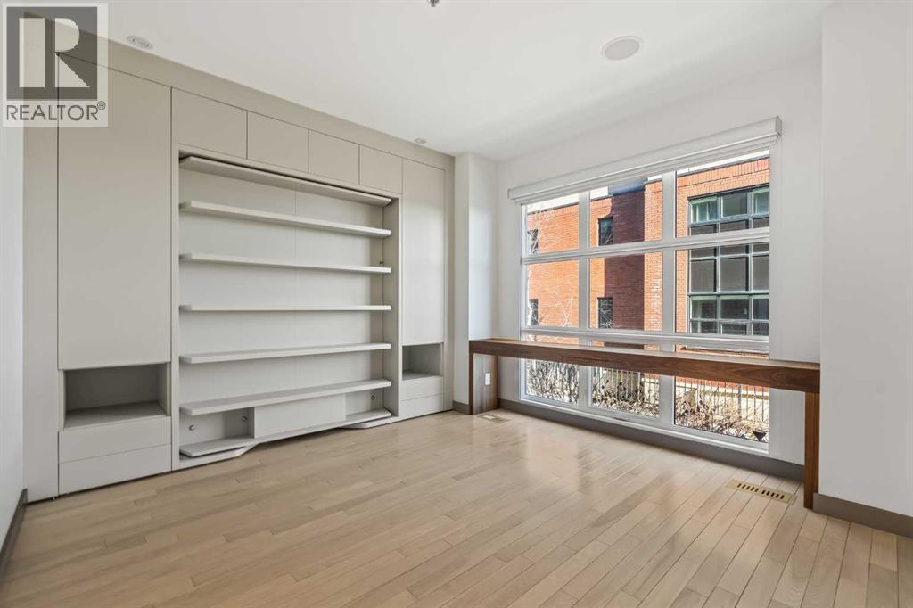 Welcome to luxury living in the heart of Aspen Estates at 101 Aspen Meadows Hill SW - a sophisticated, executive-style end-unit townhouse offering over 3,700 sq ft of beautifully designed living space, a private elevator connecting all levels, and unobstructed southwest mountain views. Perfectly suited for professionals and empty nesters seeking comfort, privacy, and low-maintenance living, this elegant residence blends timeless design with thoughtful upgrades and exceptional functionality.The entry level welcomes you with a spacious foyer, a versatile bedroom or home office complete with a custom built-in desk and Italian Murphy bed, and a full bathroom - perfect for guests or day-to-day flexibility. This level also features a bright, open-concept layout centred around a large bar and entertainment space, with a comfortable living area that opens onto a sunny balcony, creating an ideal setting for hosting or relaxing at the end of the day.The second level offers two large bedrooms, including a spacious primary retreat with dual walk-in closets (one thoughtfully converted from the original laundry space) and a luxurious 5-piece ensuite. A second bedroom with its own ensuite ensures comfort and privacy for guests or visiting family. Wool carpeting adds warmth and comfort throughout this level, while integrated audio and visual upgrades enhance everyday living.The top floor is designed for both entertaining and relaxation, featuring a stunning family room with an electric fireplace, an expansive dining area, and a second chef-inspired kitchen complete with premium appliances including Sub-Zero, Wolf, and Miele. Beautiful exposed brick adds warmth, character, and a timeless architectural element, creating a striking backdrop that elevates the entire space. Large windows frame the sweeping mountain views and capture sunlight throughout the day thanks to the home’s east south west exposure.Downstairs, the fully developed basement adds valuable flex space with a r ecreation room, laundry area with Miele washer, water softener, and built-in TV and sound system. The heated double attached garage is a standout, finished with an epoxy floor, new heater with thermostat and remote control, built-in cabinets, workshop space, and a convenient shoe closet.Additional upgrades include Lutron programmable lighting, remote-controlled blinds and shades, a hot water recirculating pump, updated elevator components, glass shower enclosures in all bathrooms, and a new electrical breaker panel - all contributing to a refined and effortless lifestyle. Located in the prestigious Aspen Woods community, this home offers exceptional convenience with the C-Train just across 17th Avenue, quick access to Stoney Trail and Highway 1, and close proximity to Westside Recreation Centre, shopping, dining, and top-rated schools. (id:6769)