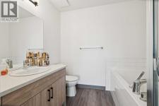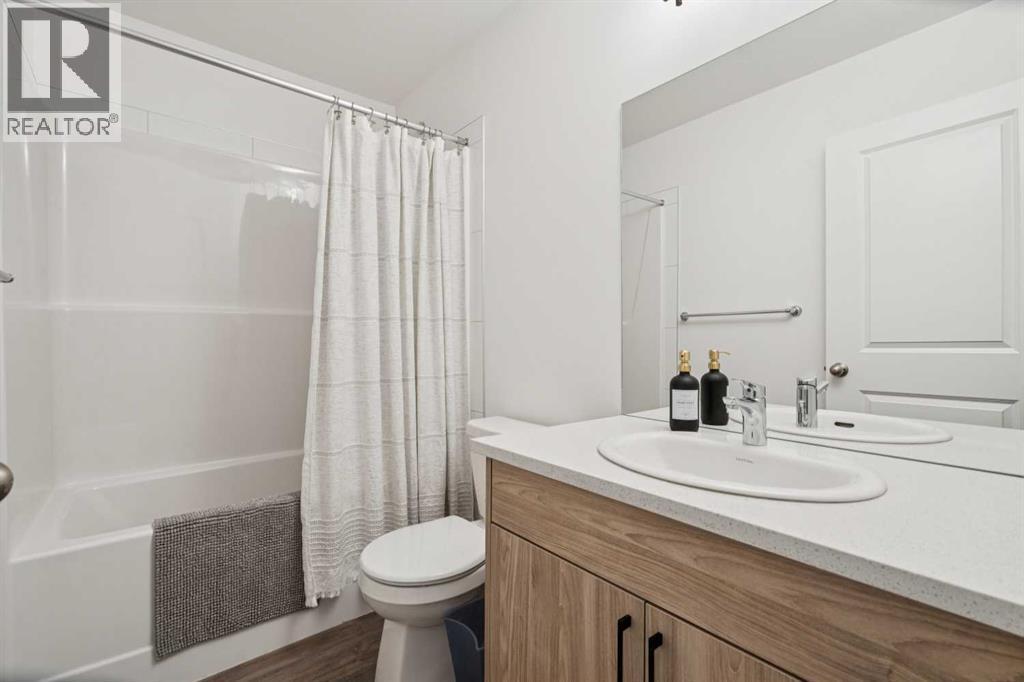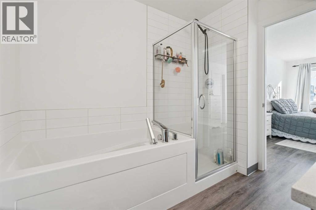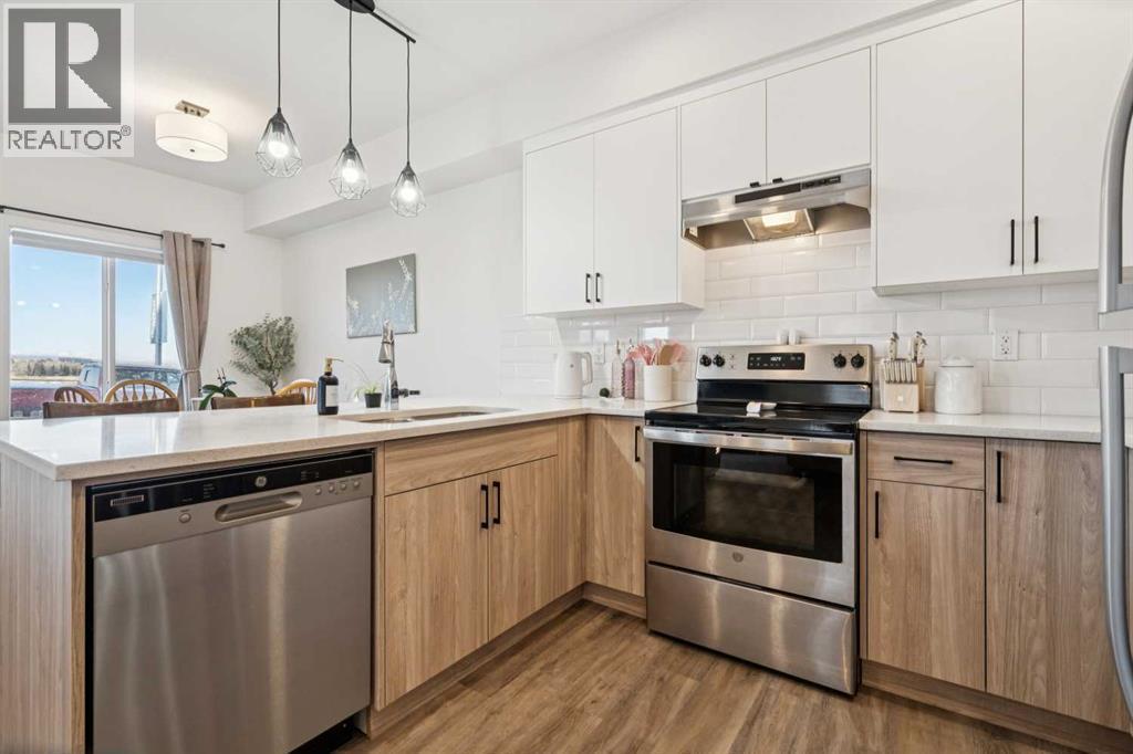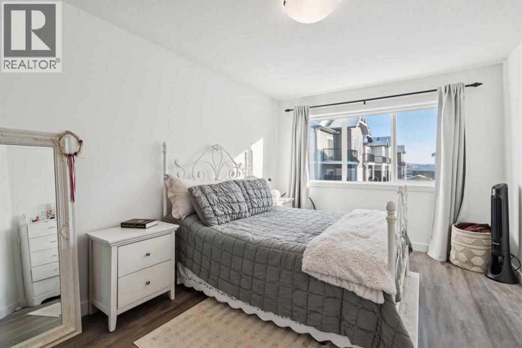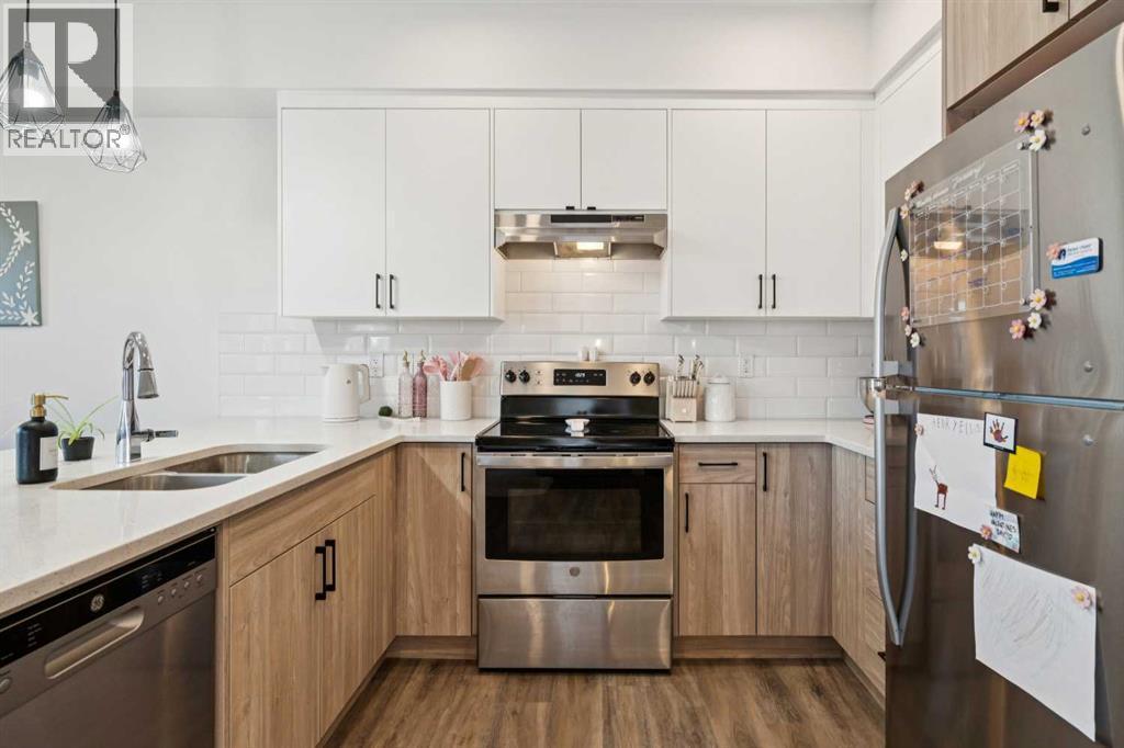 Discover the charm of contemporary living in this thoughtfully designed townhome. Filled with natural light from ample windows, the open-concept layout spans three inviting levels and offers beautiful mountain views. The stylish kitchen includes sophisticated cabinetry, quartz counters, a generous island, and stainless steel appliances. Offering 3 bedrooms, 2.5 baths. This home provides flexible living spaces. The primary bedroom boasts ample storage and direct access to the ensuite bath featuring a luxurious deep soaker tub/shower combo. A convenient half bath on the main level enhances functionality. Features include vinyl plank floors, main-level laundry, complete blinds, a single garage, and driveway plus street parking. Enjoy nearby pathways, local shopping, and convenient access to both Calgary and mountain adventures. (id:6769)