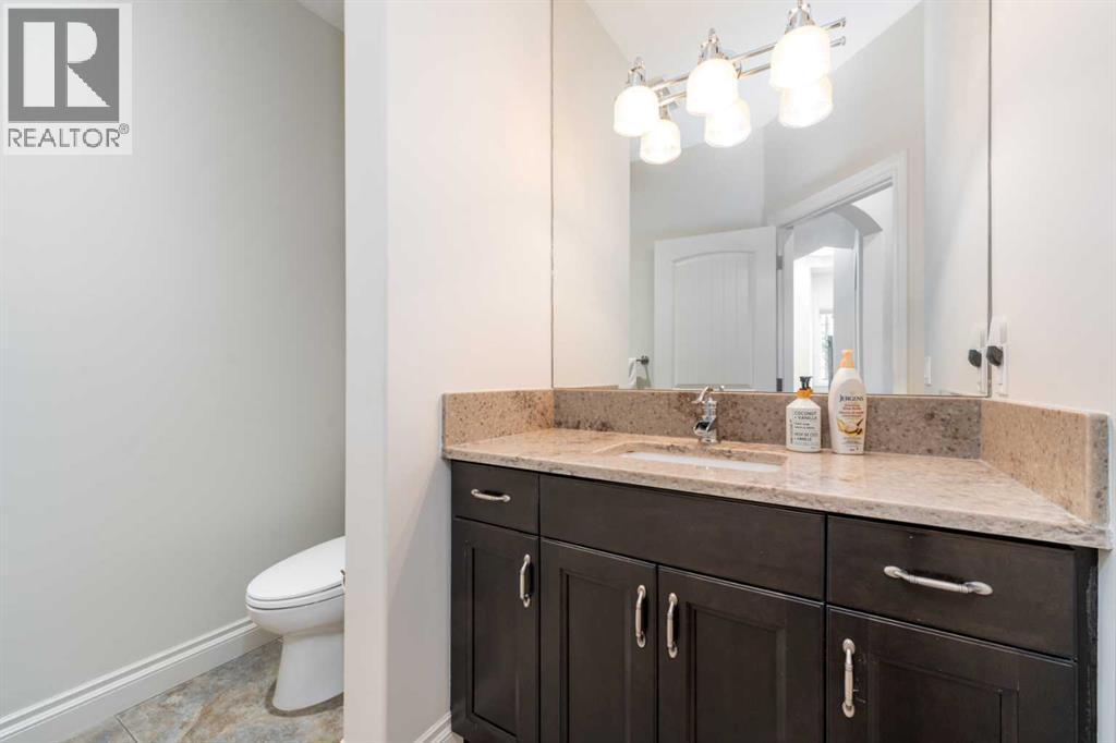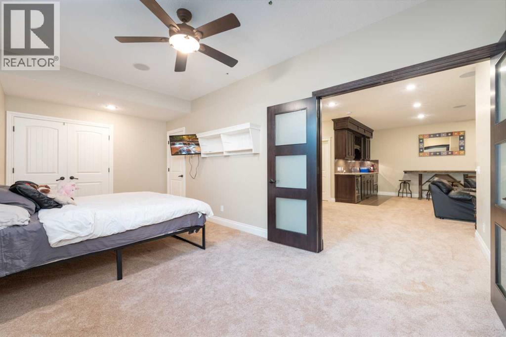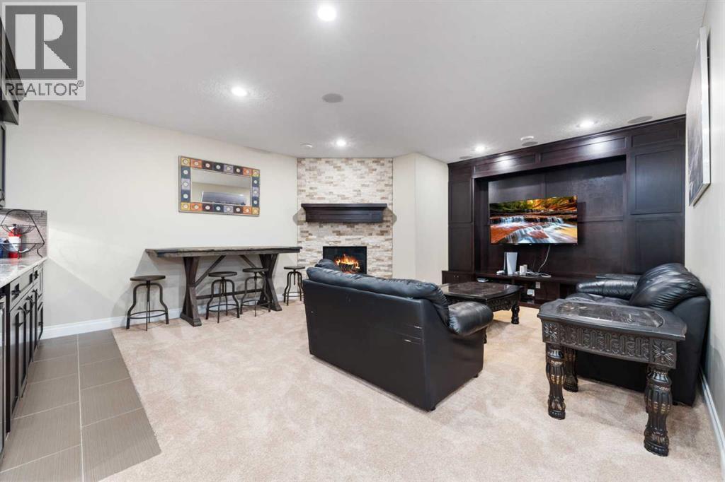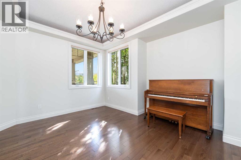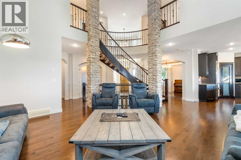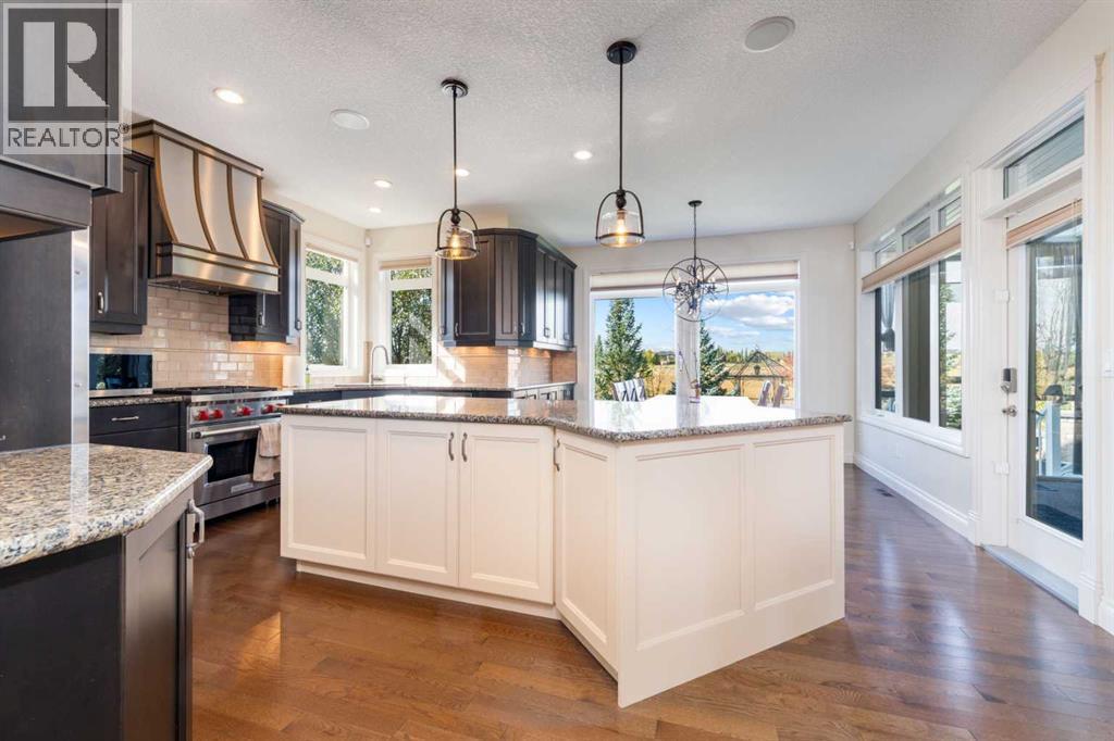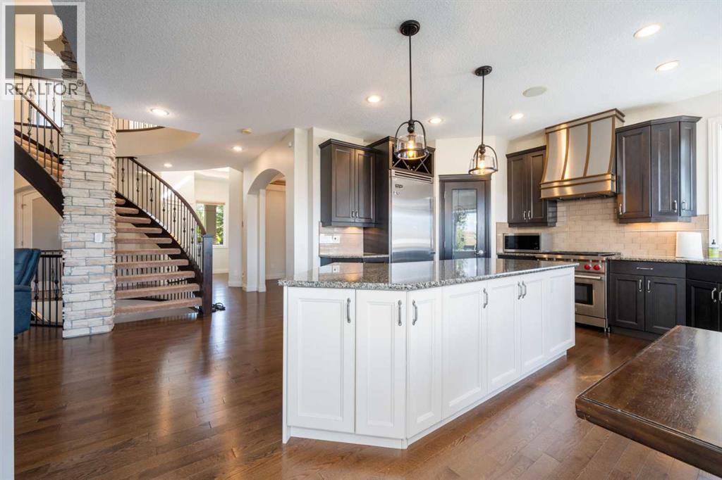 Looking for a home that has the “wow” factor the moment you step inside? This former show home in Okotoks’ highly desirable Air Ranch community delivers exactly that—and so much more. With 5 bedrooms, 3.5 bathrooms, and nearly every upgrade you could ask for, this property backs directly onto greenspace, offering a unique setting you won’t find anywhere else. It’s a rare combination of refined design and everyday comfort, all wrapped up in one incredible package. From the moment you walk in, the grand foyer makes an impression with 18’ ceilings, a sweeping spiral staircase, and natural light that fills the main floor. The layout is built for both entertaining and family living. The kitchen is every chef’s dream—featuring a Wolf gas range, Viking fridge, custom Hammersmith hood fan, and a convenient water filtration/softener system. Rich cabinetry runs floor-to-ceiling, paired with granite counters, a large island, and a walk-in pantry to keep everything organized. Throughout the main level, you’ll notice thoughtful details that set this home apart. A built-in audio system lets you enjoy music in every room. The office, tucked behind distinctive arched French doors, provides a quiet space for work or study. Even the laundry room has been elevated with granite counters to match the home’s cohesive, upscale feel. Upstairs, three generously sized bedrooms and two full bathrooms provide plenty of space for family and guests. The primary suite is the highlight—a true retreat with room for a king-sized bed and private seating area. The 5-piece ensuite feels like a spa with a granite double vanity, corner soaker tub, walk-in tiled shower, and expansive walk-in closet. The fully finished lower level is where this home really shines. With two additional bedrooms, a 3-piece bath featuring a steam shower, and a large family room complete with a cozy gas fireplace and built-in entertainment centre, there’s space for everyone. A granite-topped wet bar with sink, wine fridge, and microwave makes it easy to entertain or kick back for movie nights. You’ll also find a large finished storage area to keep everything neatly tucked away. Car enthusiasts or families with multiple vehicles will appreciate the massive heated garage, designed with both function and space in mind. Outdoors, the lifestyle continues with a screened-in covered sunroom off the kitchen eating nook, leading to a stone patio with a built-in fireplace and additional gas lines ready for your BBQ & sunroom. Surrounded by mature trees, Gemstone lights for year-round curb appeal, and serviced by an underground sprinkler system, the yard is both private and low-maintenance. Central AC adds comfort through the summer months, so you’ll enjoy this home year-round. Air Ranch is one of Okotoks’ most distinctive communities, known for its quiet streets, beautiful homes, and unique aviation history. If you’re after a property that checks every box—style, function, and location—this home has it all. Come take a look for yourself! (id:6769)