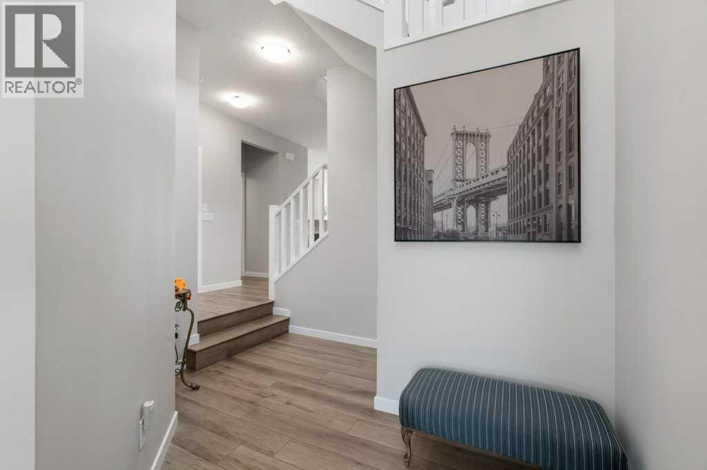 Welcome to this spacious and beautifully appointed 5-bedroom, 3.5-bathroom family home in the desirable NW community of Carrington. With 2,279 sq ft above grade and an additional 918 sq ft in the fully finished basement, this home offers over 3,100 sq ft of thoughtfully designed living space—ideal for large families, multigenerational living, or anyone craving extra room to grow. The main floor welcomes you with a bright, open-concept layout featuring 9’ ceilings and a warm, inviting living room with a gas fireplace. The adjacent dining area opens onto the sunny south-facing backyard via patio doors, extending your living space onto the deck—perfect for outdoor entertaining. The chef-inspired kitchen is a true showstopper, complete with an extra-long granite island, two-tone cabinetry, stainless steel appliances, and a separate spice kitchen with a second gas stove, powerful hood fan, and extra storage—ideal for preparing meals without lingering aromas in your main living space. A private office/den, 2-piece powder room, and a mudroom additional storage complete the main floor. Upstairs, you'll find a thoughtfully designed layout with a central bonus room, perfect for family movie nights or a kids’ play area. The primary suite is a serene retreat with a walk-in closet and a luxurious 5-piece ensuite featuring dual vanities, a deep soaker tub, and a separate shower. Three additional bedrooms share a 4-piece bathroom, and the convenient upper-floor laundry makes daily chores a breeze. The fully finished basement offers incredible flexibility with a large recreation room, 5th bedroom, another 4-piece bathroom, and plenty of storage. The 9’ ceilings and plumbing rough-ins provide the potential for a future basement suite (subject to approval and permitting by the city/municipality) or second kitchen. Enjoy the sunny, south-facing backyard that backs onto green space and a walking path, providing privacy and a peaceful backdrop. The low-maintenance landscaping, iron fro nt and back railings, upgraded spindles, and central A/C add function and style to this impressive home. Ideally located in Carrington, you're just minutes from NW Calgary’s best amenities, including shopping and dining, the Vivo and YMCA recreation centres, schools, playgrounds, theatres, and easy access to major routes like Stoney Trail. This is the total package—space, comfort, and convenience, all in a family-friendly community. (id:6769)