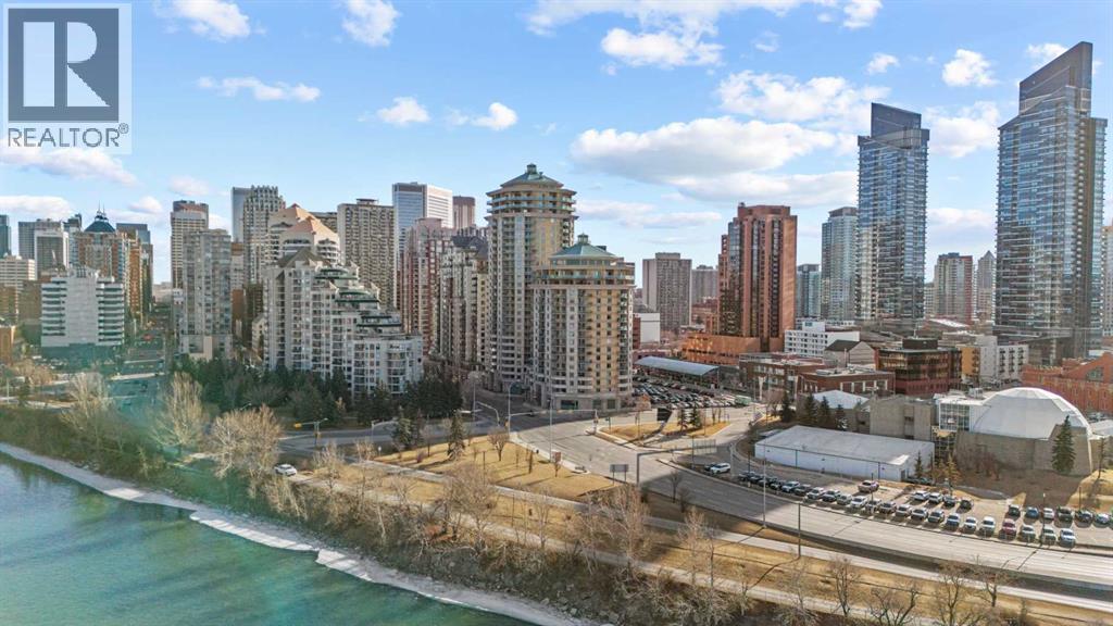 Experience the best of Calgary’s Downtown West End with this beautiful 9th floor apartment at Discovery Pointe, where an open concept layout flooded with natural light offers incredible views of the Bow River and the city skyline. The modern kitchen features expansive counter space and a functional breakfast bar that flows seamlessly into a spacious living area, perfect for entertaining. Step out onto your private balcony to immerse yourself in the stunning views, overlooking the Bow river, the lush greenery of Prince's Island Park, and the charming treelined streets of Sunnyside, all framed by the distant peaks of the Rocky Mountains. This comfortable home includes a spacious primary bedroom with generous closet storage, largewindows, dedicated in suite laundry, and energy efficient appliances.Residents enjoy some of the best amenities available downtown, including afully equipped fitness centre, a social lounge with billiards, a large 4th floor rooftop terrace, and eco-friendly features like onsite EV charging. This prime locations offers peace of mindWith 24/7 on site security and secure underground heated parking with bike storage.Live just steps away from the Bow River pathways and the LRT station located within the Downtown Free Fare Zone providing effortless access to the Core Shopping Centre,Kensingtons trendy boutiques, and Shaw Millennium Park. This is anincredible opportunity for professionals or investors looking for a premierresidence in the heart of the city. Close to work, shopping, schools and themost beautiful nature found in Calgary. (id:6769)
