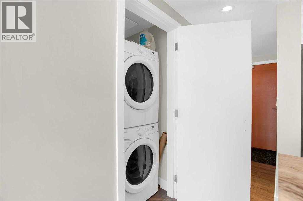 Exceptional value in this modern 2-bedroom + den, 2-bathroom corner residence in the sought-after Evolution Fuse tower in East Village. With expansive floor-to-ceiling Low-E windows, this home is bathed in natural light and showcases stunning views of the Bow River, St. Patrick’s Island, and the vibrant East Village skyline.The thoughtfully designed open-concept layout offers both style and functionality. The living area provides the perfect setting to enjoy morning coffee with sunrise river views, while the separate dining space comfortably accommodates sit-down dinners and entertaining. The contemporary kitchen features glossy white upper cabinetry paired with warm wood-grain lower cabinets, granite countertops with full-height backsplash, an undermount sink, and premium stainless steel appliances.The primary retreat includes a walk-in closet and a spa-inspired 4-piece ensuite complete with granite vanity and in-floor radiant heating. The second bedroom is well-sized and ideally positioned near the 3-piece bath for privacy. A generous den offers excellent flexibility for a home office or additional storage.Step outside to the oversized balcony with gas BBQ hookup — the perfect vantage point for summer evenings, city lights, and even Stampede fireworks.Additional highlights include in-suite full-size front-loading washer and dryer, underground parking, and a separate storage locker.Residents of Evolution enjoy concierge service, a fully equipped fitness centre with steam room and sauna, secure underground visitor parking, and a beautifully designed garden terrace.Located in one of Calgary’s most dynamic riverfront communities, East Village places you steps from river pathways, parks, restaurants, cafés, the Central Library, Studio Bell, and the LRT. With the future Event Centre and arena development underway, this location continues to grow in both lifestyle appeal and long-term value. Make this lifestyle yours.Ideal for professionals, urban buyers, or inv estors seeking strong rental potential in a premier downtown setting. (id:6769)