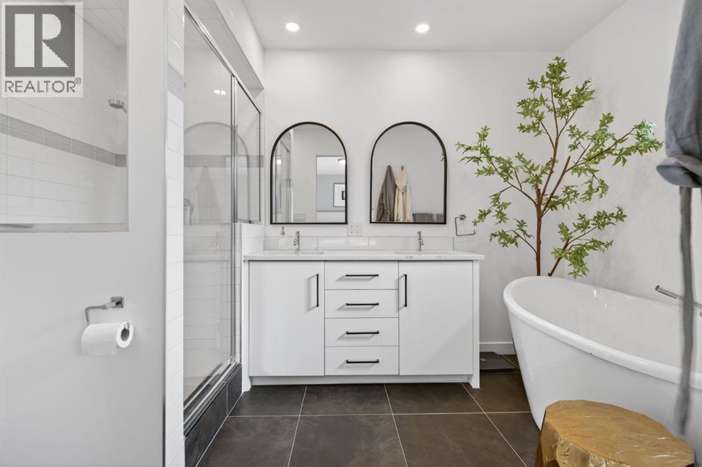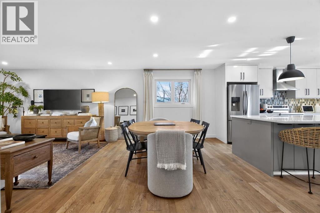Welcome to this fully renovated bungalow in the established community of Braeside. This extensively renovated bungalow offers over 2,500 sq ft of fully developed living space, where modern design, quality craftsmanship, and a thoughtfully designed layout come together across two finished levels. The main floor features three bedrooms making it the ideal space for growing families, or those seeking space to work, host, and unwind. Spanning 1,363 sq ft, the main level showcases a bright, open-concept design accented by hardwood flooring and expansive windows that bathe the home in natural light. The heart of the home is an inviting, contemporary kitchen and living space where clean lines and thoughtful design take centre stage. White cabinetry, stainless steel appliances, quartz countertops, and 9’x5’ island with storage on both sides with seating come together to offer understated elegance and everyday practicality. Whether it’s busy weekday mornings or relaxed evenings with friends, this space makes gathering feel effortless. The primary suite is a calm and inviting retreat, complete with a spa inspired ensuite featuring a double vanity and a deep soaker tub. Two additional bedrooms and a 3 pce bathroom complete the main level, offering both comfort and convenience. Downstairs, the fully finished 1,221 sq ft basement extends the home’s versatility with two more bedrooms, a den space, and a spacious recreation area—ideal for movie nights, a home gym, games area, or kids’ play space. Step outside into the south facing back yard and discover one of the home’s standout features: a large, private backyard oasis. The composite deck is perfect for summer entertaining and outdoor lounging and the space is ideal for the kids to play. Each spring, the mature tree comes into bloom with delicate pink blossoms, creating a serene and picturesque backdrop to the outdoor space. The oversized detached double garage provides secure parking and extra storage, while incredible neighbo urs and a welcoming atmosphere complete the picture. Located close to schools, playgrounds, The Shops at Buffalo Run, and with quick access to Stoney Trail, this Braeside bungalow offers the perfect balance of modern comfort, thoughtful updates, and an easy, connected lifestyle. This is one you won’t want to miss. (id:6769)
