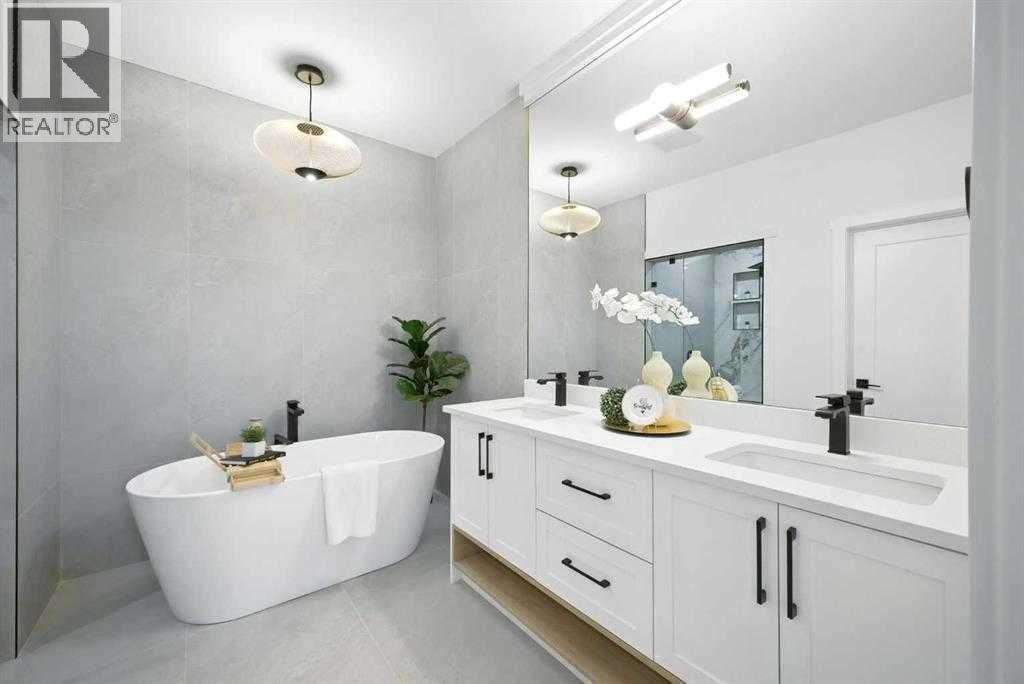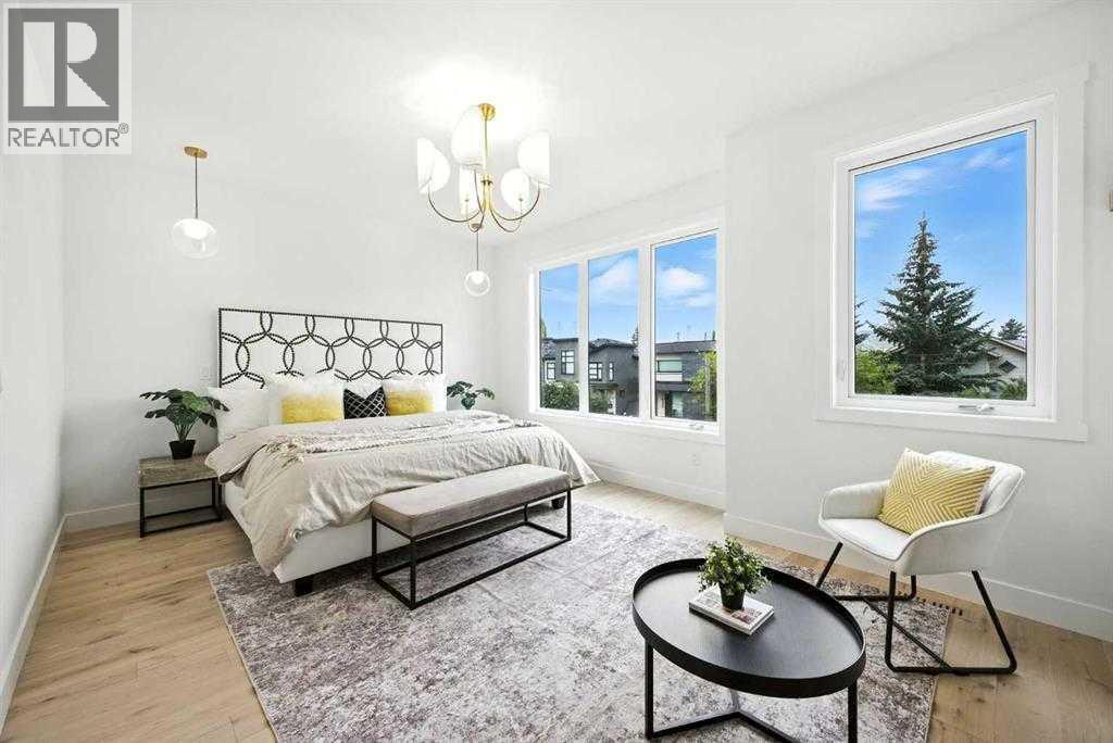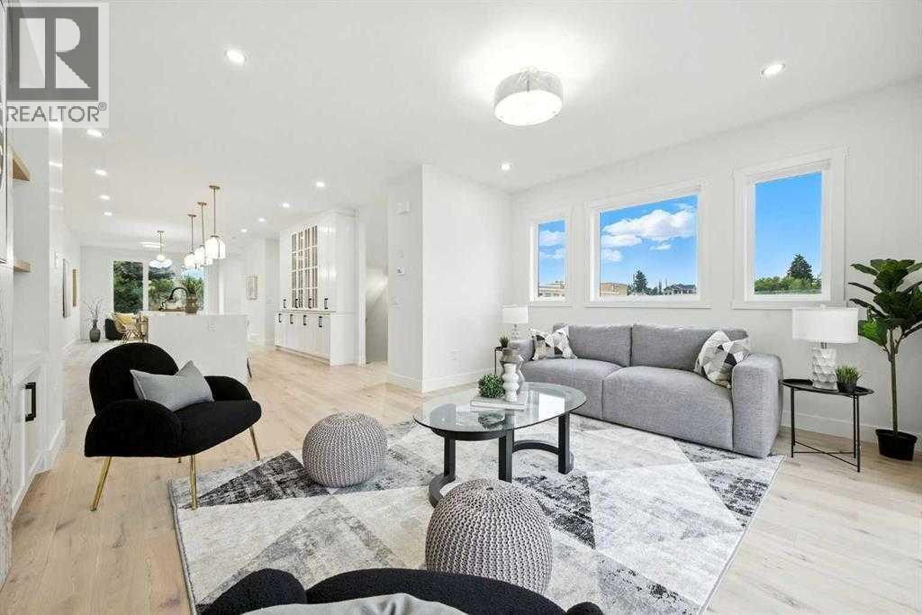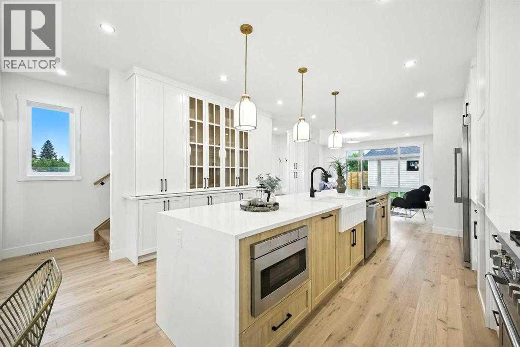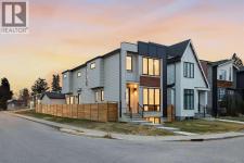 BEST PRICED NEW DETACHED HOME IN AREA...DONRT MISS OUT!!..Set on a prime corner lot in one of Calgary’s most established inner-city communities, this home delivers striking design, exceptional craftsmanship, and everyday livability in Mount Pleasant. Created by Tricor Design Group, this newly constructed home offers a refined yet comfortable lifestyle, blending clean architectural lines with carefully curated finishes. Positioned directly across from a school and framed by professional landscaping, the setting offers both privacy and connection, with Confederation Park, the Mount Pleasant Sportsplex, local playgrounds, and downtown just moments away. Inside, the main floor unfolds into a bright, contemporary living space designed for both relaxed living and effortless entertaining. Large windows invite natural light throughout, highlighting the rich engineered hardwood flooring and stylish gas fireplace with custom built-ins that anchor the living area. The seamless open layout creates a natural flow between the kitchen, dining, and living spaces, offering an ideal backdrop for gatherings of any size. The kitchen is thoughtfully designed with a focus on clean aesthetics and everyday function. Quartz countertops, a dramatic waterfall island, and premium integrated appliances including an oversized refrigerator and Bertazzoni Range create a polished and highly functional workspace. Custom pantry storage enhances organization while maintaining a streamlined look. Expansive sliding doors extend the living space outdoors to a private backyard featuring a concrete patio, green space, and access to the double detached garage - perfect for hosting, relaxing, or enjoying warm summer evenings. Upstairs, the primary retreat provides a calming and well-appointed escape. A sleek electric fireplace adds warmth and ambiance, while the custom walk-in closet offers generous storage. The spa-inspired ensuite elevates daily routines with heated floors, a rough in for steam shower, an d a freestanding soaker tub designed for total relaxation. Two additional well-sized bedrooms, a full bathroom, and an upper-level laundry room complete this floor, offering practical comfort for family living. The fully finished lower level expands the home’s versatility with a spacious recreation area featuring a modern wet bar and wine fridge, ideal for entertaining or unwinding. A dedicated home gym, fourth bedroom, and full bathroom provide flexible space for guests, work, or wellness. Thoughtfully designed from top to bottom, this home presents a seamless blend of modern style, comfort, and functionality in a sought-after inner-city location, and offers a rare opportunity to experience elevated urban living in a home where design and lifestyle come together effortlessly. (id:6769)