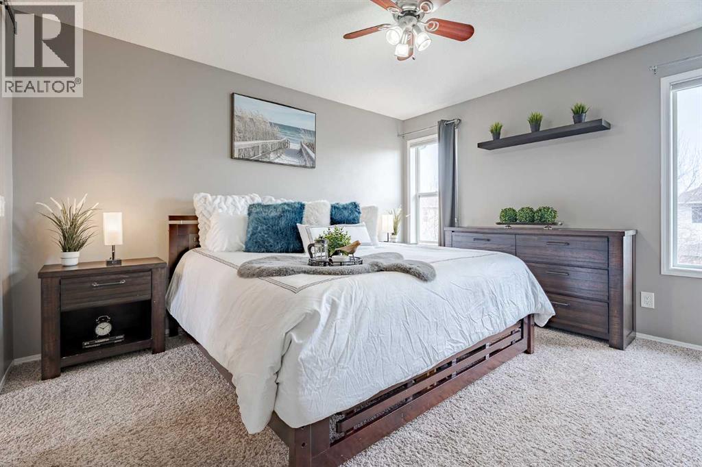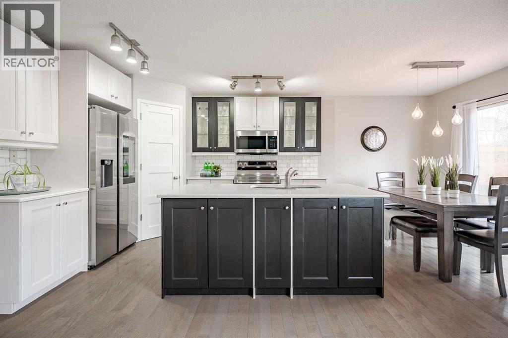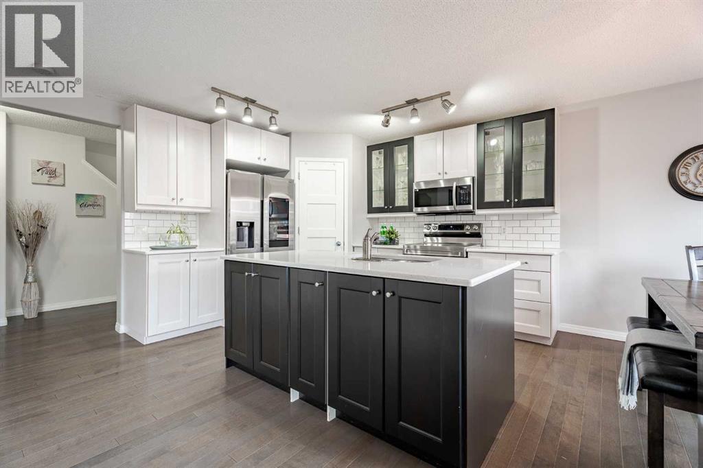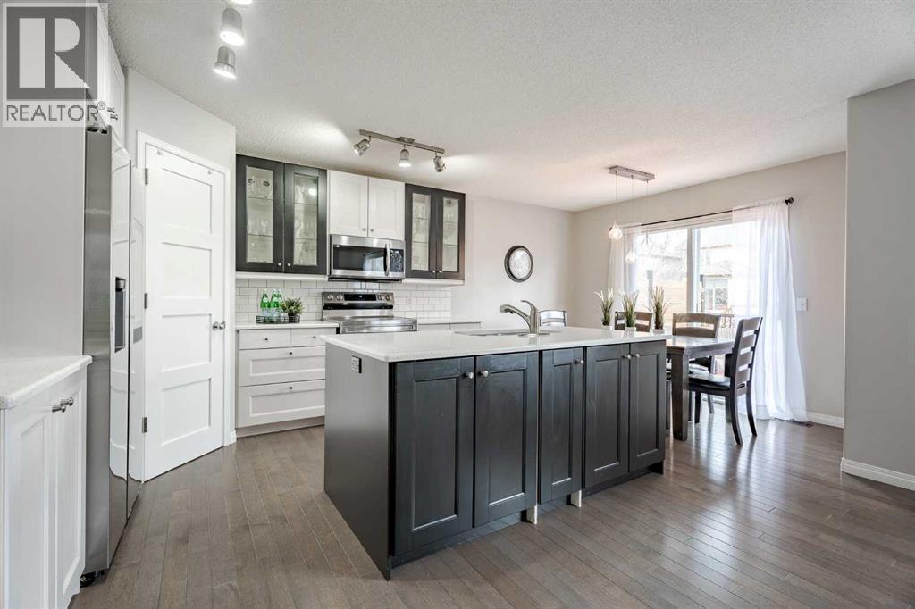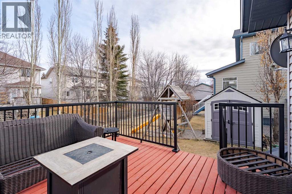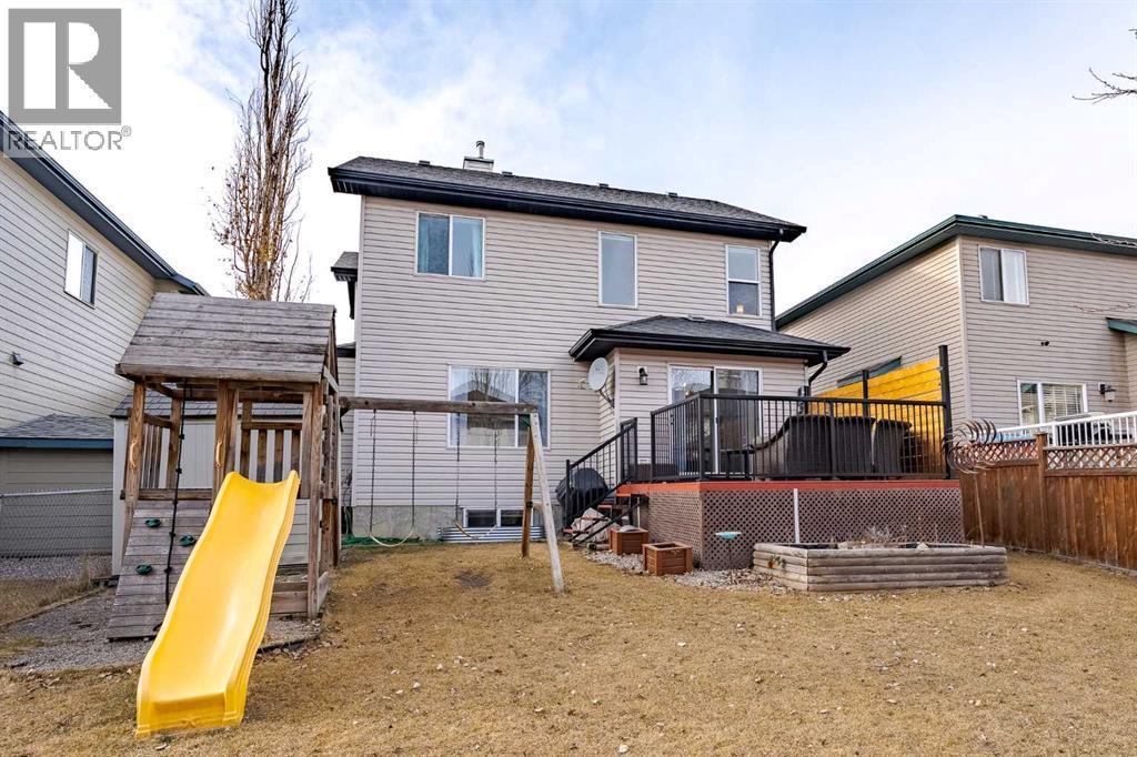 Located in the sought-after Fairways community, where Woodside Golf Course winds through the neighbourhood, this fully finished 2-storey is the perfect blend of comfort and style. With 4 bedrooms and 3.5 bathrooms, this move-in-ready home welcomes you with warm hardwood floors, loads of natural light, and an easy, open-concept layout. Cozy up by the gas fireplace, host dinner in the bright dining nook overlooking the private oasis backyard with plenty of mature trees, and enjoy cooking in the stylish kitchen featuring quartz countertops and newer stainless steel appliances. Main-floor laundry and a 2-piece bath add everyday convenience. Upstairs, the vaulted bonus room is ideal for movie nights or a play space, alongside two generous bedrooms, a full bath, and a spacious primary retreat complete with a 4-piece ensuite featuring a separate tub and shower. The fully finished basement (upgraded with sound-dampening insulation) offers even more space with a family room, fourth bedroom, and 3-piece bath — perfect for guests, teens, or a home office. Step outside to a backyard with the perfect amount of privacy; built for making memories — relax under the gazebo, enjoy the deck, and take advantage of the movable shed and play place. The insulated, drywalled double attached garage with epoxy flooring is the cherry on top. Bonus features? Central A/C, cellular blinds, and Gemstone Lights for stunning, customizable year-round exterior lighting — festive, functional, and fabulous. If you’ve been waiting for a golf course community home that truly checks all the boxes, this is it. Come see your next chapter today. (id:6769)