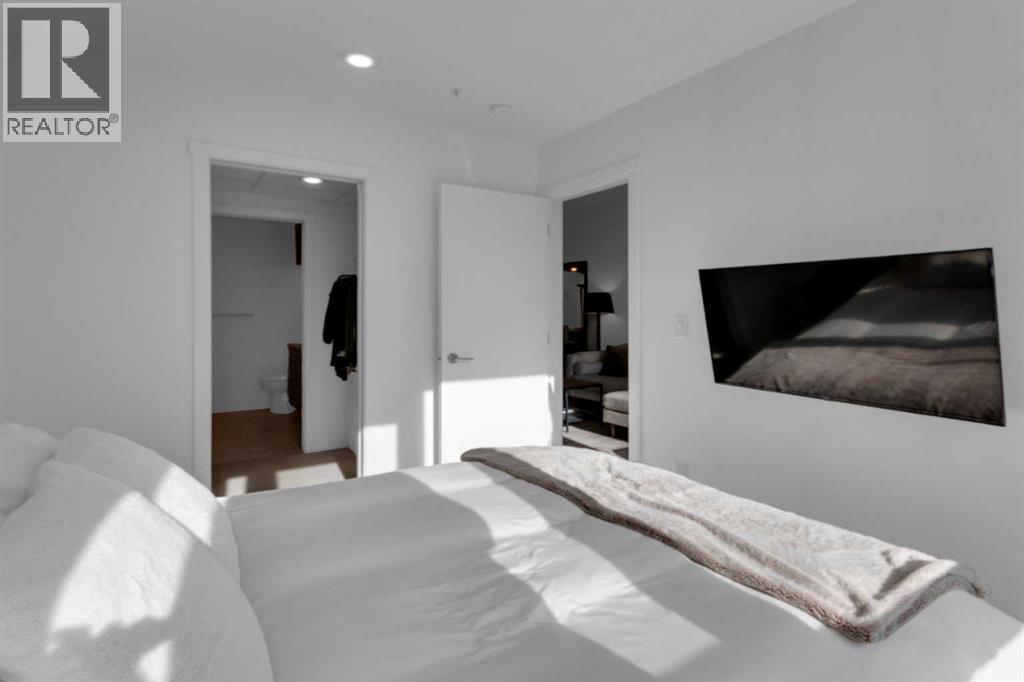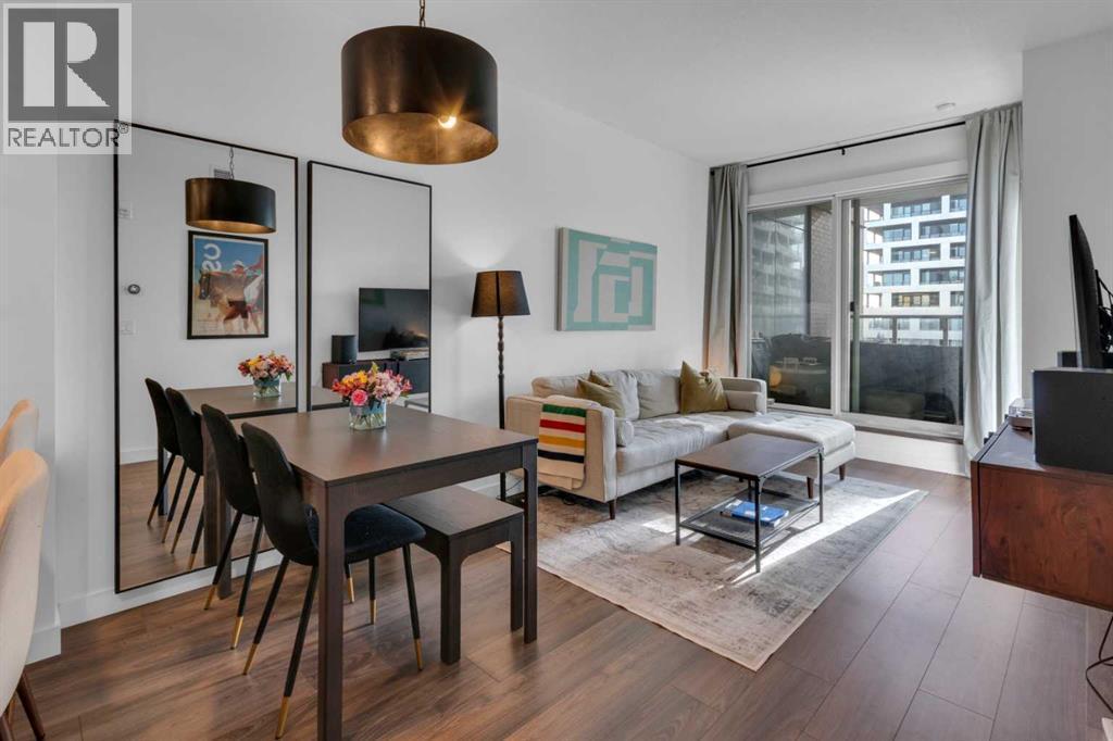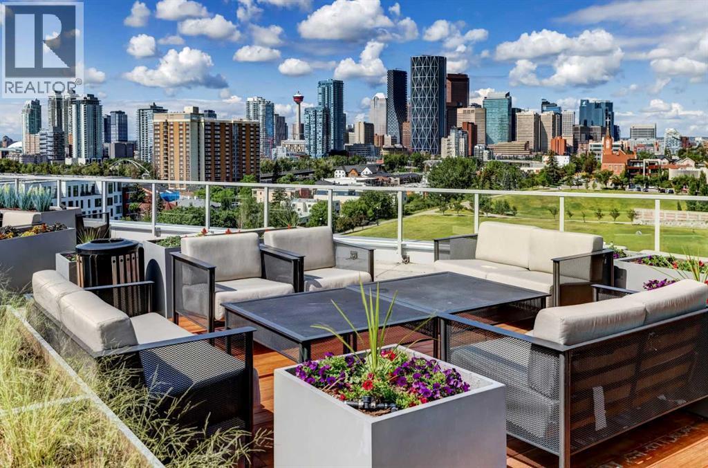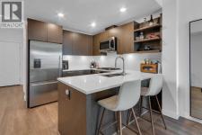 Experience refined inner-city living in this beautifully designed 2 bedroom, 2 bath condo in the heart of Bridgeland. Featuring a south-facing exposure overlooking green space, this home is filled with natural light while offering a peaceful outlook rarely found in urban settings.The contemporary kitchen is both stylish and functional, showcasing quartz countertops, and a full suite of Bosch appliances, complemented by a premium Fisher & Paykel refrigerator. Designed for both everyday living and entertaining, the open-concept layout seamlessly connects the kitchen, dining, and living areas, creating a bright and welcoming space.The primary bedroom features a spacious walk-through wardrobe leading to a private ensuite, along with thoughtfully designed built-in storage that enhances both functionality and organization. The versatile second bedroom includes a built-in Murphy bed, allowing the space to easily transition between a guest room and a dedicated home office. A generously sized in-suite storage and laundry room adds exceptional convenience, a rare and valuable feature in condo living.This well-managed, pet-friendly building provides an impressive array of amenities, including concierge services, a fully equipped fitness centre, spin studio, yoga and movement room, rooftop terrace with panoramic city views, pet-washing station, secure bike storage, car wash bay, visitor parking in the secure underground parkade, and inviting community gathering spaces.Ideally located in vibrant Bridgeland, you are steps from cafés, dining, fitness studios, boutique shopping, local markets, parks, and the Bow River pathway system. With quick access to downtown and the C-Train nearby, commuting is effortless while enjoying one of Calgary’s most walkable and character-filled neighbourhoods.An exceptional opportunity to enjoy stylish urban living paired with premium amenities and a sought-after location. (id:6769)