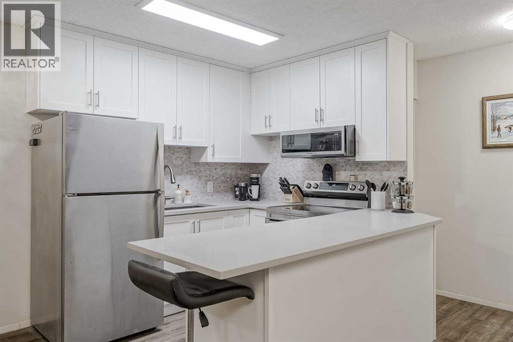 Welcome to Edgecliffe Estates. This TOP FLOOR , CORNER UNIT is 2 bedroom, 2 bathroom, wonderfully updated and makes for a perfect home in one of Calgary's most sought after complexes. As you enter you are greeted with gorgeous laminate floors that lead you into your open floor plan living space. At over 880 square feet this home feels large and includes a fully updated kitchen with ample amount of cabinets, beautiful quartz counter tops and newer appliances. Adjacent to your kitchen is your dining space and your living room equipped with a gas fire place and north facing balcony overlooking a green space. This home is great for entertaining or for quiet nights at home with the family. Your primary bedroom is large enough for a king size bed, additional bedroom furniture and features it's own ensuite bathroom with a walk-in shower. The second bedroom is very large as well and is just next to the newly renovated second bathroom. The home has ample storage and in-suite washer and dryer. Edgecliffe Estates has some of the most amazing amenities included with your condo fees starting with a large indoor pool, fitness centre, party room and additional guest parking. You are steps to nose hill and some of the most amazing biking and hiking trails as well as quick access to downtown, market mall, northland mall, great schools and the airport. Edgemont is truly one of Calgary's premier communities, do not miss out on this opportunity to own this amazing home! (id:6769)