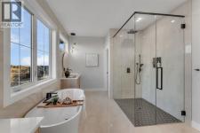 **OPEN HOUSE FEB 28 between 1:00 -4:00 PM** Welcome to 28 Spring Creek Point SW a true statement home in prestigious Springbank Hill, offering luxury living on a rare pond-front lot in Calgary. With over $200,000 in upgrades, this masterpiece was built for those who appreciate quality, design, and presence. From the moment you arrive, the striking Farmhouse exterior makes an impression, blending acrylic stucco and stone for timeless curb appeal. Inside, the home is centered around a showstopping Super Kitchen a space designed to host, gather, and impress featuring an oversized island with a dramatic 3CM waterfall granite edge, thick quartz counters, a professional 30" gas cooktop, and integrated wall oven. The main level also offers a private office, perfect for working from home, a stylish powder room, and a warm, inviting living room anchored by a grand 74" electric fireplace. Step outside to the expansive deck with a built-in BBQ gas line, ideal for entertaining while overlooking the pond. Upstairs, the primary retreat delivers a true spa experience, complete with a Maax Jazz freestanding tub and a curbless tiled shower with sleek 10MM glass. A versatile loft adds additional living space for relaxation or creativity. The fully developed walk-out basement features 9-foot ceilings, a spacious recreation area, custom wet bar, additional bedroom, and a modern bathroom all opening to your private outdoor setting. Designed for comfort and long-term performance, the home includes Black Fusion windows, 8-foot interior doors, upgraded HVAC with A/C, EV charger rough-in, and a 200-amp electrical service. This is a home where upgrades, design, and location come together seamlessly offering a level of finish and lifestyle rarely available. Book your private showing and experience it for yourself. (id:6769)