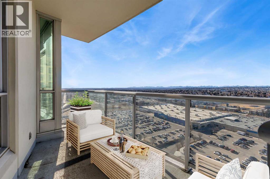Perched on the 20th floor, this bright and well laid out 2 bedroom, 2 bathroom condo offers the kind of experience that truly sets it apart. Prepare to enjoy mountain views, along with an abundance of natural light pouring in through the bright generous windows. The open concept layout is both practical and inviting, perfect for everyday living and effortless hosting. Step inside to enjoy a home that’s been beautifully renovated. Sleek new LVP flooring spans the living and bedroom areas, refreshed cabinetry with modern hardware brightens the kitchen, and granite countertops paired with updated appliances complete the move-in ready space.The living room features a corner gas fireplace that adds warmth and character, while central air conditioning keeps the space comfortable year round. The bedrooms are thoughtfully positioned, making this layout ideal for professionals, small families, roommates, or those working from home. Step outside to your balcony and take in the open sky and endless views. This well managed complex offers exceptional amenities that add real value to everyday living, including an indoor pool and hot tub, a fully equipped fitness centre, games room, party rooms, on site management, and full time security for peace of mind. The unit also comes with one titled parking stall, assigned storage, and secure visitor parking on the first level of the parkade, offering convenience for both you and your guests. Location truly elevates the experience. The Westbrook LRT station is less than a block away, making commuting downtown simple and quick. Walmart, Safeway, restaurants, and other amenities are directly across the street, giving you true walkable access to daily essentials. If you are looking for comfort, convenience, and incredible views in a prime location, this home checks all the boxes! Welcome Home. (id:6769)