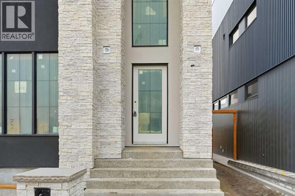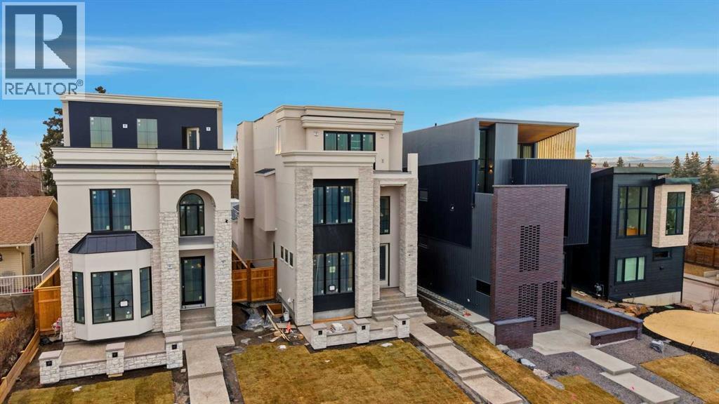 Beautifully positioned in the heart of Marda Loop on a quiet, tree-lined street and situated on a 31’x125’ lot, this super luxe residence offers nearly 4400 sq ft of developed living space and combines exceptional design, thoughtful functionality, and refined comfort. A sunny south-facing backyard and fully unobstructed city views set the stage for elevated inner city living. A private elevator services all levels—from the basement to the top floor—offering effortless accessibility for those looking to age in place or right-size without compromise. Inside, the home is rich with high-end finishes, including chevron-patterned hardwood flooring throughout, two toned cabinetry with warm wood accents, and a beautifully appointed butler’s walk through pantry connecting the kitchen to the spacious dining area. The living room centres around a gas fireplace with a white oak mantle and striking tile surround, while the chef’s kitchen impresses with quartz countertops, a generous island/eating bar, statement wall panelling, hexagon tile details, and premium stainless steel appliances. A wide, light-filled staircase leads to the second level, where you’ll find a bonus room, a well designed laundry room, and two large bedrooms—each complete with its own private ensuite. The top floor is a true primary retreat, offering a private lounge/den, a wet bar, full city views, and direct elevator access. The luxurious primary suite features an exceptional walk in closet and a spa inspired ensuite with dual vanities, heated floors, freestanding soaker tub and a glass shower with bench which is roughed in for steam. The fully developed basement—also roughed in for in floor heat—includes a stylish built in bar, a massive recreation room ideal for movie nights, fitness space, or play, a fourth bedroom, and a beautifully finished three piece bathroom. Additional highlights include designer lighting with glass and bronze gold detailing, moody chandeliers and statement sconces, rough in for A/ C, a fully landscaped and fenced yard, a front deck/balcony, and a timeless exterior design. Parking is a breeze with a double attached garage is also roughed in for in floor heat. Just steps from the amenities of Marda Loop, close to transit, Crowchild Trail, parks, schools, and only a 10 minute drive to downtown Calgary, this home delivers the best of luxury and location in one exceptional package. (id:6769)