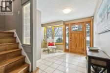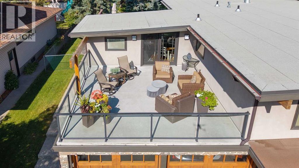 Perfectly positioned on a quiet cul-de-sac in Varsity Village, this exceptional raised bungalow offers a rare blend of privacy, openness, and connectivity. The home faces a large open green space and soccer fields adjacent to École Terre des Jeunes, creating an expansive and unobstructed outlook, while the school grounds begin several yards to the west. The rear of the property backs onto the neighbourhood pathway system—ideal for walking, cycling, and easy access to surrounding green spaces.Extensively renovated, the home features a stunning custom kitchen designed for both daily living and entertaining. Solid wood cabinetry, granite countertops, and premium appliances include a Fisher & Paykel gas cooktop, Bosch double ovens, Miele dishwasher, oversized KitchenAid refrigerator, and a full-size bar fridge. Natural gas hookups to both decks further enhance outdoor entertaining.Two expansive decks extend the living space outdoors. The front deck offers vinyl flooring with glass railing and open views across the green space, while the walk-out rear cedar deck provides privacy, a wind screen, and views of the landscaped yard and pathway beyond. Mature trees and shrubs contribute to the home’s established character.Inside, large windows and exposed wood beams create a bright, welcoming atmosphere and highlight the home’s architectural character. Hardwood flooring on the main level, updated lighting with dimmer controls, generous closets, and multiple living spaces support both comfort and functionality. Two natural gas fireplaces add warmth, while built-in speakers, custom cabinetry, and office desks enhance everyday living.The primary suite features a walk-in closet, blackout blinds, a soaker tub, separate shower, and heated floors. Additional highlights include air conditioning, water softener, humidifier, two forced-air furnaces, a heated oversized double garage with ample storage, and a large storage area beneath the rear deck.Located in Varsity Village, reside nts enjoy generous lot sizes, excellent schools at all levels, proximity to the University of Calgary, Market Mall, University District amenities—without the density—and convenient west-side access to downtown and the mountains. Welcome home! (id:6769)