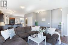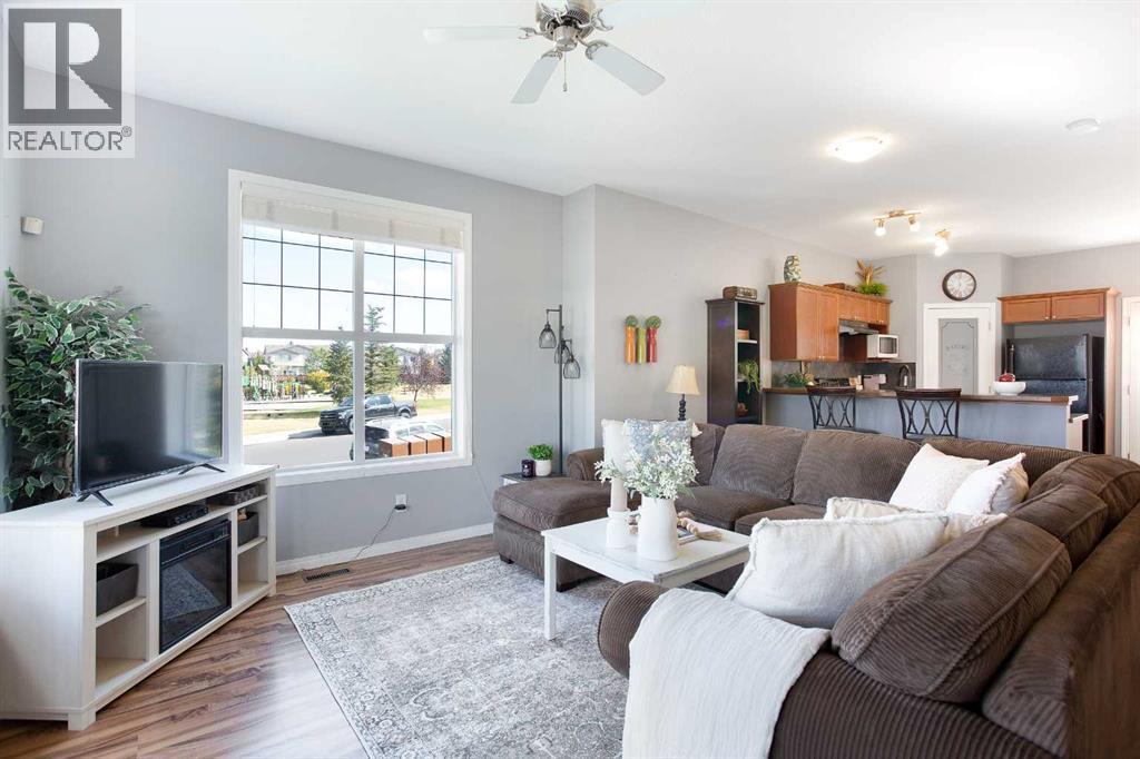 Boasting over 1,700 sq. ft. of developed living space across three levels, this sun-drenched corner residence represents the pinnacle of townhome living where designer style meets effortless comfort. Positioned to maximize natural light, the main floor features soaring nine-foot ceilings and expansive windows that illuminate every square inch. The heart of this home includes a lovely kitchen equipped with abundant cabinetry, a walk-in pantry, and an inviting breakfast bar—ideal for morning coffee or casual entertaining. A charming dining nook, discreet powder room, and organized rear entrance round out the primary level. Ascend to the upper floor to discover a layout designed for flexibility and relaxation. Two generous bedrooms are complemented by a versatile bonus room, perfect for a sophisticated home office or media retreat. The primary suite offers a clever privacy door providing direct access to the four-piece bathroom, creating an exclusive ensuite atmosphere. The developed lower level, significantly broadens your footprint, showcasing a massive family lounge and an additional 3-piece bathroom with a sleek walk-in shower. A dedicated laundry suite comes fully prepared with an included washer and dryer set for your convenience. This move-in-ready property distinguishes itself through premium end-unit placement and high-end show-home aesthetics. Secure your future in a residence that feels as expansive as it does intimate. Opportunities of this caliber rarely linger on the market—book your Showing today! (id:6769)