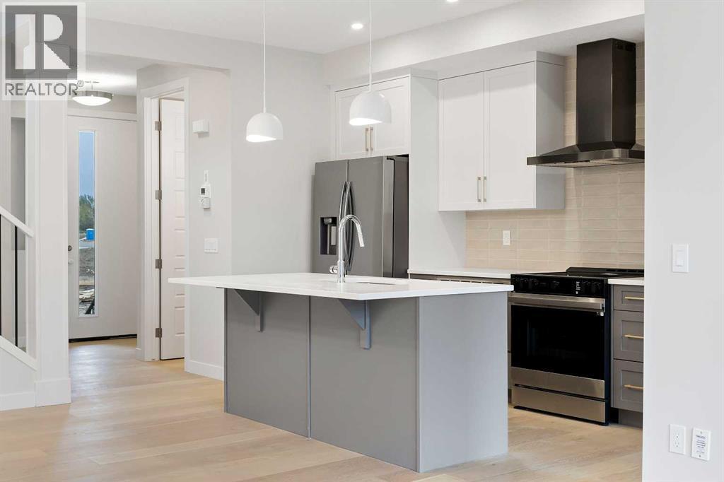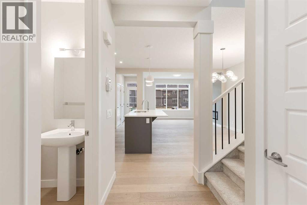 BRAND NEW HOME by Douglas Homes, Master Builder in central Greystone, short walking distance to parks, the Bow River, major shopping & interconnected pathway system. Featuring the Canberra with main floor forward enclosed Flex Room/4th Bedroom & separate side entry on an R-MX zoned home site for POTENTIAL future lower level suite. NOTE: a secondary suite would be subject to approval and permitting by the city/municipality. This gorgeous 3 bedroom, 2 & 1/2 half bath home offers 1490 sq ft of living space. This home is located on a Agate Road which provides immediate access to the Children's Park at the end of the street and easy access interconnective pathway system, perfect for those looking for a outdoor lifestyle. Loads of Designer & upgraded features in this beautiful, open floor plan. The main floor greets you with 8' front door, soaring 9' ceilings, oversized windows, built-in niches & fireplace. Gleaming Hardwood floors flow through the kitchen, hall & nook adding a feeling of warmth & style. At the front of the home you'll find an enclosed bright Flex Room (could also be a main floor bedroom) with 8'0" French Door and storage closet for the work from home crowd. The Kitchen is completed with Quartz Countertops, two tone Kitchen Cabinets, 42" uppers with decorative enclosed bulkhead, plenty of drawers including Pots & Pan drawers, soft close doors & drawers & new stainless steel Kitchen appliance package. Upstairs you'll find a generous Primary Bedroom with Ensuite - Quartz Counters with double vanities, 5' shower with Designer tiled walls & toilet in its own private doored room all completed with ceramic tile flooring & large walk-in closet accessed from the bedroom. The 2nd floor is completed by two good size additional bedrooms, main bath tub/shower combination with tiled walls, window, Quartz countertop, undermounted sink & ceramic tile flooring. You will love the convenience of 2nd Floor Laundry Room for side by side laundry completed with ceramic floo r tile. This is a very popular plan, great for young families, investors or the down sizers. Spacious, Beautiful and Elegant! The perfect place for your perfect home. Call today! Photos are from prior build & are reflective of fit, finish & included features. Note: Front elevation of home & interior photos are for illustration purposes only. Actual elevation style, interior colors/finishes, & upgrades may be different than shown & the Seller is under no obligation to provide them as such. Directions: Come to the Show Home first located at 500 River Avenue. Showings only during Show Home hours & days. THIS HOME IS UNDER CONSTRUCTION (id:6769)