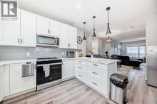 Welcome to elevated townhome living in Belmont. This beautifully upgraded 3-bedroom, 2.5-bath home offers 1511.8 sq. ft. of thoughtfully designed space with 9’ ceilings on the main level and 8’ ceilings upstairs, creating a bright, airy feel throughout. The main floor features an open-concept layout ideal for everyday living and entertaining. At the heart of the home is a chef-inspired U-shaped kitchen with exceptional counter space and storage, highlighted by a striking waterfall-edge island, upgraded sink, and under-cabinet lighting for added style and function. A dedicated breakfast bar adds flexibility for casual meals and hosting. The spacious great room flows seamlessly into the dining area, while roller shades and upgraded window coverings (including the balcony door) provide a polished, modern finish. Step out to the upper-level balcony, perfect for morning coffee or winding down in the evening. Upstairs, the primary suite offers a well-appointed ensuite. Two additional bedrooms provide excellent flexibility for family, guests, or a home office, and the upper-floor laundry completes the level.Additional upgrades include a bold black lighting package, elevated hardware and fixtures, and cohesive designer finishes throughout. A standout feature is the oversized tandem attached garage (11.3’ x 38.1’)—ideal for parking, storage, a workshop, or hobby space.Enjoy a convenient location close to parks, pathways, shopping, dining, and major routes—plus walking distance to the new City Field House currently being built in Belmont. Move-in ready and loaded with upgrades—this is a standout opportunity for modern, low-maintenance living. (id:6769)
