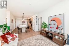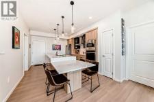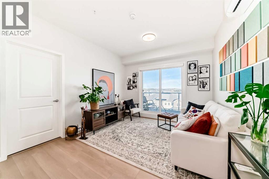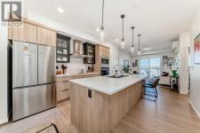 If you have been searching for a modern condo in NW Calgary that does not feel cookie-cutter, this is it. Located in Carrington, this TOP-FLOOR home gives you privacy, light, and a clean contemporary design. Built in 2022 by Cedarglen, this 860+ sqft condo was designed for real life. Not just photos. The kitchen is upgraded and finished with TWO-TONE CABINETS to the ceiling, GLASS-FRONT UPPERS, QUARTZ COUNTERS, a BUILT-IN OVEN and microwave, a cooktop with HOOD FAN and a CUSTOM BUILT-IN DINING area. It feels sleek, modern, and intentional, perfect for hosting. This 2 BED / 2 BATH layout offers separation and function. The primary bedroom has an ensuite with DOUBLE VANITY, walk-in shower and a massive WALK-IN CLOSET. The second bedroom has its own WALK-IN CLOSET too, and is adjacent to the guest bath. The huge LAUNDRY ROOM offers serious storage. You also get A/C, titled underground PARKING and a separate STORAGE LOCKER. No sweating in the summer. No scraping snow in winter. No clutter in your living space. TOP FLOOR means no one above you. More peace. More quiet. Nearby GREENWAY PARK offers playgrounds, a basketball court, a skate park, art installations, and access to the Rotary Mattamy Greenway trail system. In fact, there are about 65 acres of green space and connected pathways making it easy to stay active. The SHOPS OF CARRINGTON GREEN, with groceries, restaurants, and professional services, are literally at your doorstep. Quick routes to major roadways and future Green Line LRT expansion make commuting simple. Stop settling for average condos. This one checks all the boxes. (id:6769)