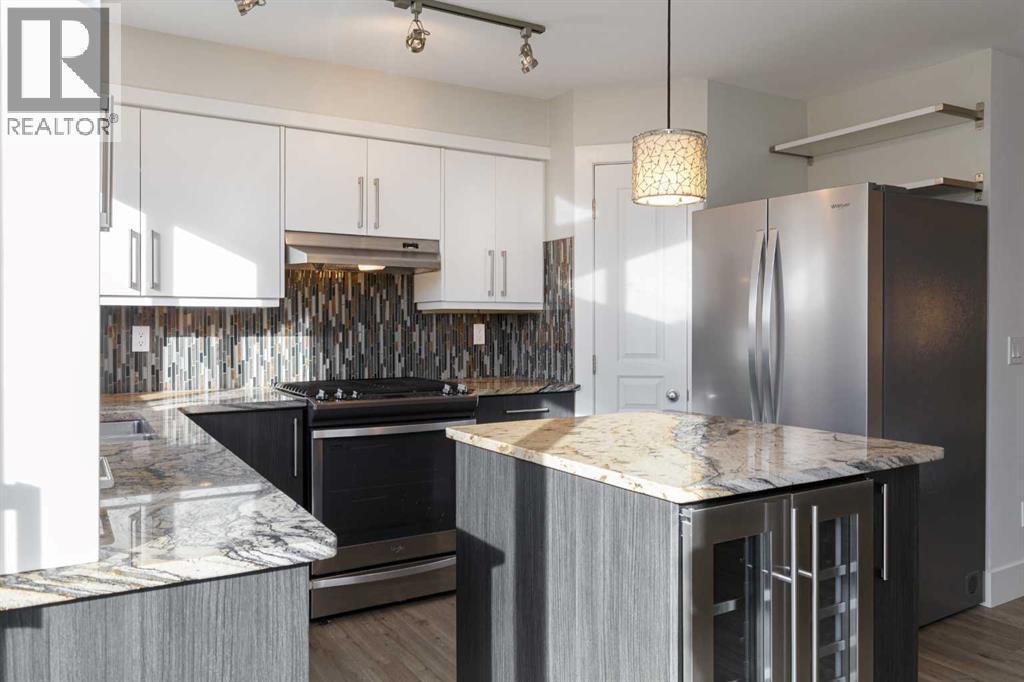 Welcome to your new Dream Home - a bungalow-style townhouse nestled within a secure, gated complex.This spacious, beautifully updated home showcases a contemporary open-concept design with an impressive chef-inspired kitchen. A large island anchors the space, complemented by granite countertops, a desirable corner pantry, and abundant soft-close cabinetry. Stainless steel appliances include a brand-new refrigerator and dishwasher, a gas range, and wine fridge — everything you need to cook, gather, and entertain with ease.The kitchen flows seamlessly into the generous dining area and sun-filled living room, where expansive windows flood the home with natural light. This is a space designed for connection, comfort, and effortless entertaining.Your primary suite offers a private retreat, complete with walk-in closet and a stylish ensuite featuring a new shower tower (2025). Imagine stepping through your private patio doors onto the sunny south-facing balcony overlooking the park — the perfect spot to unwind at the end of the day.The second bedroom is impressively sized and features its own exterior entrance to the courtyard, making it ideal for guests, a home office, or roommate.An updated four-piece main bath and convenient in-suite laundry complete the thoughtful layout.In-floor heating keeps the elegant plank flooring warm year-round, delivering both comfort and efficiency. An assigned tandem parking stall for 2 cars adds valuable everyday convenience. With coffee across the street and all the wonderful amenities 17th ave and inner city living offers, your daily steps will be full.Don’t miss this exceptional inner-city offering — call today to arrange your private showing. (id:6769)