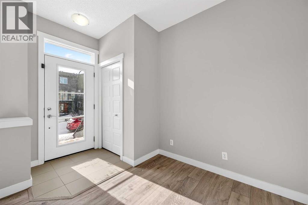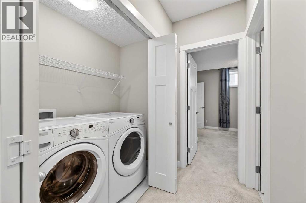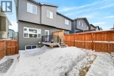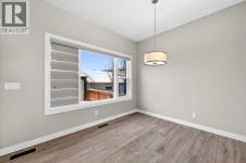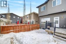 Beautifully designed 4 bedroom home offering over 2,000 sq. ft. of fully developed living space. With three bedrooms upstairs and one in the fully finished lower level, this thoughtfully laid out property combines modern finishes with functional design, perfect for families or those seeking flexible living space. A welcoming foyer opens to a bright, open concept main floor featuring 9 foot ceilings and luxury vinyl plank flooring. The stylish kitchen showcases an extended island, stainless steel appliance package, soft close cabinetry, and ample counter and cupboard space, ideal for everyday living and entertaining. Just off the dining nook, you will find access to the private back deck and fenced backyard, creating seamless indoor outdoor flow. A convenient 2 piece powder room completes the main level, along with access to the extra wide double detached garage. The fully developed lower level also features 9 foot ceilings and includes a spacious media or recreation room, versatile flex space perfect for a home office or gym, a large fourth bedroom with generous closet space, a 4 piece bathroom, and a dedicated laundry area with washer and dryer included. Upstairs, soaring ceilings and abundant natural light enhance the space. The primary suite offers a vaulted ceiling, large windows, a 4 piece ensuite, and an impressive walk in closet. Two additional bedrooms and another 4 piece bathroom complete the upper level. Adding to the home’s charm, a lovely front deck welcomes you as you walk up the front stairs, the perfect place to enjoy your morning coffee. Ideally located close to some of Calgary’s top rated schools, parks, pathways, shopping, dining, and everyday amenities, this home offers the perfect balance of lifestyle and convenience. Thoughtfully finished across all three levels, it delivers space, style, and functionality in an exceptional setting. (id:6769)