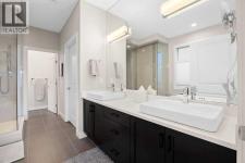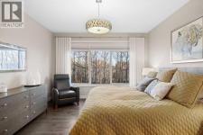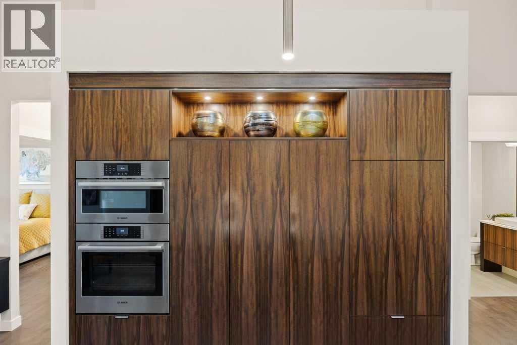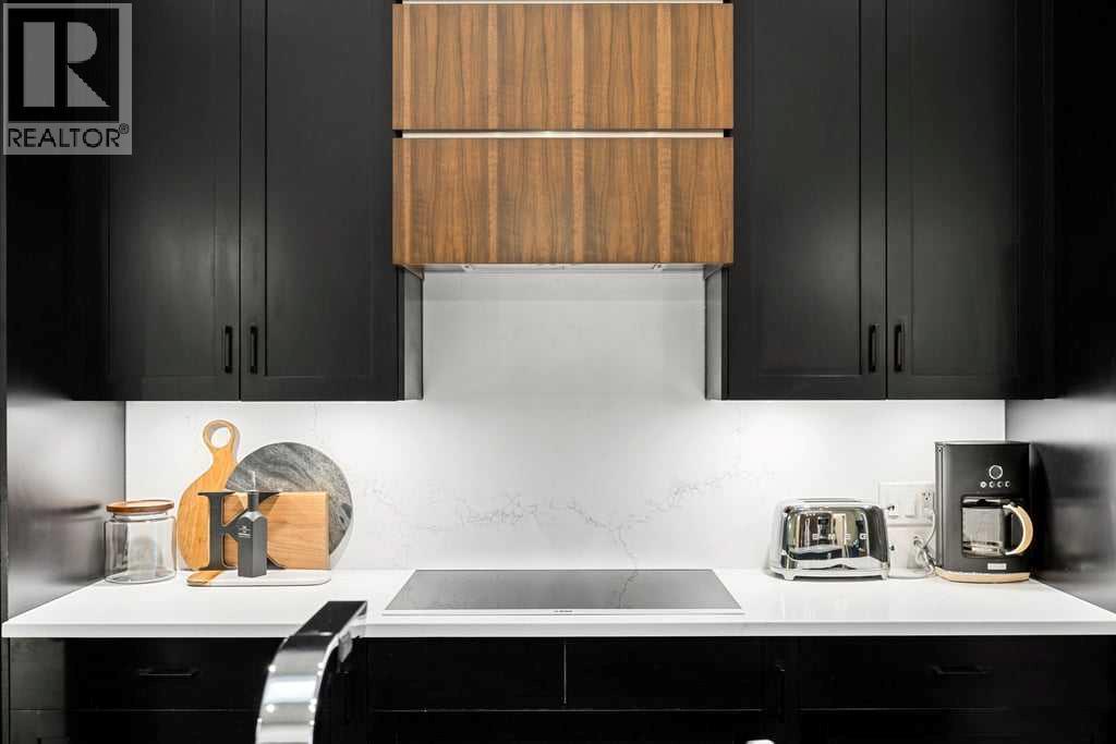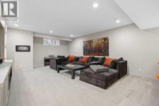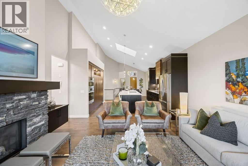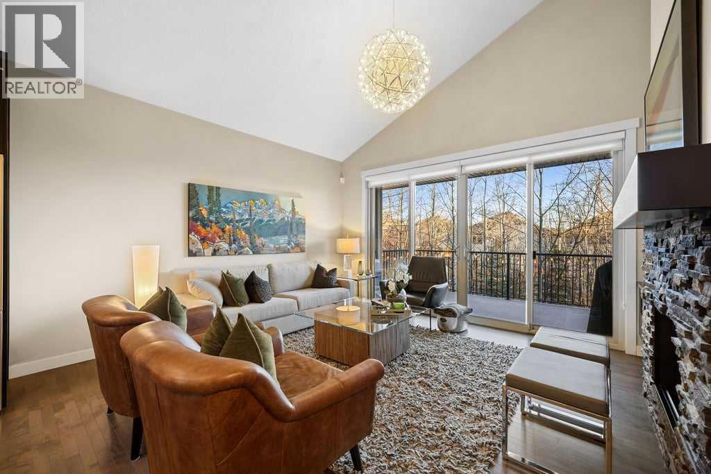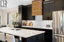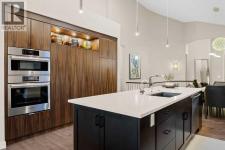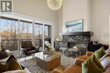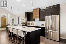 Backing onto a treed green space in Montreux and just moments from Aspen Landing, this stunning detached bungalow villa offers a rare blend of privacy, elegance, and effortless living. Part of an exclusive 30-unit bareland condominium enclave, this Trico-built home showcases quality craftsmanship and thoughtful design, with exceptional summer privacy thanks to its lush natural backdrop.Designed for both everyday comfort and refined entertaining, the main level features vaulted ceilings and a large skylight over the kitchen that fills the home with natural light, refreshed hardwood flooring, upgraded lighting throughout, and elevated finishes at every turn. The chef-inspired kitchen has been beautifully updated with new quartz countertops, a new Blanco sink, premium appliances including an induction cooktop, and seamless flow into the open living and dining areas. The main floor includes a spacious primary retreat with a luxurious 5-piece ensuite featuring a soaker tub and oversized shower, along with a second bedroom or den offering flexibility for guests or a private workspace. The mudroom is enhanced with Denca customized cabinetry, offering both style and exceptional everyday functionality. Just off the living space, a partially covered rear deck with durable Duradek surface and stairs to the backyard creates an ideal setting for outdoor living.The fully developed lower level expands the home with a generous recreation and media room centred around an electric fireplace with heater, creating a warm and inviting space to relax or entertain. The custom bar area is thoughtfully designed with a second dishwasher, wine fridge, and bar sink — perfect for hosting. Electric heated floors add comfort to the basement bathroom, laundry room, and bar area, while two additional bedrooms and a full bathroom provide excellent guest or family space. The large laundry room offers abundant storage along with a convenient laundry sink.Additional highlights include a custom-fi nished garage with epoxy flooring, extensive hanging storage, and a convenient hot water tap. With exterior maintenance, landscaping, and snow removal included, this residence offers a rare balance of lock-and-leave ease and elevated design — a timeless bungalow villa defined by quality craftsmanship and understated sophistication. (id:6769)