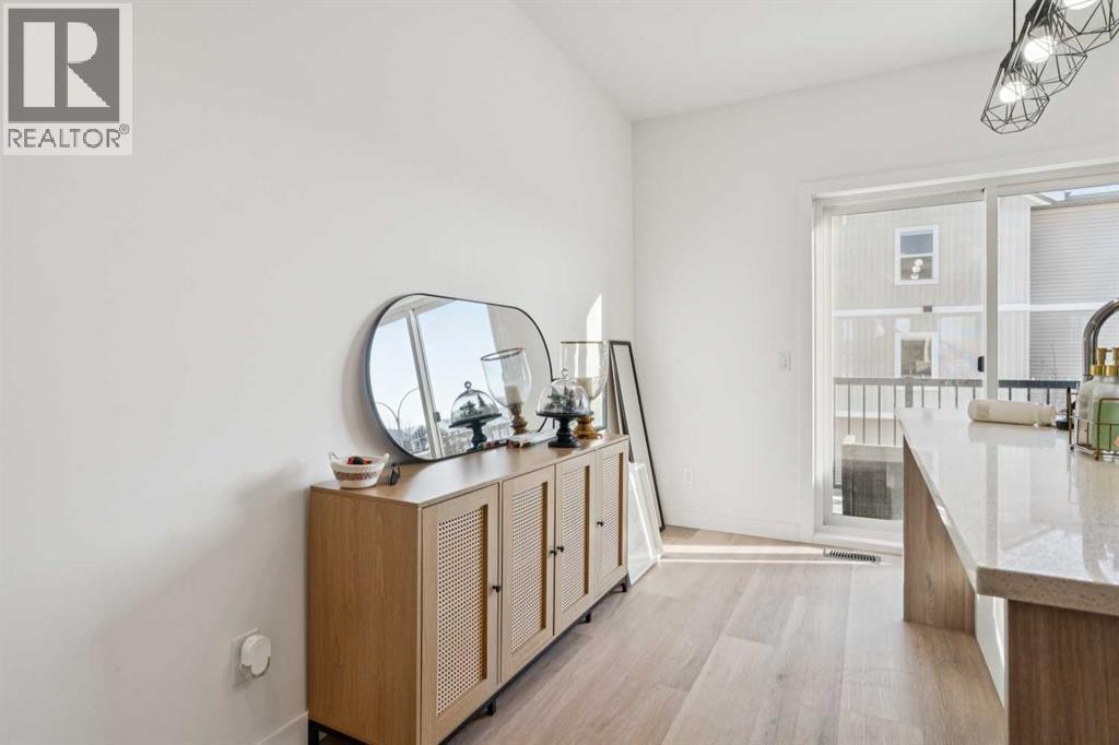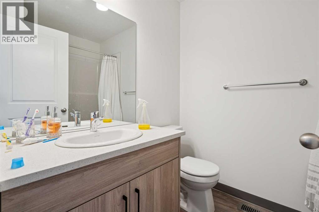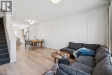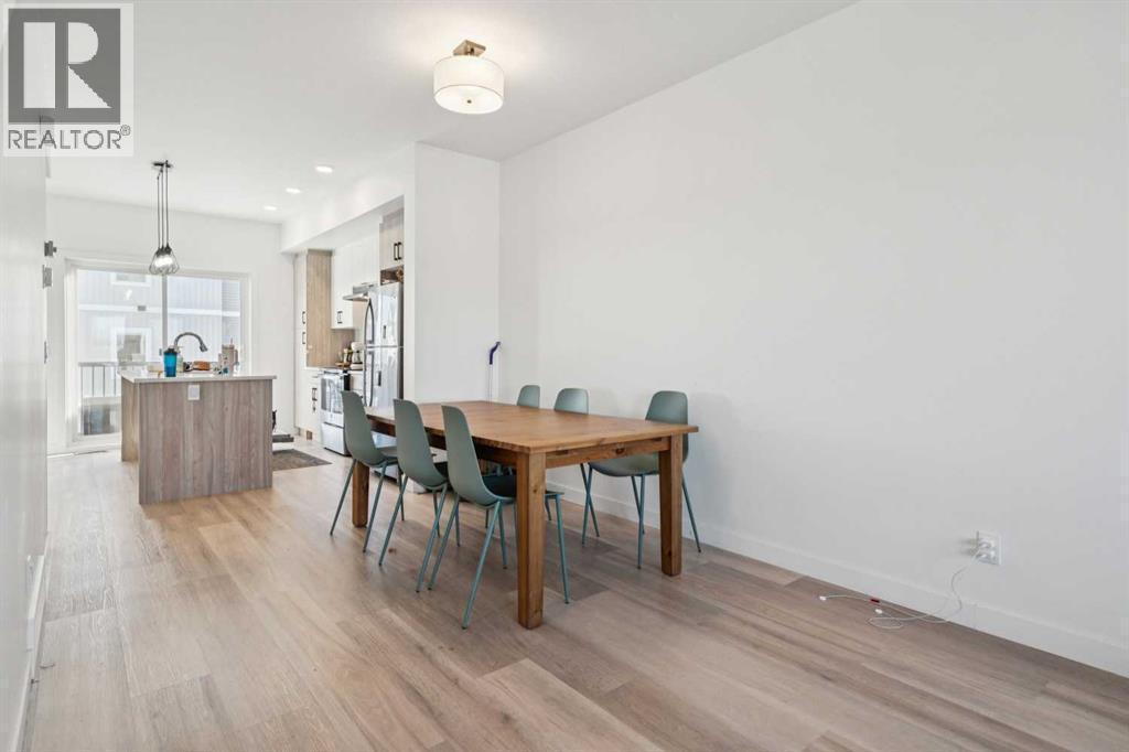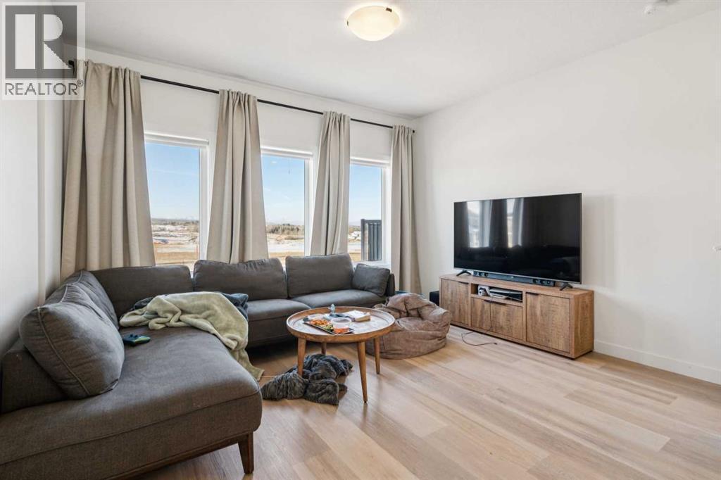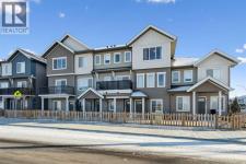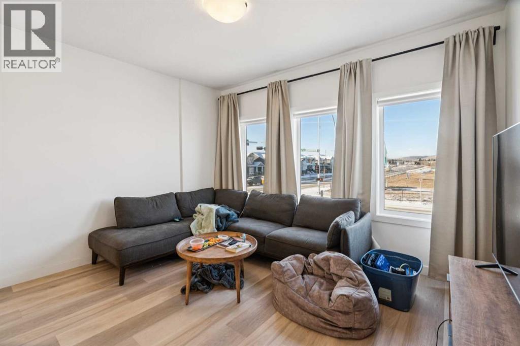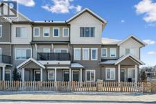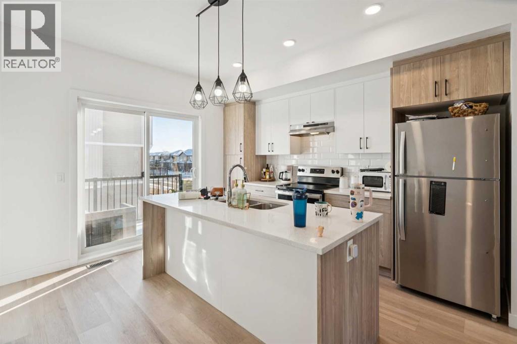 Discover the charm of contemporary living in this thoughtfully designed townhome. Filled with natural light from ample windows, the open-concept layout spans three inviting levels and offers beautiful mountain views. The stylish kitchen includes sophisticated fawn and white cabinetry, quartz counters, a generous island, and stainless steel appliances. Offering 2 bedrooms, 2.5 baths, and a cheerful, versatile den, this home provides flexible living spaces. The primary bedroom boasts ample storage and direct access to the ensuite. A convenient half bath on the main level enhances functionality. Features include vinyl plank floors, upper-level laundry, complete blinds, a single garage, and driveway plus street parking. Enjoy nearby pathways, local shopping, and convenient access to both Calgary and mountain adventures. (id:6769)