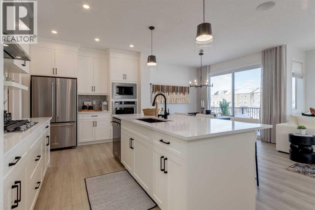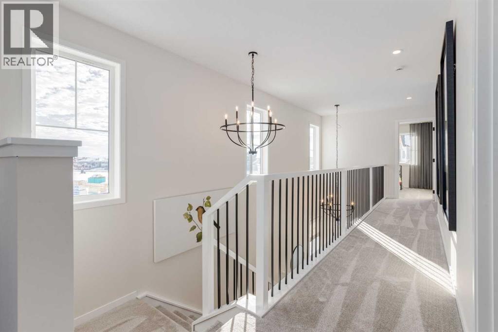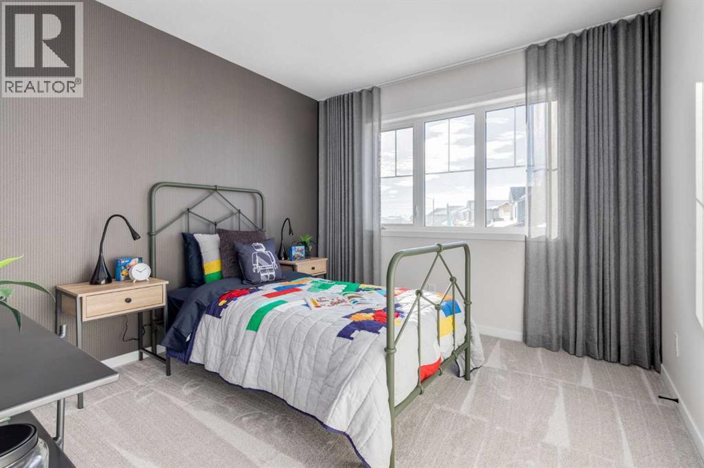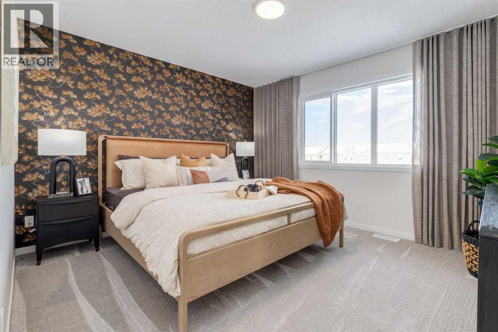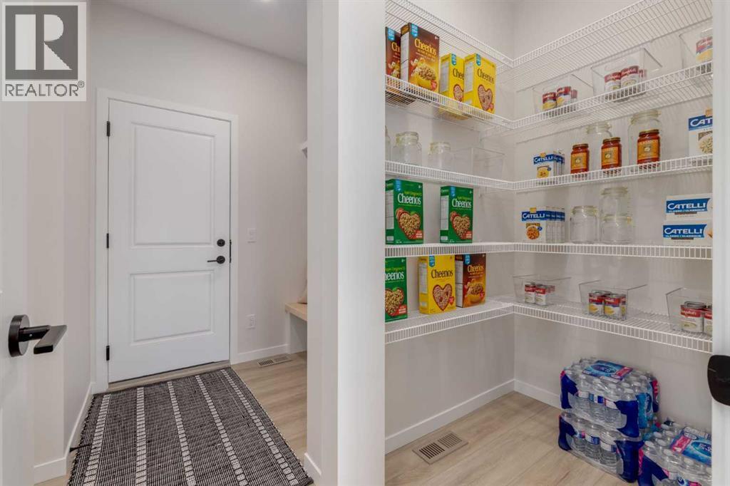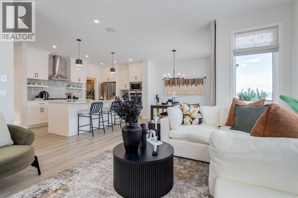 Meet The Strickland—a thoughtfully designed 2,093 sq. ft. home that blends everyday function with elevated finishes. With 3 bedrooms, 2.5 baths, a double attached garage, and a rear wood deck, this plan is built for modern family living and easy entertaining. A grand entryway makes a great first impression, paired with an oversized front closet that keeps coats, boots, and gear out of sight. At the back of the home, the mudroom with built-in locker creates the perfect drop zone for backpacks and busy routines. The main floor is designed around connection, with a centralized kitchen that links the living and dining areas so you can cook, visit, and relax in one open, welcoming space. The gourmet kitchen upgrade is the showpiece: full-height cabinetry, quartz countertops, two sets of pot & pan drawers, and a statement chimney hood fan framed by open shelving and finished with a tile backsplash to the ceiling. The premium KitchenAid appliance package includes a built-in wall oven & microwave, 5-burner gas cooktop, French door/bottom freezer fridge, and dishwasher. An oversized island is highlighted by upgraded matte black pendant lighting, and a smart walk-through pantry keeps clutter tucked away and grocery days simple. Luxury vinyl plank flooring spans the main level, with upgraded windows and an electric fireplace adding warmth. Upstairs, the thoughtful plan continues. A vaulted bonus room becomes your private family hub—movie nights, a kids’ lounge, or a quiet retreat away from the main level. Second-floor laundry is centrally located to simplify day-to-day life. The front kids’ wing features two spacious secondary bedrooms with easy access to the family bath, while the primary suite is a true escape with a large walk-in closet and a spa-inspired 5-piece ensuite with generous vanity space and storage. Outside, enjoy summer evenings and weekend BBQs on your rear wood deck and appreciate the durability and curb appeal of a Hardie board exterior. Modern details contin ue with metal railings on the stairs and upper floor. Future-focused features include solar-ready infrastructure with 200-amp service, a 64-panel breaker, and conduit to the roof. Montrose is a master-planned community on High River’s south side with parks, pathways, and a signature pond—great for walks, biking, and year-round time outdoors. Enjoy quick access to schools, recreation, and everyday amenities. A home that’s stylish, bright, and built around real life—The Strickland is one you’ll want to experience in person. **Photos are from the show home/previous builds to demonstrate quality of construction & finishes and may not be an exact representation of this home** (id:6769)