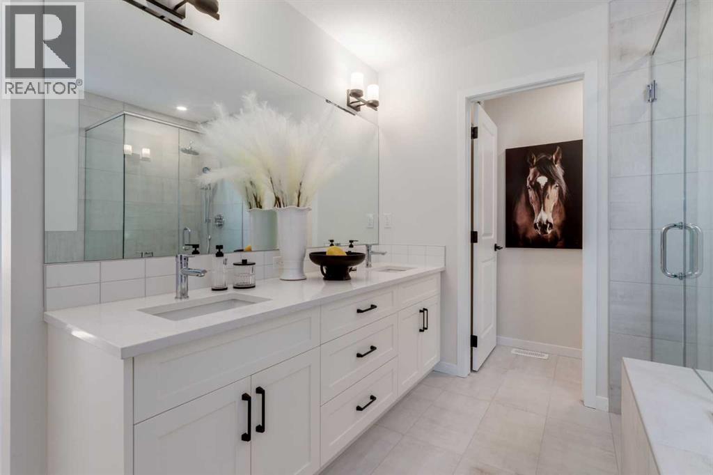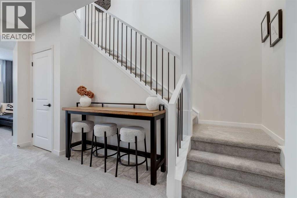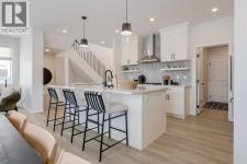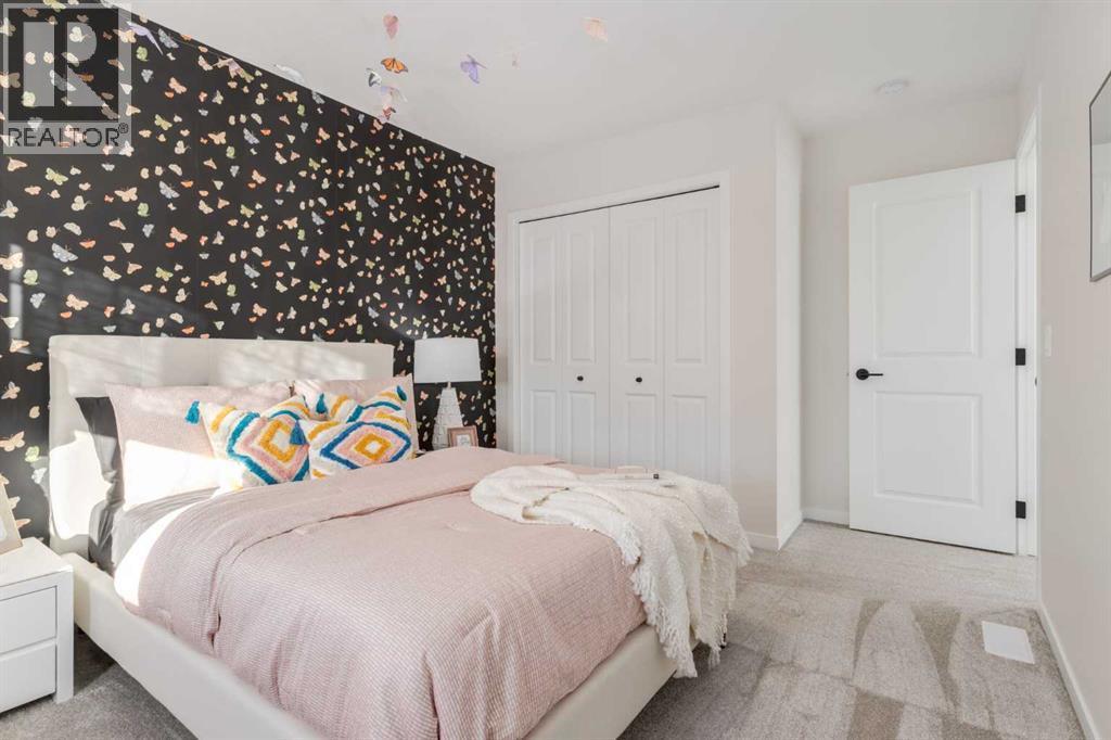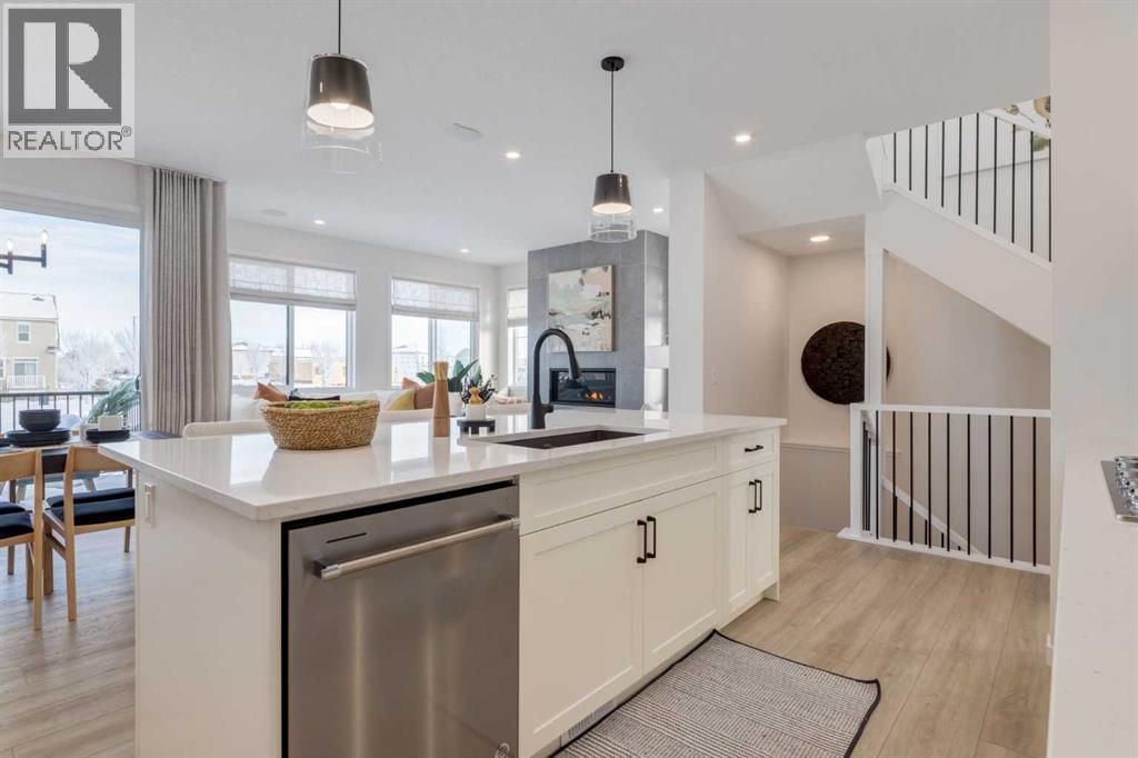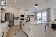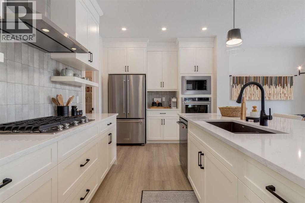 Meet The Strickland—a thoughtfully designed 2,093 sq. ft. home that blends everyday function with elevated finishes. With 3 bedrooms, 2.5 baths, a double attached garage, and a rear wood deck, this plan is built for modern family living and easy entertaining. A grand entryway makes a great first impression, paired with an oversized front closet that keeps coats, boots, and gear out of sight. At the back of the home, the mudroom with built-in locker creates the perfect drop zone for backpacks and busy routines. The main floor is designed around connection, with a centralized kitchen that links the living and dining areas so you can cook, visit, and relax in one open, welcoming space. The gourmet kitchen upgrade is the showpiece: full-height cabinetry, quartz countertops, two sets of pot & pan drawers, and a statement chimney hood fan framed by open shelving and finished with a tile backsplash to the ceiling. The premium KitchenAid appliance package includes a built-in wall oven & microwave, 5-burner gas cooktop, French door/bottom freezer fridge, and dishwasher. An oversized island is highlighted by upgraded matte black pendant lighting, and a smart walk-through pantry keeps clutter tucked away and grocery days simple. Luxury vinyl plank flooring spans the main level, with upgraded windows and an electric fireplace adding warmth. Upstairs, the thoughtful plan continues. A vaulted bonus room becomes your private family hub—movie nights, a kids’ lounge, or a quiet retreat away from the main level. Second-floor laundry is centrally located to simplify day-to-day life. The front kids’ wing features two spacious secondary bedrooms with easy access to the family bath, while the primary suite is a true escape with a large walk-in closet and a spa-inspired 5-piece ensuite with generous vanity space and storage. Outside, enjoy summer evenings and weekend BBQs on your rear wood deck and appreciate the durability and curb appeal of a Hardie board exterior. Modern details contin ue with metal railings on the stairs and upper floor. Future-focused features include solar-ready infrastructure with 200-amp service, a 64-panel breaker, and conduit to the roof. Montrose is a master-planned community on High River’s south side with parks, pathways, and a signature pond—great for walks, biking, and year-round time outdoors. Enjoy quick access to schools, recreation, and everyday amenities. A home that’s stylish, bright, and built around real life—The Strickland is one you’ll want to experience in person. **Photos are from the show home/previous builds to demonstrate quality of construction & finishes and may not be an exact representation of this home** (id:6769)