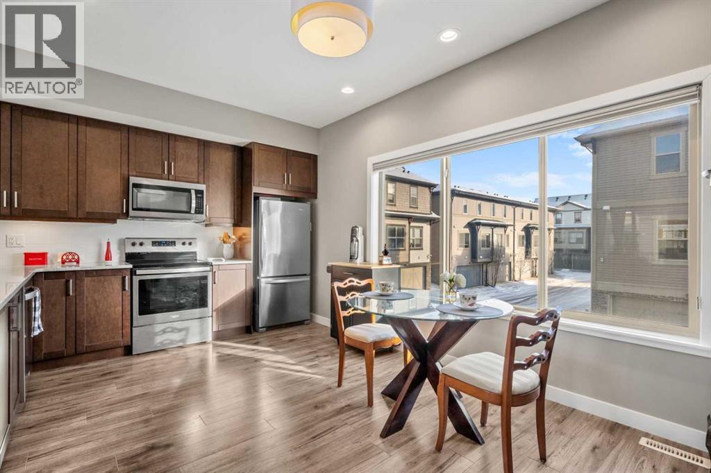 Welcome to 1006–32 Horseshoe Crescent, a bright and inviting END UNIT TOWNHOME backing peaceful GREENSPACE and just one block from the park, perfectly positioned in the family-friendly community of Heartland in Cochrane. This two-bedroom, 2.5-bath home offers over 1,300 sq. ft. of thoughtfully designed living space and an OVER SIZED DOUBLE ATTACHED GARAGE—a rare and valuable feature.Step inside to a warm, open-concept main floor filled with natural light. The layout flows seamlessly from the living room to the dining area and into the functional, well-equipped kitchen, making daily living and entertaining effortless. Off the living room, enjoy a private and serene balcony with a CUSTOM SCREEN DOOR overlooking the tranquil greenspace—an ideal spot to relax, sip your morning coffee, or unwind at the end of the day.Upstairs, you’ll find two generously sized bedrooms, each with its own CUSTOM ENSUITES, providing exceptional comfort and privacy for both homeowners and guests.Heartland is known for its welcoming community vibe, stunning mountain views, and abundant outdoor amenities. With parks, pathways, and green spaces just steps away—not to mention being only one block from a large community playground—you’ll love the convenience and lifestyle this location provides. Nearby shops, restaurants, and daily essentials add to the ease, while quick access to major routes makes commuting to Cochrane or Calgary simple.With its smart layout, modern finishes, oversized garage, and unbeatable location backing greenspace, this home is a standout choice for first-time buyers, downsizers, or young professionals seeking comfort, convenience, and low-maintenance living. Don’t miss your chance—book your private showing today. (id:6769)