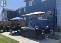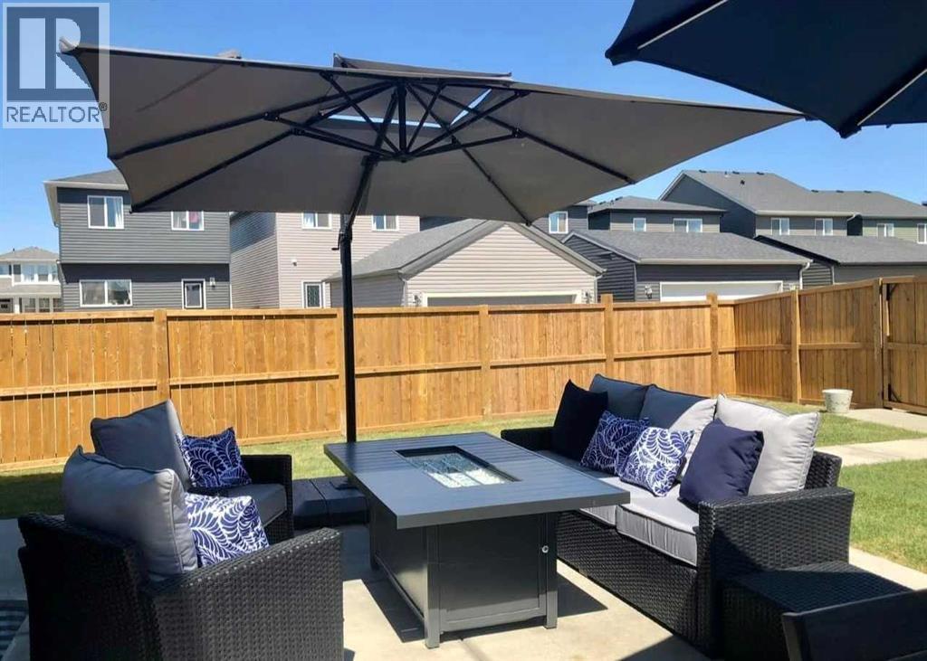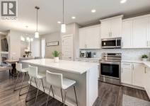 Welcome to this beautifully maintained 1,700 sq ft two-storey home offering 3 bedrooms and 2 ½ bathrooms, ideally situated on a large pie-shaped lot in the family-friendly community of Legacy. The open-concept main floor is thoughtfully designed for everyday living and entertaining, featuring a chef-inspired kitchen with a large center island topped with stone countertops, seating for several bar stools, stainless steel appliances, 42" upper cabinets, and generous counter space, all flowing seamlessly into a spacious dining area that easily accommodates a full-size table for hosting family and friends. The inviting living room is anchored by a stylish electric fireplace, while a versatile flex space offers the perfect setup for a home office, study nook, or craft room. A convenient 2-piece powder room & large mud room completes the level. Upstairs, you’ll find three well-sized bedrooms including a primary retreat with a walk-in closet and luxurious 5-piece ensuite, along with a 4-piece main bath and upper-level laundry with stacked washer and dryer. The unfinished basement provides excellent potential for future development with two large windows and a bathroom rough-in already in place, and central air conditioning ensures maximum comfort throughout the summer months. Outside, enjoy the expansive backyard with a concrete patio, a double detached garage, and an oversized parking pad ideal for extra vehicles or RV storage, all just steps from schools, parks, pathways, and the growing selection of shops and restaurants that make this community such a sought-after place to call home. (id:6769)