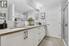 This is the one you have been waiting for! Rare 3-bedroom, 2 Full Bathroom unit with 2 Titled Side by Side parking stalls, and 3 Storage Lockers! This spacious unit with over 1150 sq ft is loaded with upgrades including central A/C and faces South with DT skyline views. As you enter this gorgeous property you are greeted by the luxury vinyl plank flooring guiding you into the open concept space with large windows flooding the property with natural light. Chef’s dream kitchen with crisp white cabinetry, sleek grey quartz counters, upgraded stainless steel appliances, subway tile backsplash, pantry, and huge 11ft island with built-in wine rack. Spacious living room/dining room with sliding doors out the wall-to-wall sunny South balcony that overlooks the courtyard with natural gas hook-up and stunning views. Perfect spot to unwind after a long day with a glass of wine and watch the sunset. Large master bedroom with spa-like ensuite bathroom with “his and hers” dual undermount sinks and walk-in tiled shower. Adjoining walk-in closet with custom built-ins and closet organizers to maximize the space. Good sized 2nd and 3rd bedrooms and another full 4-piece bathroom make this a great work from home space with lots of options. Large storage room/closet and laundry area with upgraded Samsung Steam front loading washer and dryer. The two titled parking stalls are side by side (217+218) and conveniently located right next to the elevator door! The three separate storage lockers come at no additional cost as the 60-year lease is paid in full. This is truly one of the nicest & largest units in the building and shows 10/10. Well managed building with bicycle storage, garden boxes, and access to playground area and tennis courts! All this in an unbeatable location surrounded by shopping, dining, parks, schools and commuting is a breeze with quick access to Stoney and Deerfoot Trail and minutes to the airport! (id:6769)