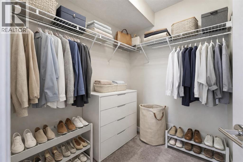 TOP floor / Lake View!Parking & storage just 3 stalls from elevator Elevated living for your next chapter. Rarely available top-floor with lake views in Mahogany, this beautifully updated 2-bedroom, 2-bathroom residence offers the perfect blend of sophistication, privacy, and effortless lifestyle — ideal for those ready to simplify without compromise.Top-floor inventory in this building is limited, and with panoramic views toward the lake, this home offers a quiet, elevated setting that feels both peaceful and refined. Freshly painted and enhanced with new designer flooring, the interior presents a clean, contemporary finish — move-in ready and impeccably maintained.The thoughtfully designed open-concept layout offers comfortable, low-maintenance living with no wasted space. Expansive windows fill the home with natural light while framing calming lake views — a daily reminder that you’ve earned this stage of life.The kitchen is both stylish and practical, featuring stainless steel appliances and generous cabinetry, flowing seamlessly into the dining and living areas — perfect for hosting family or enjoying relaxed evenings at home.The primary suite provides a spacious retreat with dual closets and a private 4-piece ensuite. A second bedroom and full bath offer flexibility for visiting grandchildren, guests, or a dedicated office or hobby space. In-suite laundry adds everyday convenience.Titled underground parking ensures comfort year-round, while secure building access provides peace of mind — perfect for lock-and-leave travel.Living in Mahogany means enjoying private lake access, two beaches, The Beach House, tennis courts, winter skating, boutique shopping, cafés, restaurants, and over 35 km of scenic pathways through the wetlands. With South Health Campus and Seton amenities just minutes away, everything you need is within easy reach.This is more than a condo — it’s a lifestyle upgrade.Low maintenance. Elevated privacy. Lake views.An exceptiona l opportunity to secure one of Mahogany’s most desirable top-floor residences. (id:6769)