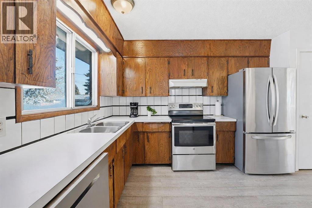 Welcome to this charming and versatile bi-level home featuring 4 spacious bedrooms and 2 full bathrooms. The main floor offers a beautifully updated kitchen with sleek stainless steel appliances and classic wood cabinetry. Natural light floods the open-concept living and dining areas, creating a warm and inviting atmosphere. Two generously sized bedrooms and a stylish 3-piece bathroom with a unique step-up tub complete the main level.The walk-up basement expands your options with a large 3rd & 4th bedroom, a 4-piece bathroom, and a dedicated laundry room—ideal for extended family or rental potential. A bright sunroom opens directly to the fully paved backyard, offering the perfect space for entertaining or relaxing.A sizeable detached garage provides ample parking and storage. Situated on a quiet street just steps from a playground, the home also offers excellent access to Stoney Trail, the Trans-Canada Highway, and Deerfoot Trail. Schools, shopping, and everyday amenities are all nearby.Whether you’re a growing family, accommodating extended family, or looking for an income-generating opportunity, this property delivers exceptional value and flexibility. (id:6769)