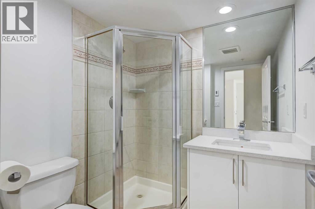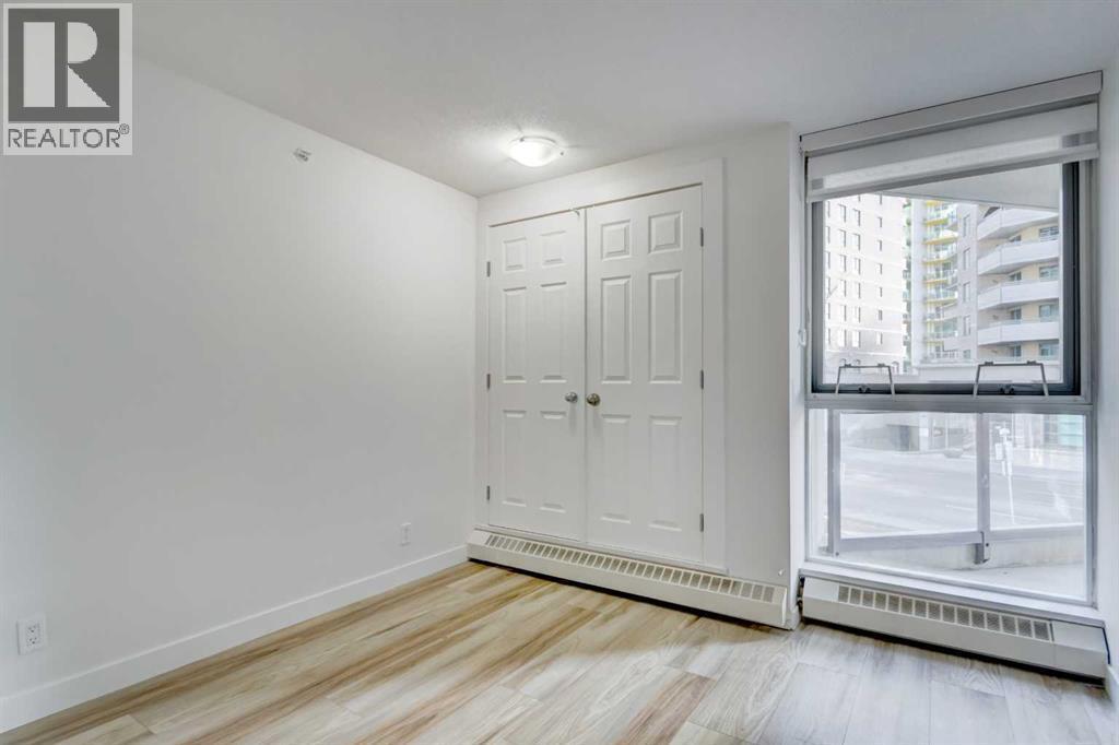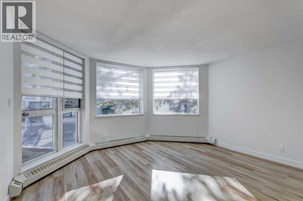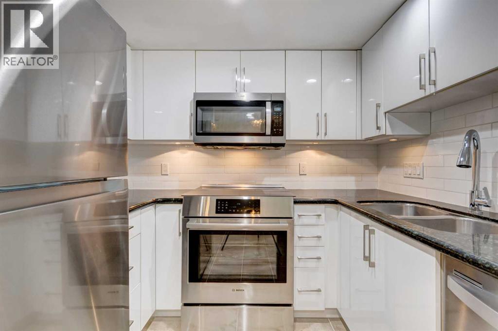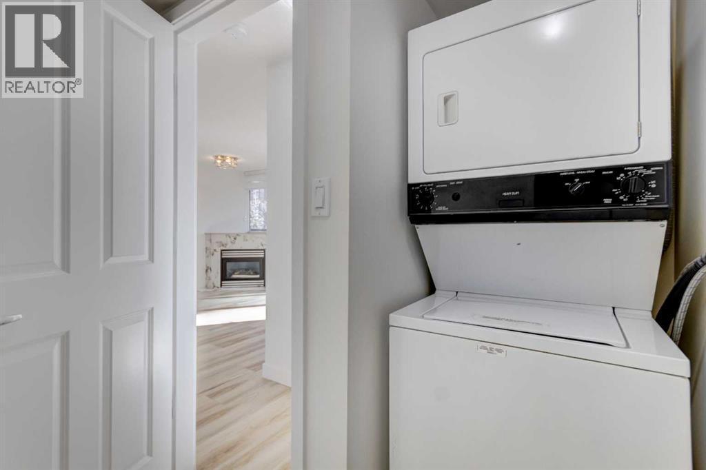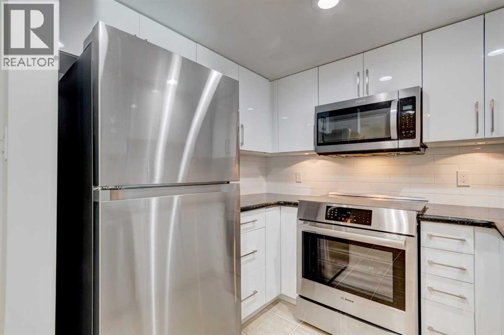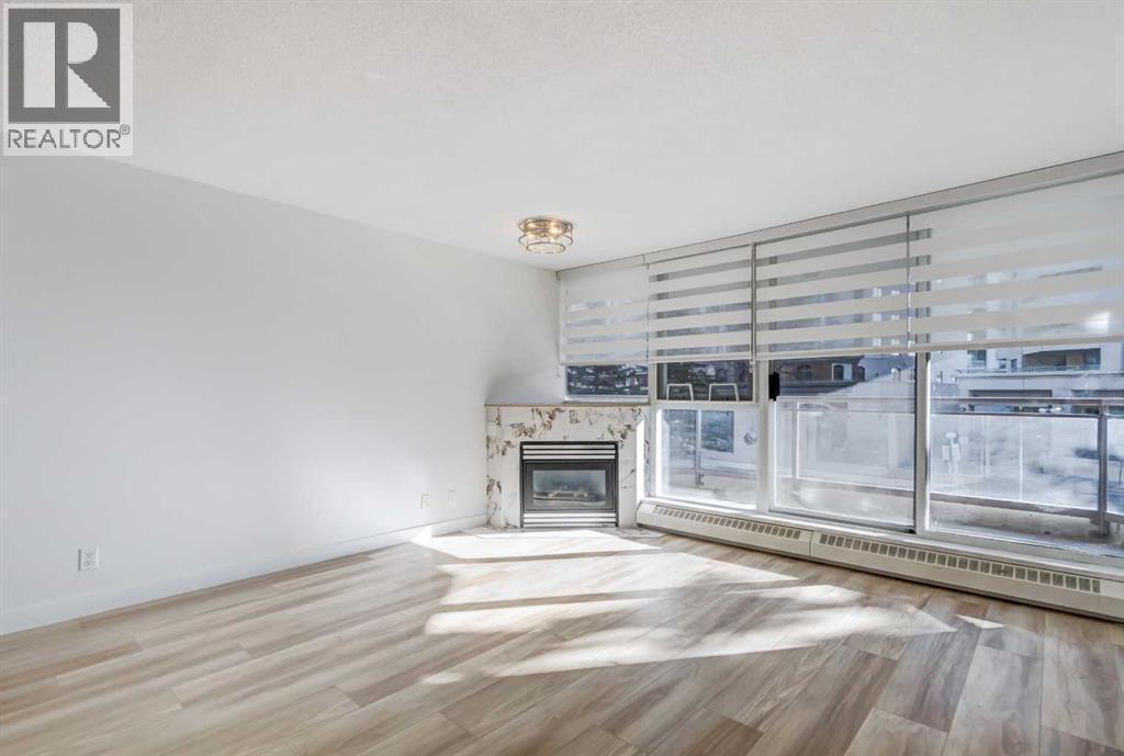 Welcome to this beautifully renovated 2-bedroom, 2-bathroom condo in The Marquis, ideally located in the desirable west end of downtown. Offering nearly 1,000 sq ft of bright, open-concept living space, this stylish unit has undergone approximately $30,000 in quality upgrades. Recent renovations include NEW stainless steel appliances (stove and fridge), newer dishwasher and microwave, NEW kitchen cabinetry and backsplash, NEW bathroom vanity and sink, NEW closet doors, NEW lighting, NEW window coverings, NEW paint throughout, and NEW durable vinyl plank flooring that complements the cozy gas fireplace perfectly. The thoughtfully designed layout is both functional and inviting. The spacious primary bedroom features a full ensuite and direct access to the private, south-facing balcony surrounded by mature trees for added privacy. The second bedroom is ideally positioned near the second full bathroom, making it perfect for guests, roommates, or a home office. Enjoy an unbeatable urban lifestyle just steps from the Bow River pathways and only a two-minutes to the C-Train within the free fare zone. Added conveniences include easy stair access to avoid elevator wait times and close proximity to the titled underground parking stall. Building amenities include a fitness center, yoga studio, social/party room, landscaped courtyard, secure bike storage, and visitor parking. Pet-friendly (with board approval). An exceptional opportunity for professionals, downsizers, or investors seeking turnkey living in a prime downtown location. (id:6769)
