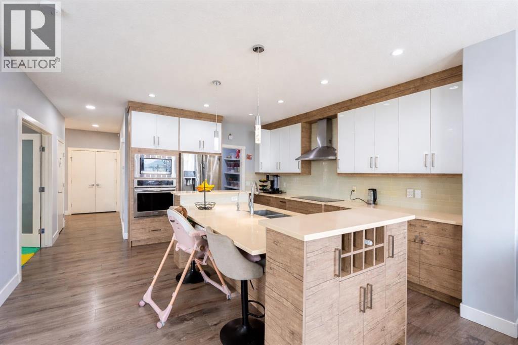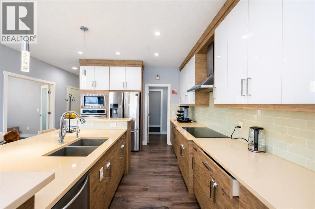 Stunning Walk-Out Family Home With Illegal Basement Suite and Solar Panels in Baysprings!Welcome to this beautifully maintained 2-storey home offering approximately 2,517 sq ft above grade, plus a fully developed walk-out basement with an illegal suite—perfect for extended family or multi-generational living.Step inside to discover 9’ ceilings, elegant LVP and tile flooring, and a thoughtfully designed main floor layout. The heart of the home is the spacious chef-inspired kitchen featuring quartz countertops, a large custom island, stainless appliances, and a convenient walk-through pantry/mudroom. The inviting family room showcases custom built-ins and a cozy fireplace, while a main-floor office/den and full bath add flexibility and convenience.Upstairs, you’ll find 4 generously sized bedrooms, a versatile bonus room, and upper-level laundry. The impressive primary retreat (15’9” x 13’2”) features a recessed ceiling, custom walk-in closet, and a luxurious 5-piece ensuite with tile and glass shower—your private sanctuary after a long day.The fully finished walk-out basement offers 2 additional bedrooms, a full bath, separate living area, kitchen space, and private entrance, providing excellent potential for extended family accommodation.Enjoy year-round comfort with central A/C and energy efficiency thanks to solar panels—reducing utility costs significantly (summer months averaging $0 electricity, winter typically under $200).Outdoor living is just as impressive with a 16’ x 10’ low-maintenance deck, covered patio at grade, wide open backyard, playgrounds, and a nearby elementary school. The double attached garage (17’7” x 25’9”) and oversized garage pad complete the package.Located in the highly desirable community of Baysprings, this home perfectly blends modern finishes, functional design, and an unbeatable location.Don’t miss this rare opportunity—schedule your private showing today! (id:6769)