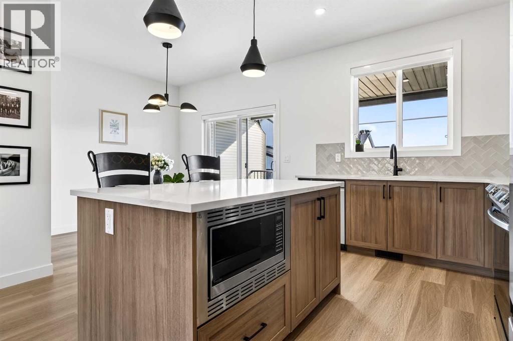 Open House Saturday February 21st 2:00pm-4:00pm and Sunday February 22nd 12:00pm-2:00pm. Welcome to #1604 – 201 Cooperswood Green SW, a beautifully designed 3-storey Village Townhome in the highly sought-after Vesta Elevate Collection in Cooper’s Crossing, an 11-time winner of Airdrie’s Best Community Award. Blending modern contemporary architecture with upscale interior finishes, this home offers exceptional style, functionality, and an unbeatable location.The thoughtfully designed open-concept layout features 3 bedrooms, 2.5 bathrooms, and a versatile flex room ideal for a home office, gym, or additional living space. The bright and spacious main floor is perfect for both everyday living and entertaining. The gourmet kitchen is a true highlight, complete with full-height cabinetry to the ceiling, sleek modern finishes, generous prep space, and a layout that flows seamlessly into the dining and living areas. A convenient main floor powder room adds comfort and practicality for guests.Upstairs, the deluxe primary suite provides a private retreat, while the secondary bedrooms are impressively sized compared to most townhome layouts, offering flexibility for families, guests, or work-from-home needs. The overall design maximizes space, natural light, and livability across all three levels.Parking is never a concern with a double attached garage plus two additional private driveway stalls — a rare and valuable feature in townhome living.Located directly across from Cooper’s Town Promenade, you’ll enjoy walkable access to Save-On-Foods, Starbucks, McDonald’s, Shoppers Drug Mart, Pet Value, and everyday amenities. Parks, pathways, schools, and green spaces are all nearby, making this an ideal home for professionals, families, or investors looking to be in one of Airdrie’s premier communities.This is an opportunity to own a stylish, low-maintenance home in a vibrant, award-winning neighborhood where convenience meets elevated living. (id:6769)