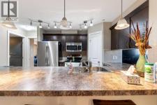 Welcome to this bright and well-designed apartment condo located in the desirable community of King’s Heights in Airdrie. This second-floor corner unit offers approximately 860 sq ft of comfortable living space, featuring 2 bedrooms and 2 full 4-piece bathrooms, including a private ensuite off the primary bedroom. The open-concept layout seamlessly connects the living room, dining area, and kitchen, creating an inviting space for everyday living and entertaining. The kitchen offers ample counter space, plenty of cabinetry, and a convenient sit-up breakfast bar. Large windows throughout the unit fill the home with natural light, while a patio door leads to the covered balcony, complete with a gas hookup for your BBQ. The thoughtfully designed floor plan places the bedrooms on opposite sides of the unit, providing added privacy, with the primary bedroom showcasing a walk-through closet. This unit also includes one titled parking stall and an assigned storage unit for added convenience. Ideally located close to schools, parks, playgrounds, shopping, restaurants, and with quick access to Highway 2 for easy north or south commuting, this property is perfect for first-time buyers, downsizers, or as a smart addition to your rental portfolio. (id:6769)