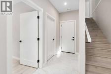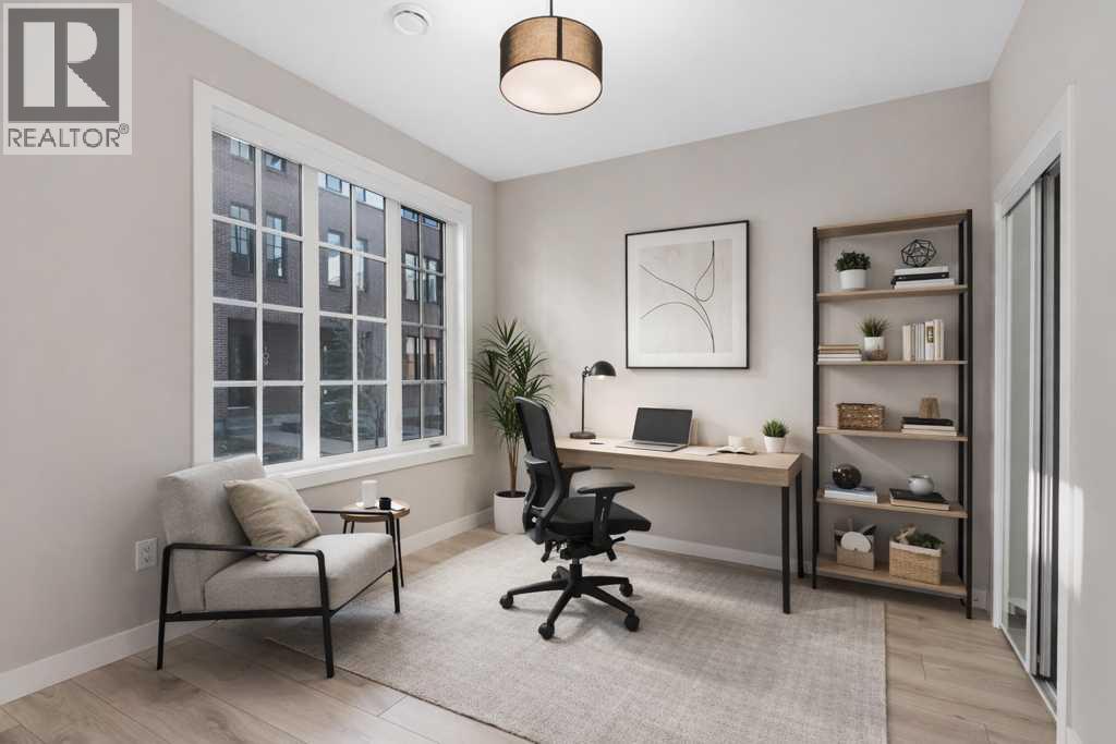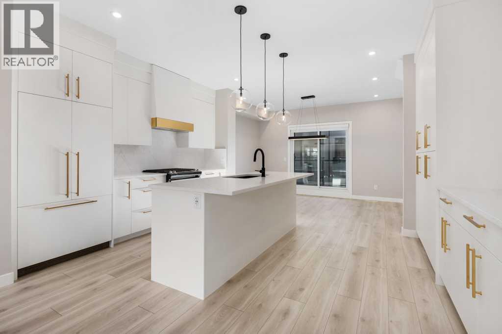 Welcome to District Townhomes in West Springs, where modern luxury meets everyday convenience in one of Calgary’s most desirable Westside communities. Built by Truman Homes, this stylish 3-storey, 3-bedroom, 2.5-bathroom townhome is thoughtfully designed for today’s lifestyle—clean lines, smart function, premium LVP flooring, roller-shade window coverings throughout and elevated finishes throughout.The entry level offers a flexible den/home office, plus a utility area, extra storage, and direct access to the attached double garage—perfect for commuting, working from home, or keeping life organized.Upstairs, the bright and airy main living level impresses with 9-foot ceilings, wide-plank luxury vinyl flooring, and an open-concept layout made for entertaining. The chef-inspired kitchen is the centerpiece, featuring full-height cabinetry with soft-close doors, quartz countertops, elegant gold accents, a gas range, built-in refrigerator, built-in microwave, and a massive quartz island with generous seating for casual meals or hosting friends. Step outside to your large private deck—ideal for morning coffee, summer BBQs, or unwinding at the end of the day.The upper level features three well-planned bedrooms, including a standout primary retreat with a walk-in closet and a private 4-piece ensuite with dual vanities. You’ll also love the convenience of upper-floor laundry right where you need it.Perfectly located just minutes to West 85th, Radio-Park, Aspen Landing, top-rated schools, playgrounds, boutique fitness, grocery stores, cafés, and some of Calgary’s best dining—plus quick access to Stoney Trail and Bow Trail for an easy downtown commute or a fast escape to the mountains.A move-in ready West Springs townhome with high-end finishes, a double garage, and a prime location—this is the one you’ve been waiting for. **Some images have been virtually/digitally staged to illustrate possible furnishings and layout. (id:6769)