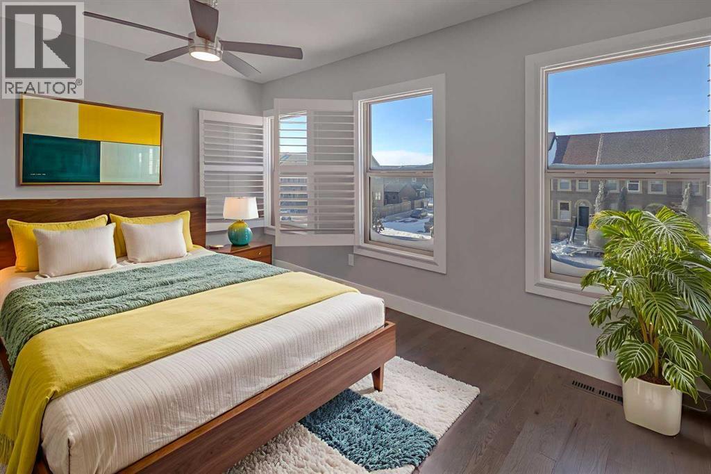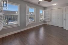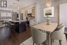 A rare find—townhome living with NO CONDO FEES! This beautifully upgraded home features 9-foot ceilings on the main floor, rich hardwood flooring, & quartz countertops on both the main & upper levels. The open-concept main floor offers spacious living & dining areas framed by elegant windows, while the upgraded kitchen is a true standout. Highlights include high-end Bosch stainless steel appliances, a large centre island with white quartz countertops, under-cabinet lighting, soft-close drawers & doors, & full-height cabinetry for a sleek, modern finish. A rear mud room keeps the family boots & coats organized while the beautiful living, dining & kitchen spaces are perfect for entertaining & family living. Upstairs, hardwood flooring continues throughout, leading to two generously sized bedrooms, each with large closets & custom built-in organizers. The ensuite bathroom is finished with quartz countertops & upgraded counter-to-ceiling mirrors, while the second full bathroom features quartz counters & a tub/shower combination. A conveniently located upper-level laundry room completes this floor. The fully developed basement adds exceptional versatility, offering a flex space ideal for a bedroom, gym, or home theatre, along with an additional full bathroom & abundant storage. Outside, enjoy your private, low-maintenance backyard with stone patio, plus a double detached garage. Additional upgrades include enhanced faucets, lighting, & interior doors, 2.5-inch plantation shutters throughout, air conditioning, new washer & dryer (2025), new hail-resistant shingles, eavestroughs, & downspouts (2025). Ideally located steps from pathways, playgrounds, grocery stores, restaurants, coffee shops, banks, & more, this exceptional home truly checks every box. A must-see! (id:6769)