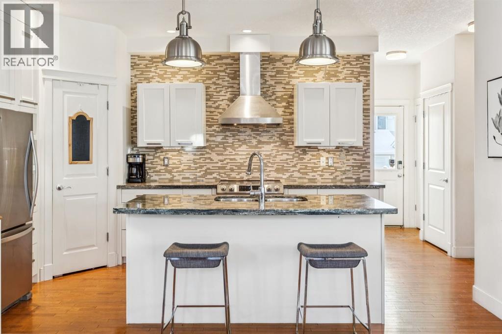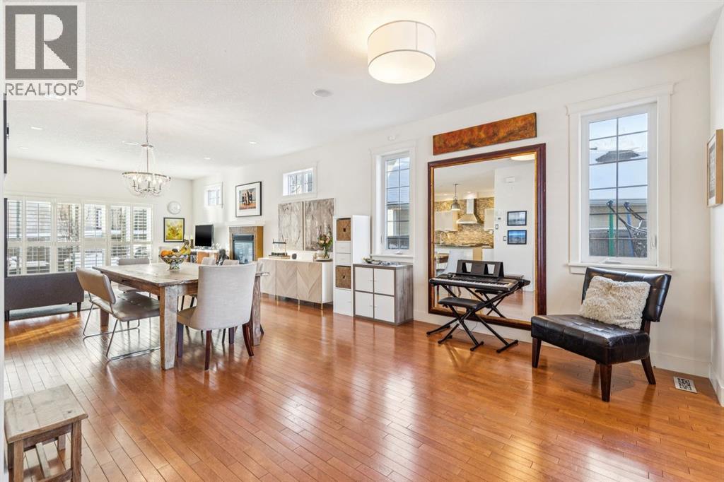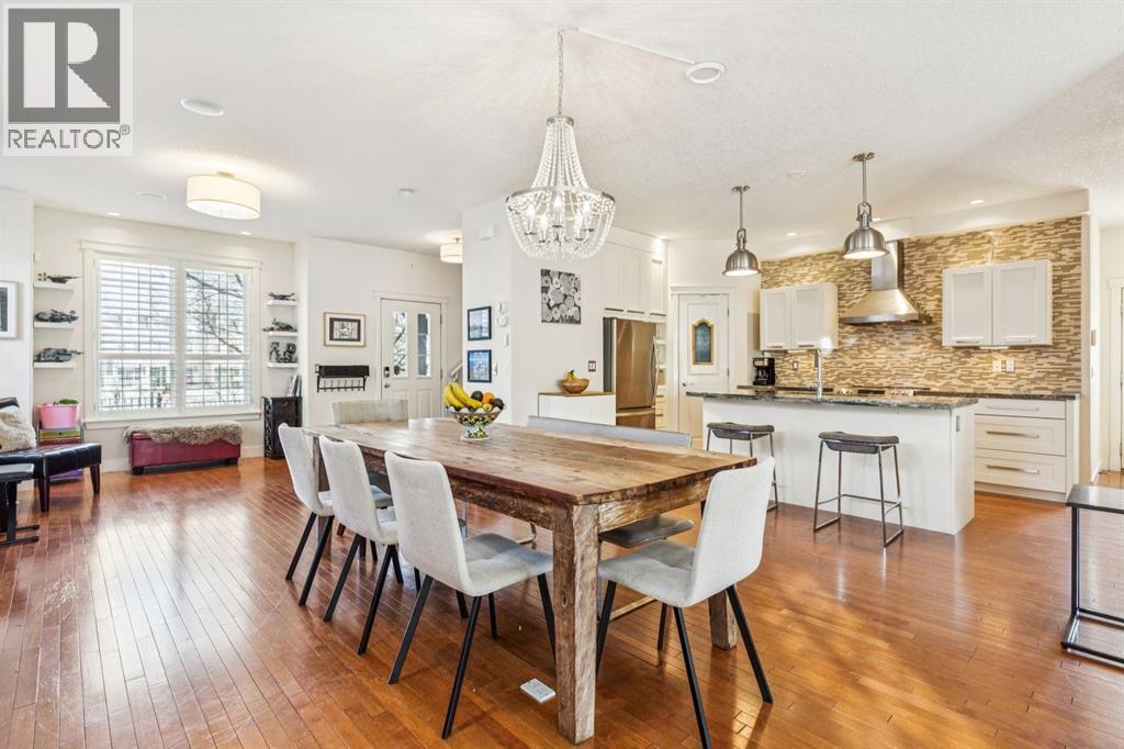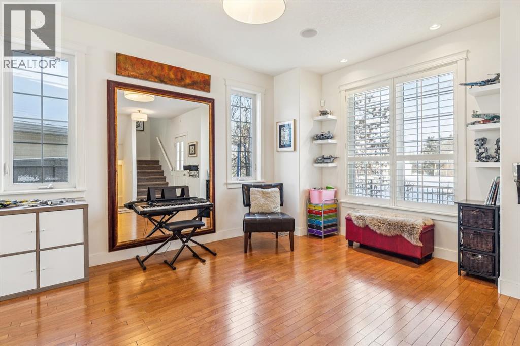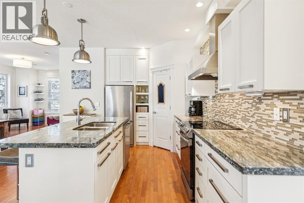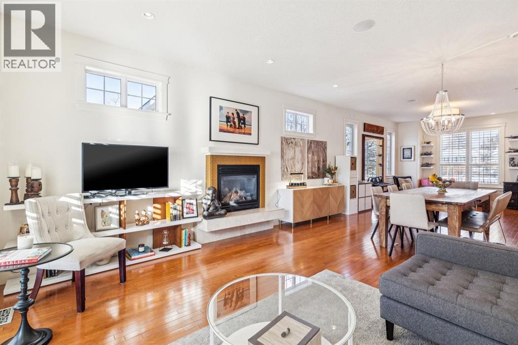Welcome to this beautiful end unit home in the heart of Garrison Woods, perfectly positioned facing scenic Ypres Green Park. With coveted east, west, and north exposures, this property is bathed in natural light throughout the day and offers picturesque park views from multiple vantage points, including the charming front veranda, the perfect place to enjoy morning coffee while watching families gather and children play. Offering 2,670+ square feet of developed living space, this thoughtfully designed home is ideal for growing families. The main floor features rich hardwood flooring and an open concept layout centred around a beautifully appointed kitchen with newly installed cabinetry and professionally refinished cabinets, granite counters, a large centre island that invites conversation and connection, and updated appliances including a Bosch dishwasher, Whirlpool refrigerator, Samsung oven, and newer LG washer and dryer. The bright west facing living area creates a warm and welcoming space for everyday living, while a central dining space creates an ideal flow for entertaining. Upstairs, you’ll find three generously sized bedrooms, providing comfortable retreats for every family member. The spacious primary includes a private sitting retreat, a walk-in closet, and a luxurious ensuite bath designed for relaxation at the end of a busy day. The two additional upstairs bathrooms were tastefully upgraded with elegant ceramic countertops, modernized built-in drawers and doors, and updated taps and sinks, enhancing both style and functionality. The fully finished lower adds exceptional versatility, featuring a large media and games area, a full bathroom, and abundant storage. A dedicated flex space offers endless possibilities whether as a home theatre, playroom, teen lounge, or home gym. Since 2016, this home has benefited from substantial upgrades that provide peace of mind and enhanced comfort. Major mechanical improvements include an he furnace replacement with a p remium IQ Air HEPA-grade air filtration system, installation of a radon remediation system, and a new AC unit for year round climate control. The roof shingles were replaced in 2020, and in 2024, 15 solar panels were installed adding long term energy efficiency and sustainability. Beyond the home itself, the lifestyle here is truly special. Garrison Woods is known for its strong sense of community, walkable streets, and proximity to excellent schools, playgrounds, and everyday amenities. Families will appreciate nearby schools such as Lycee International de Calgary, Master's Academy and College, Altadore School, and Central Memorial High School, along with easy access to parks, pathways, and community spaces that foster connection and an active lifestyle. Shopping and dining are just minutes away in the vibrant Marda Loop district. This is more than a home, it’s an opportunity to be part of a welcoming, family oriented community where parks, schools, and neighbours are all just steps from your front door. (id:6769)